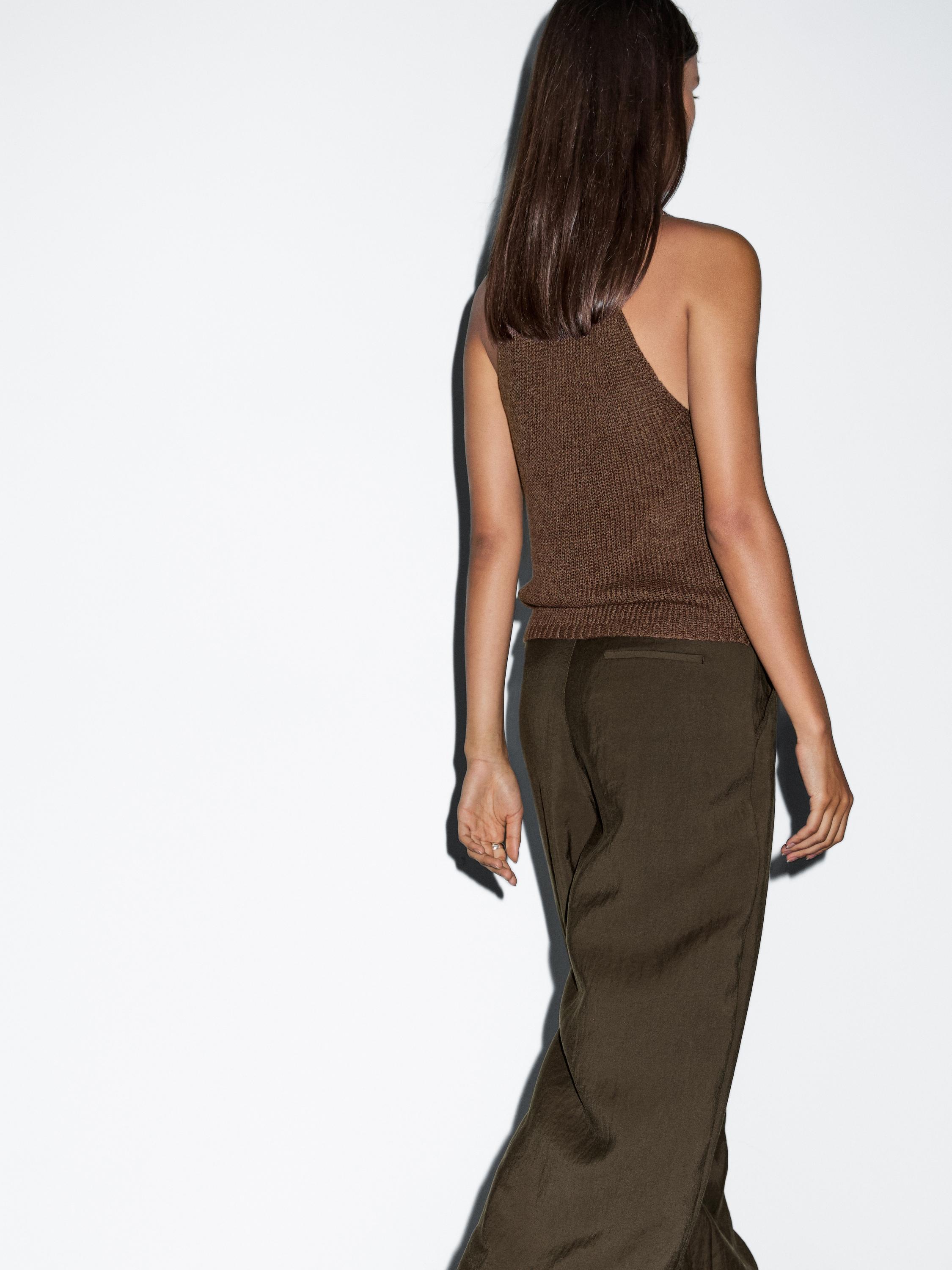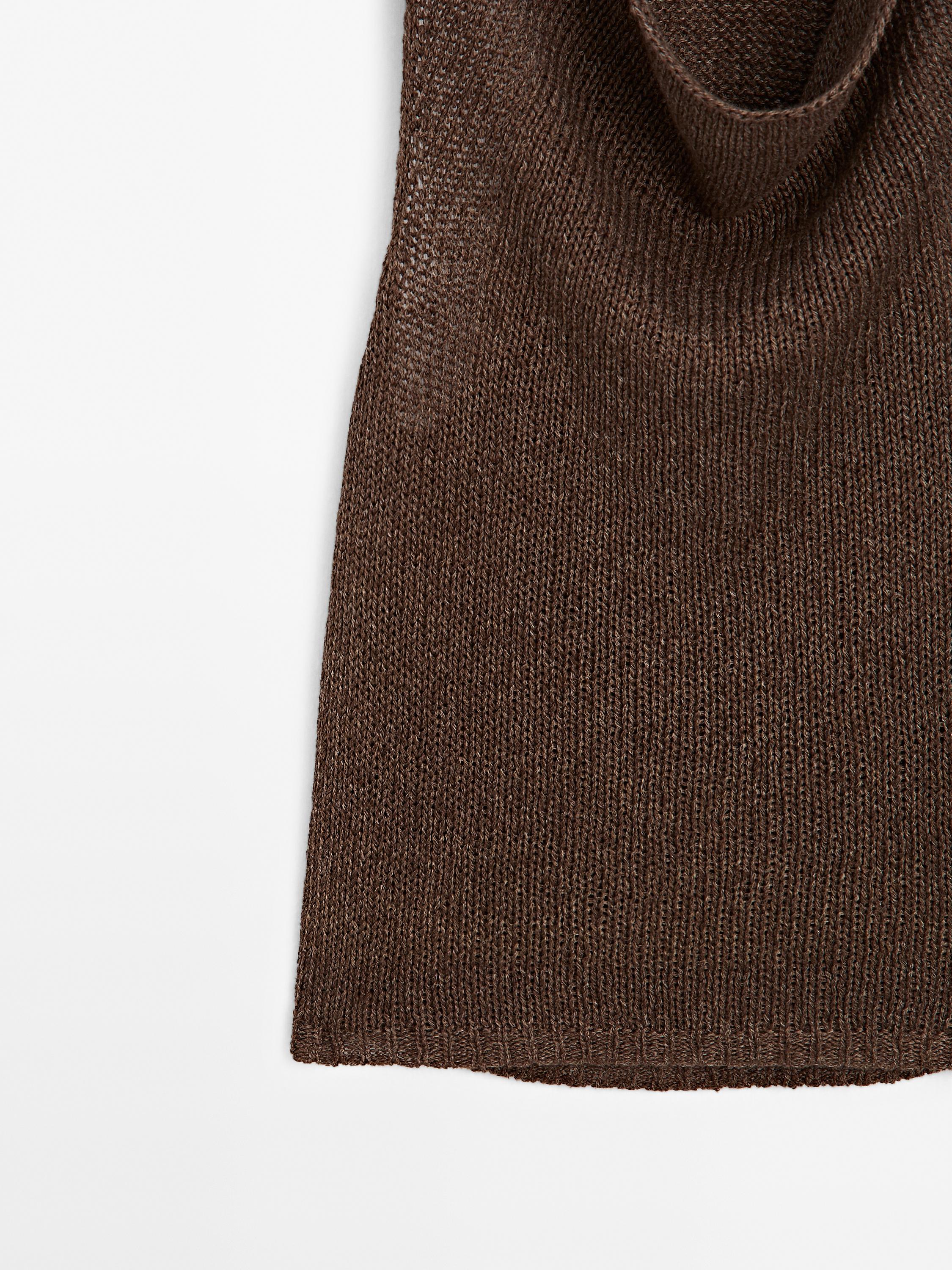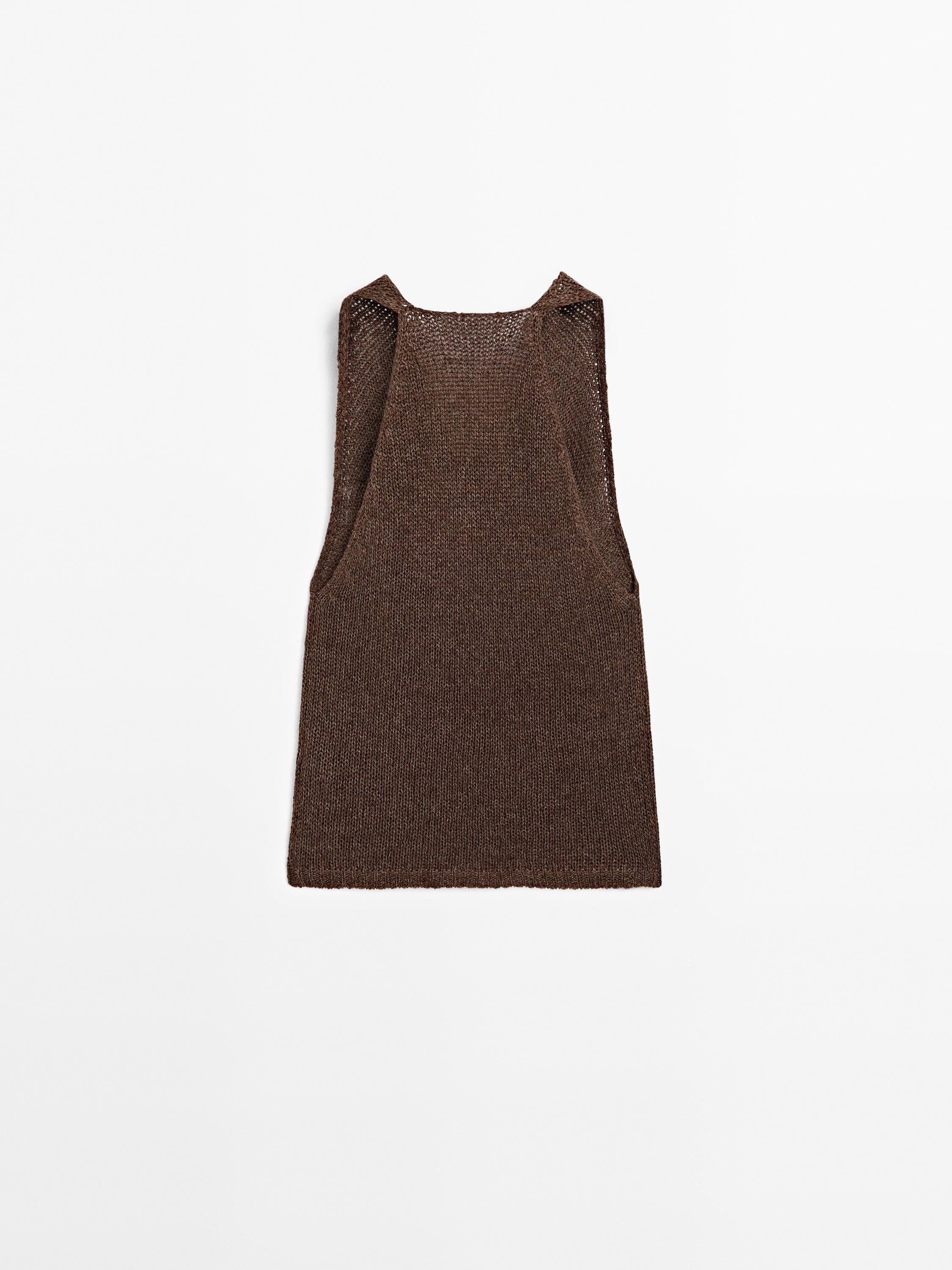 Massimo Dutti Вязаный топ-халтер из смесовой льняной ткани, коричневый