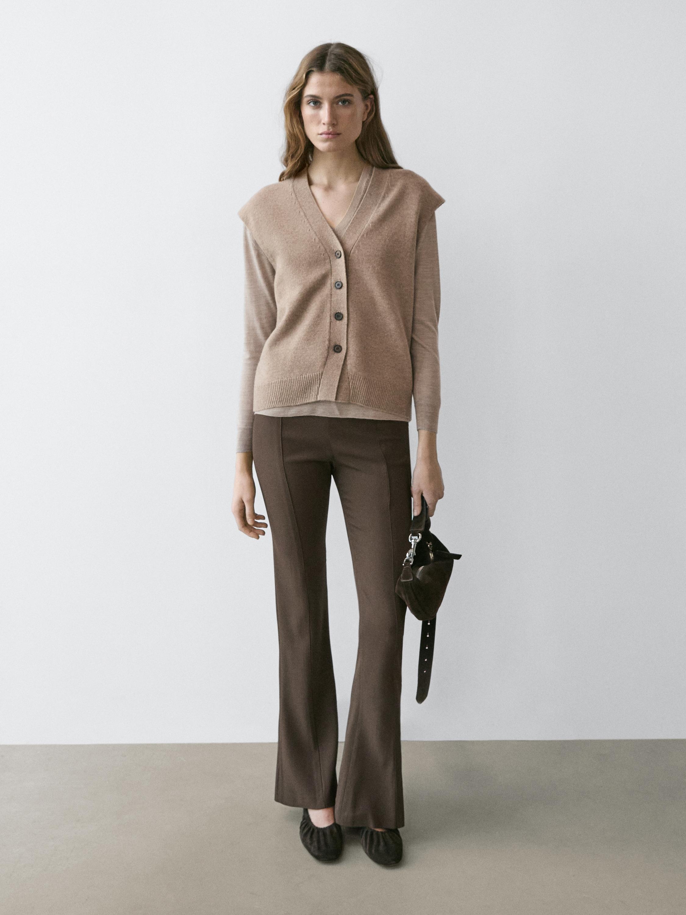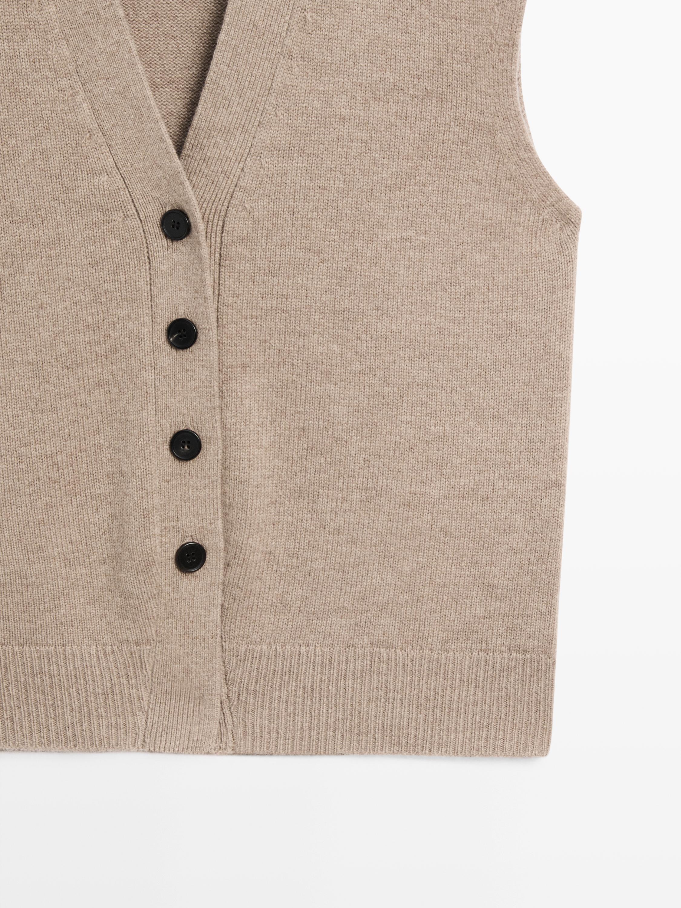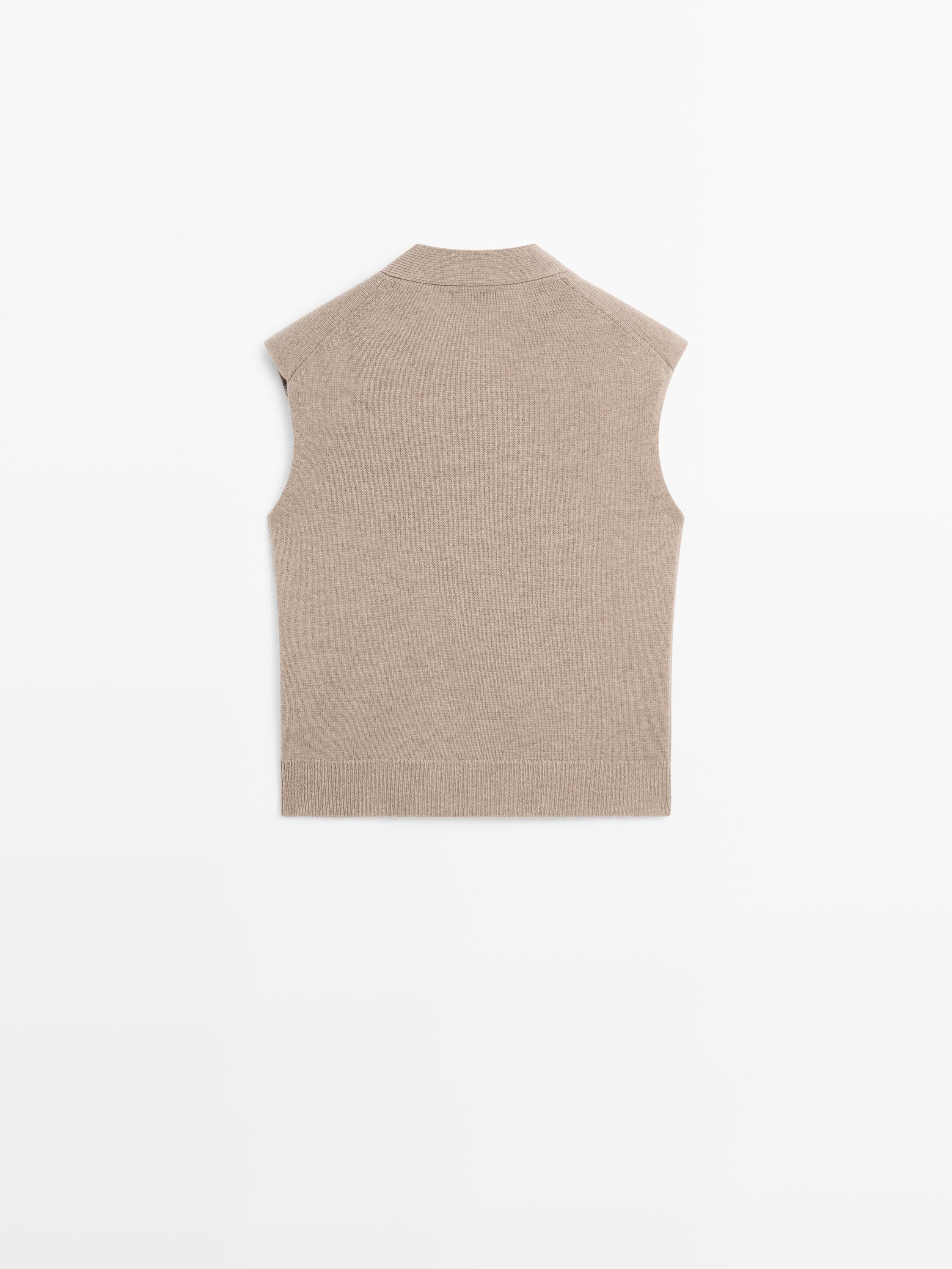 Massimo Dutti Вязаный жилет из шерстяной смеси с V-образным вырезом, норка