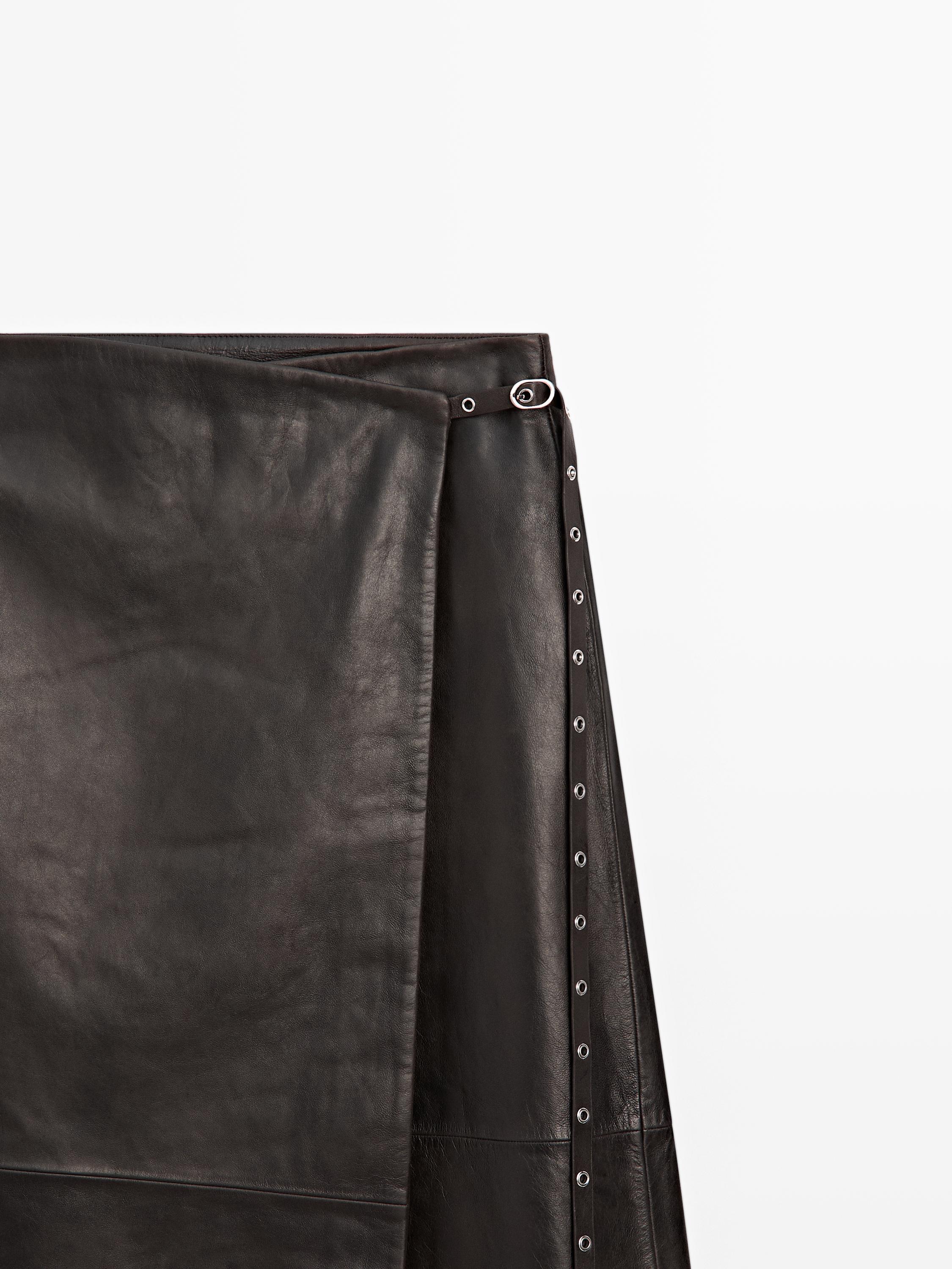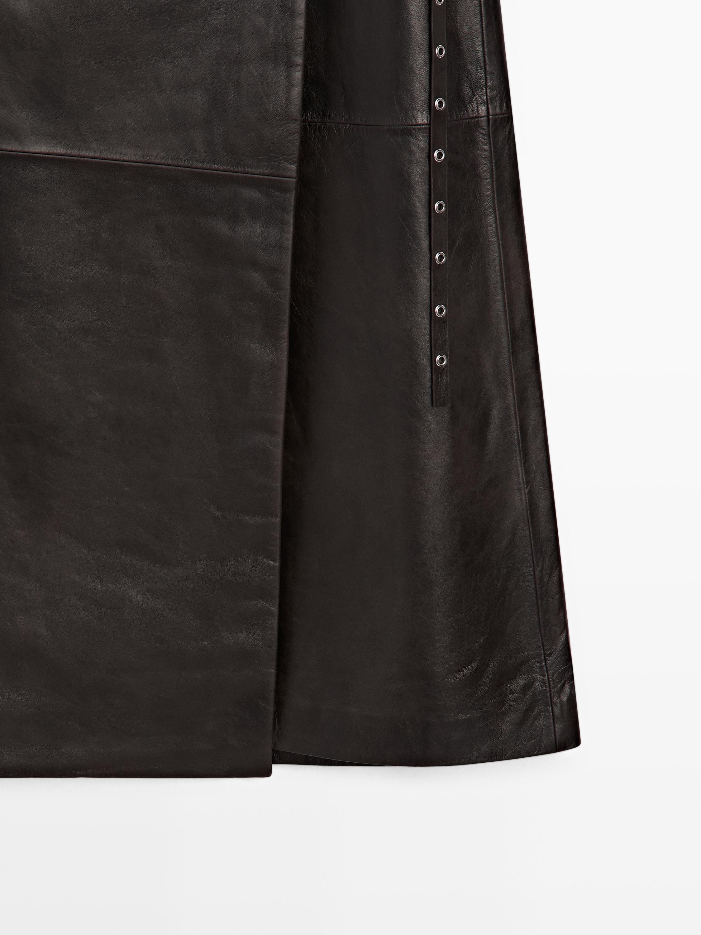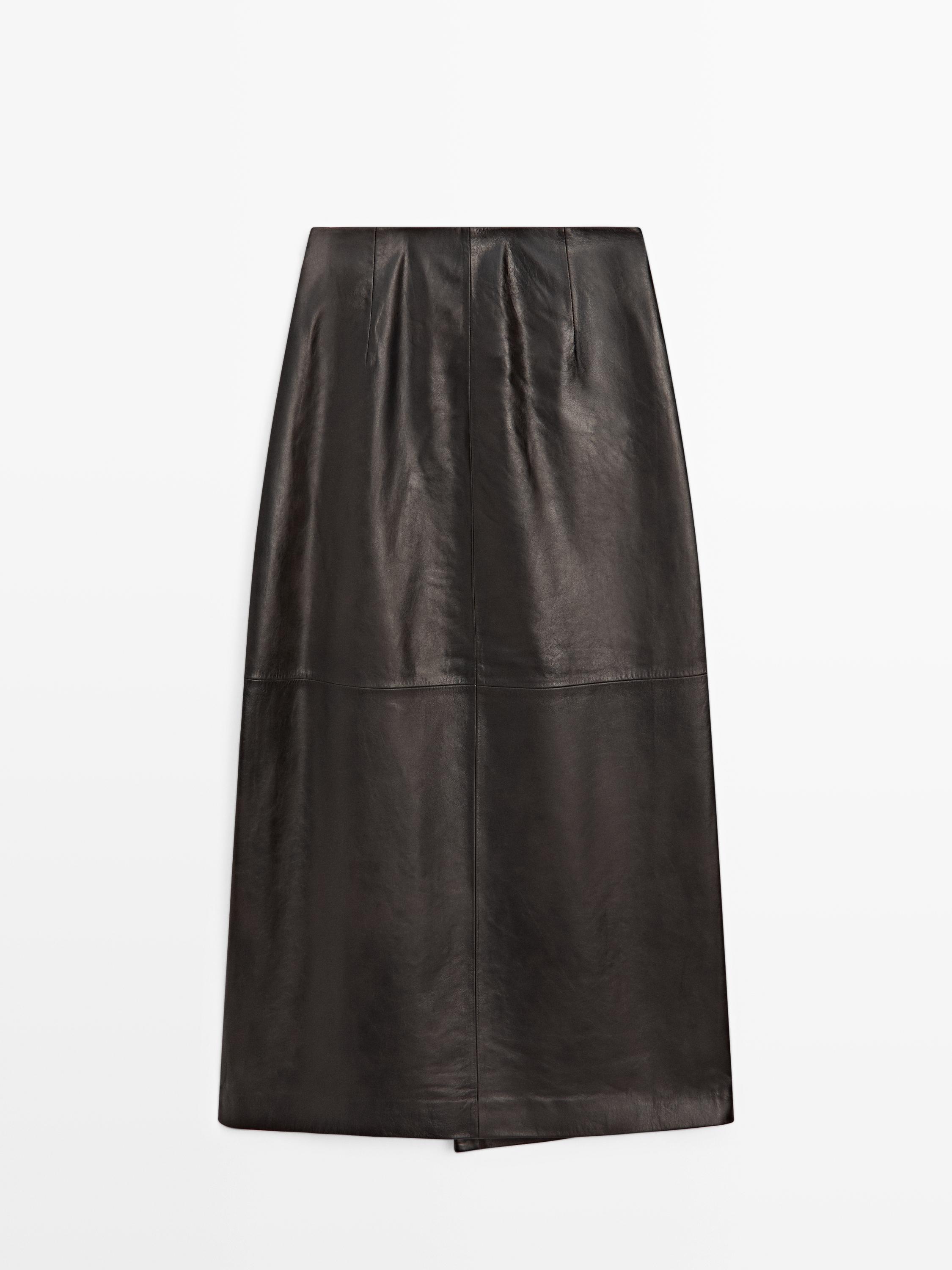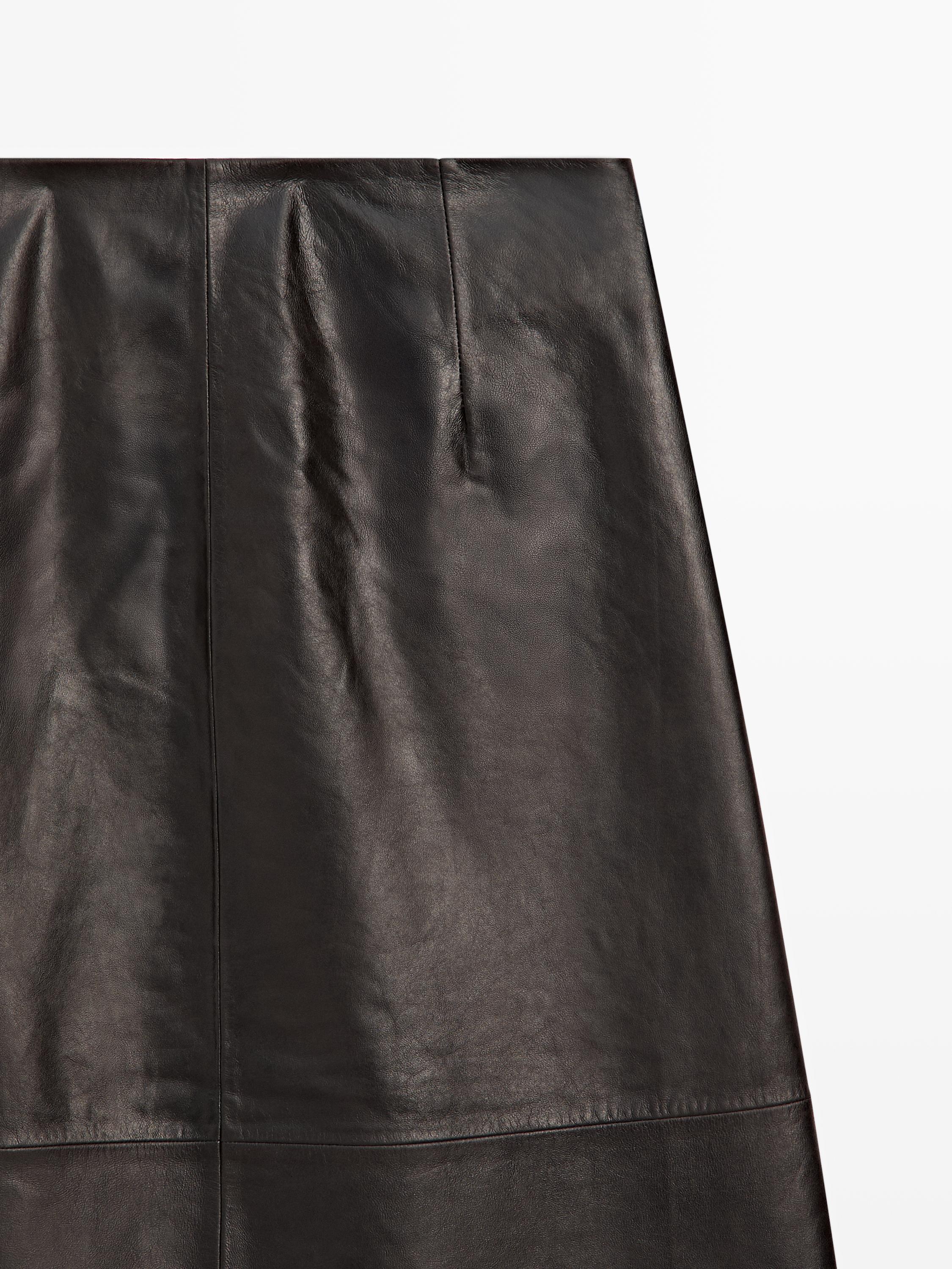 Massimo Dutti Юбка миди из кожи наппа, коричневый