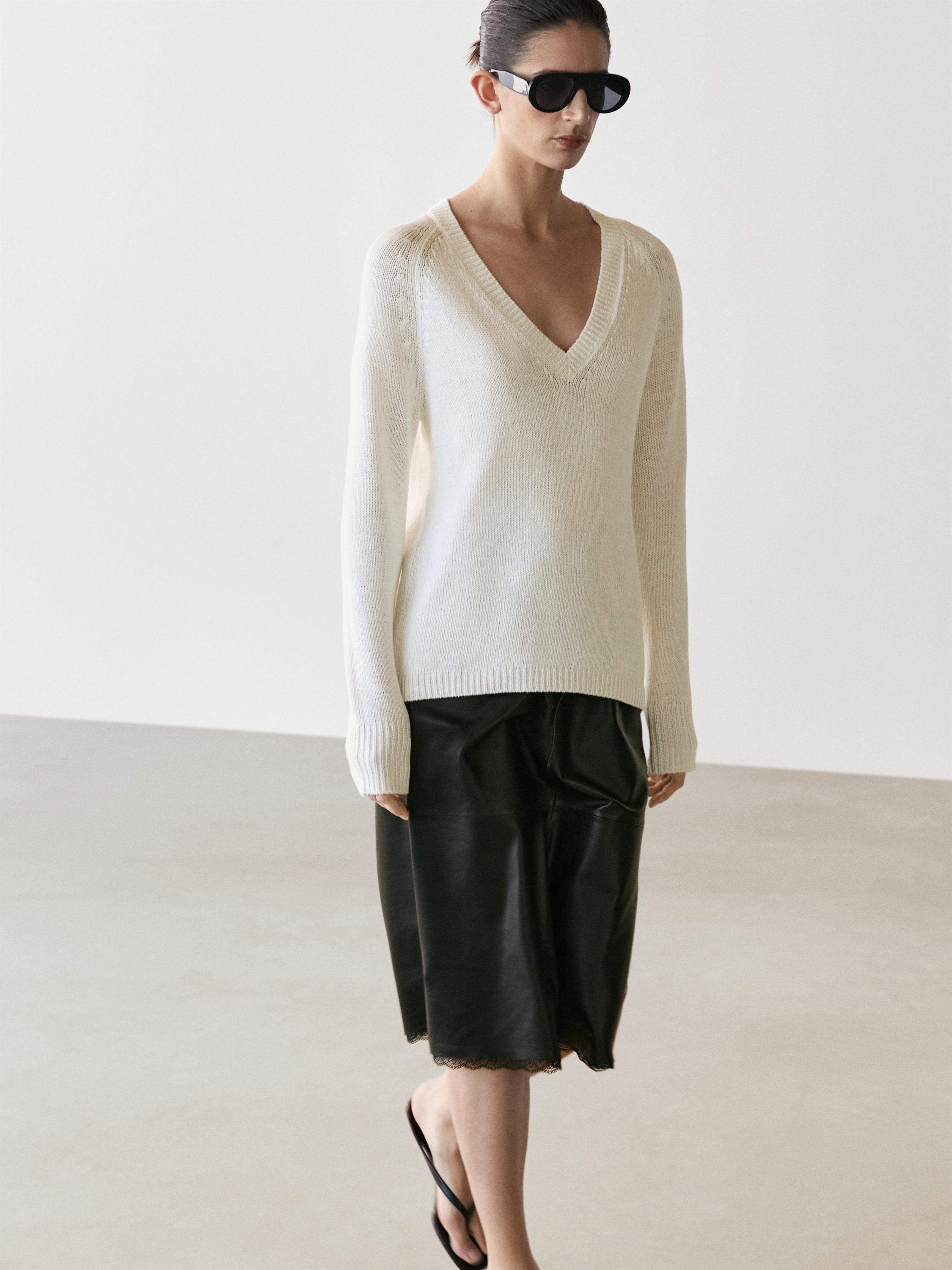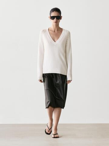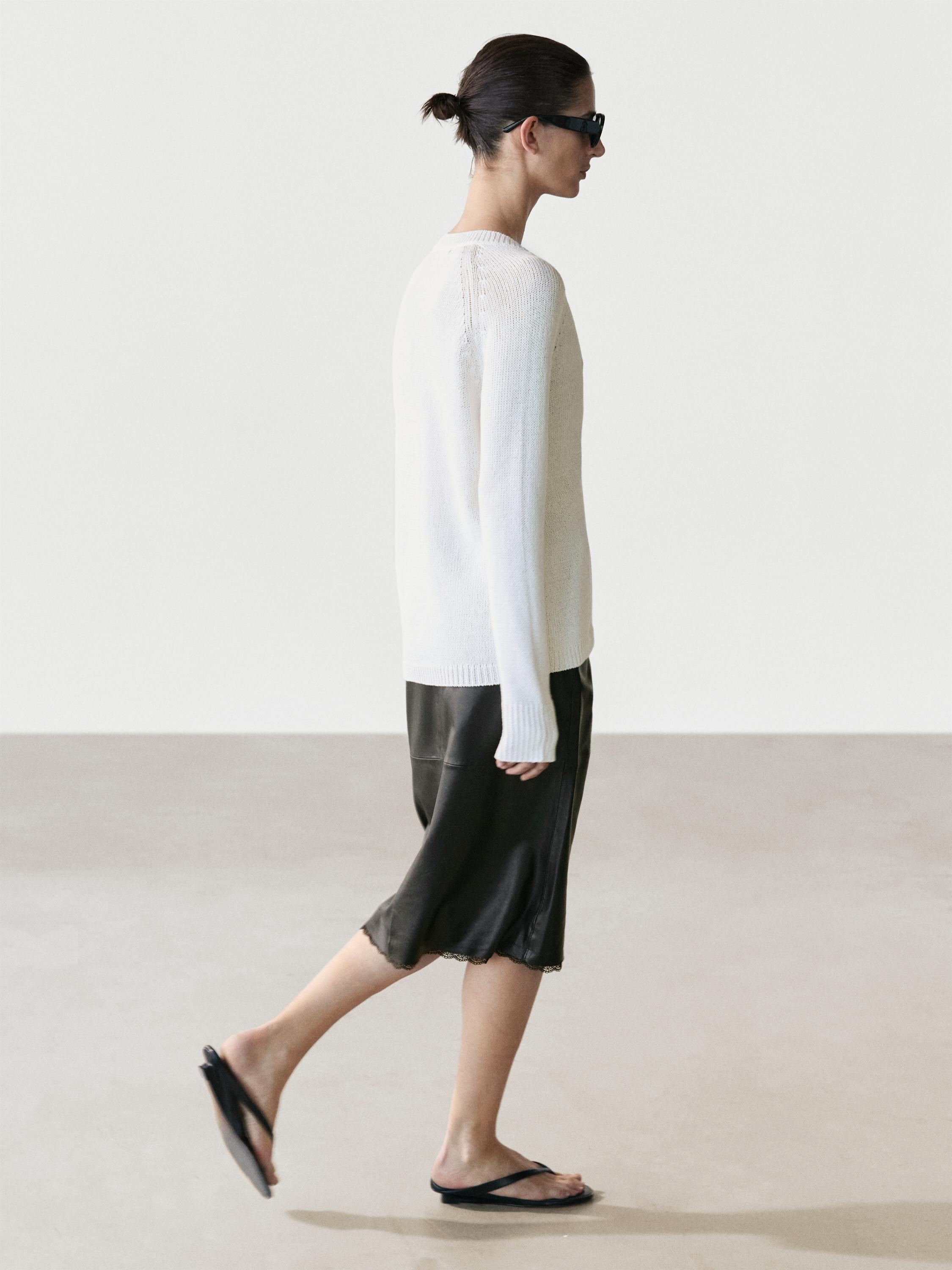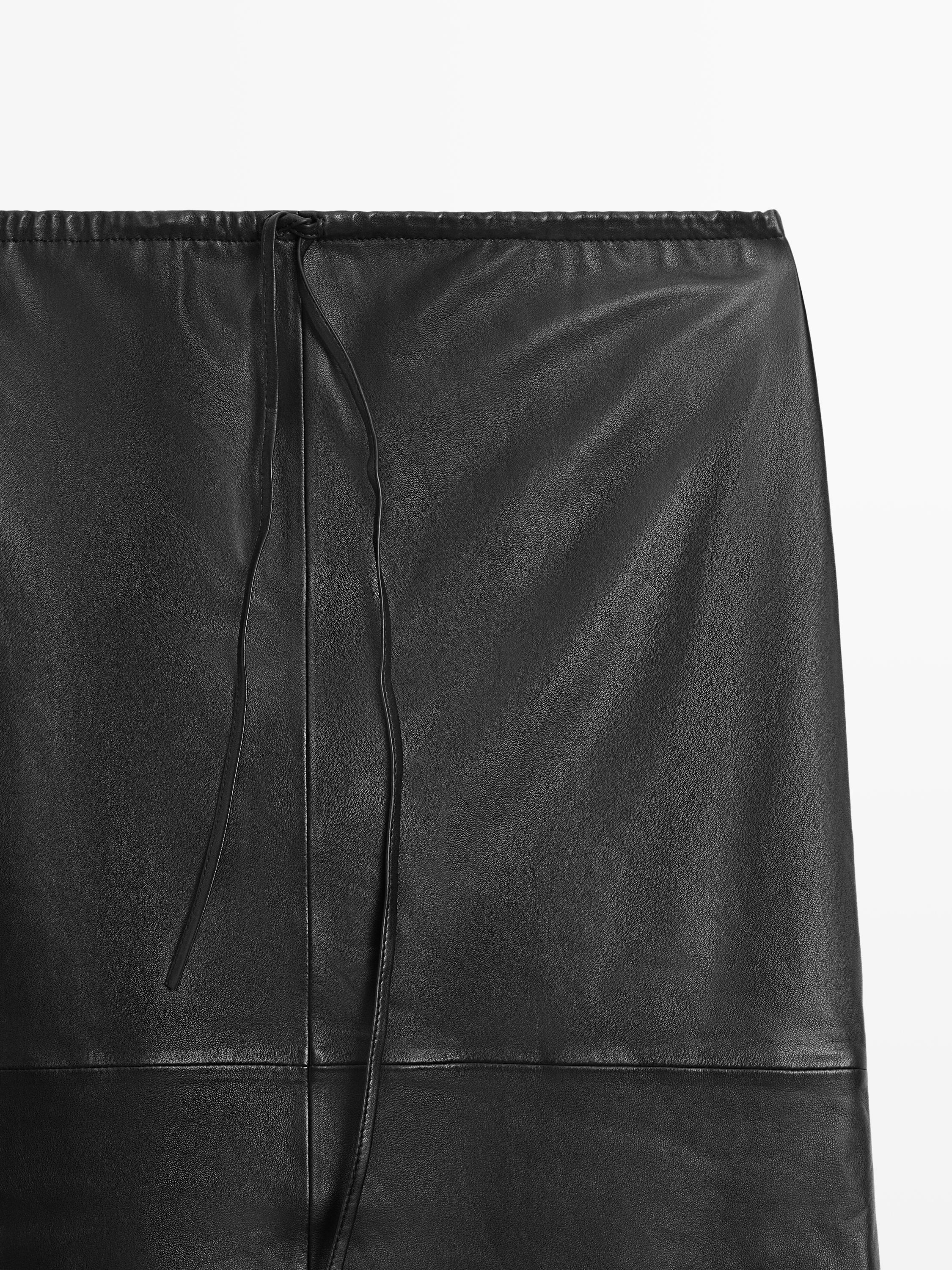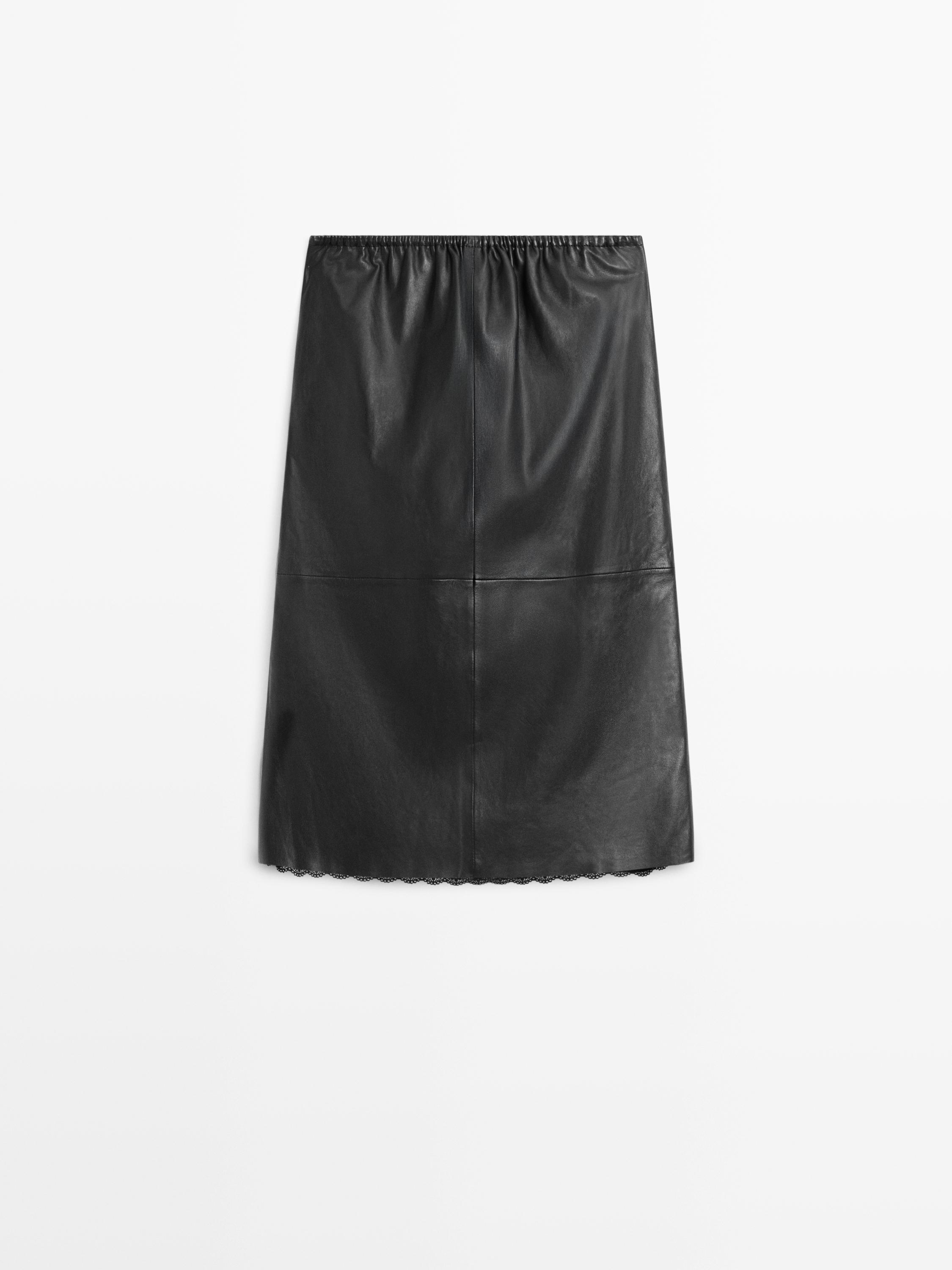 Massimo Dutti Юбка миди из кожи наппа с кружевной отделкой, черный