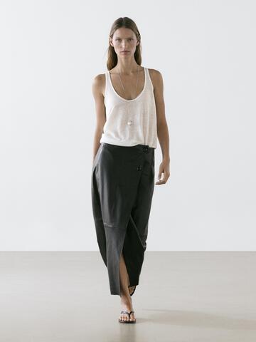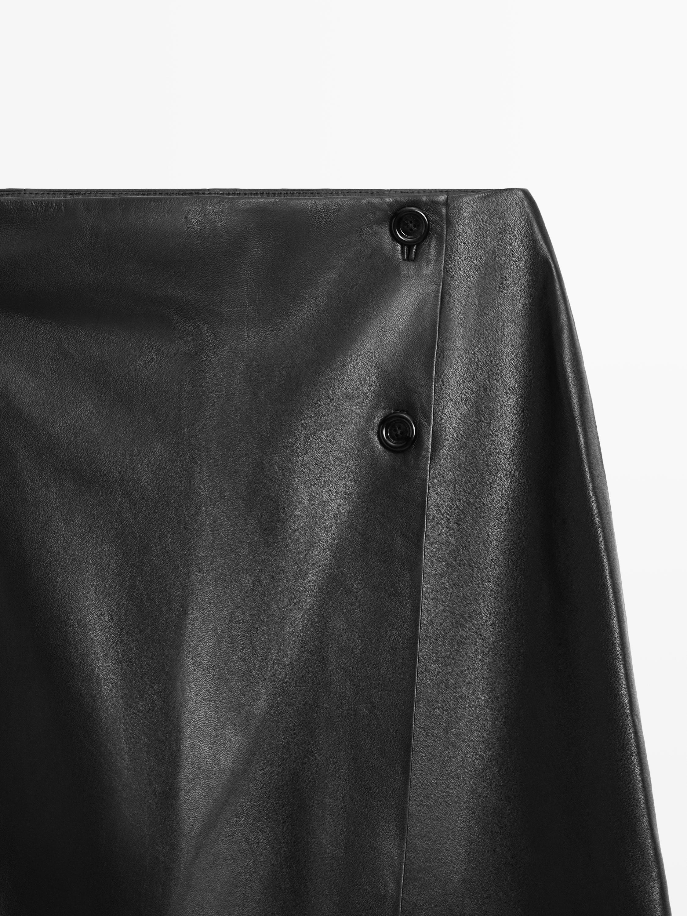 Massimo Dutti Юбка миди из кожи наппа со швами, черный