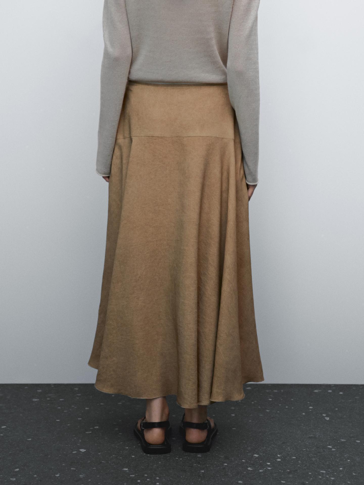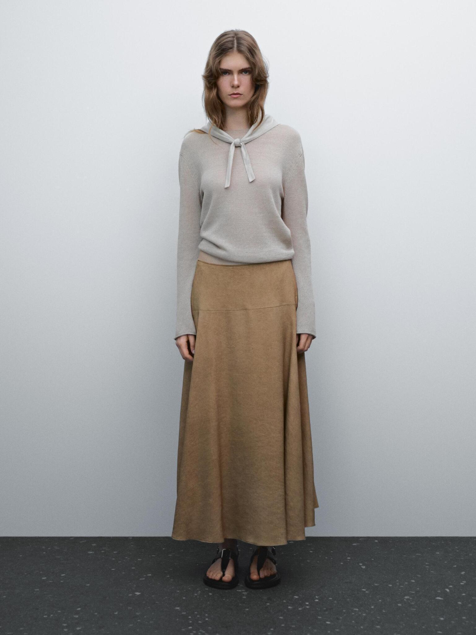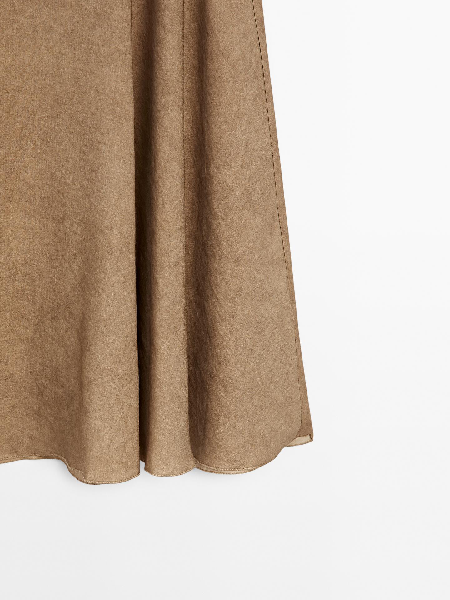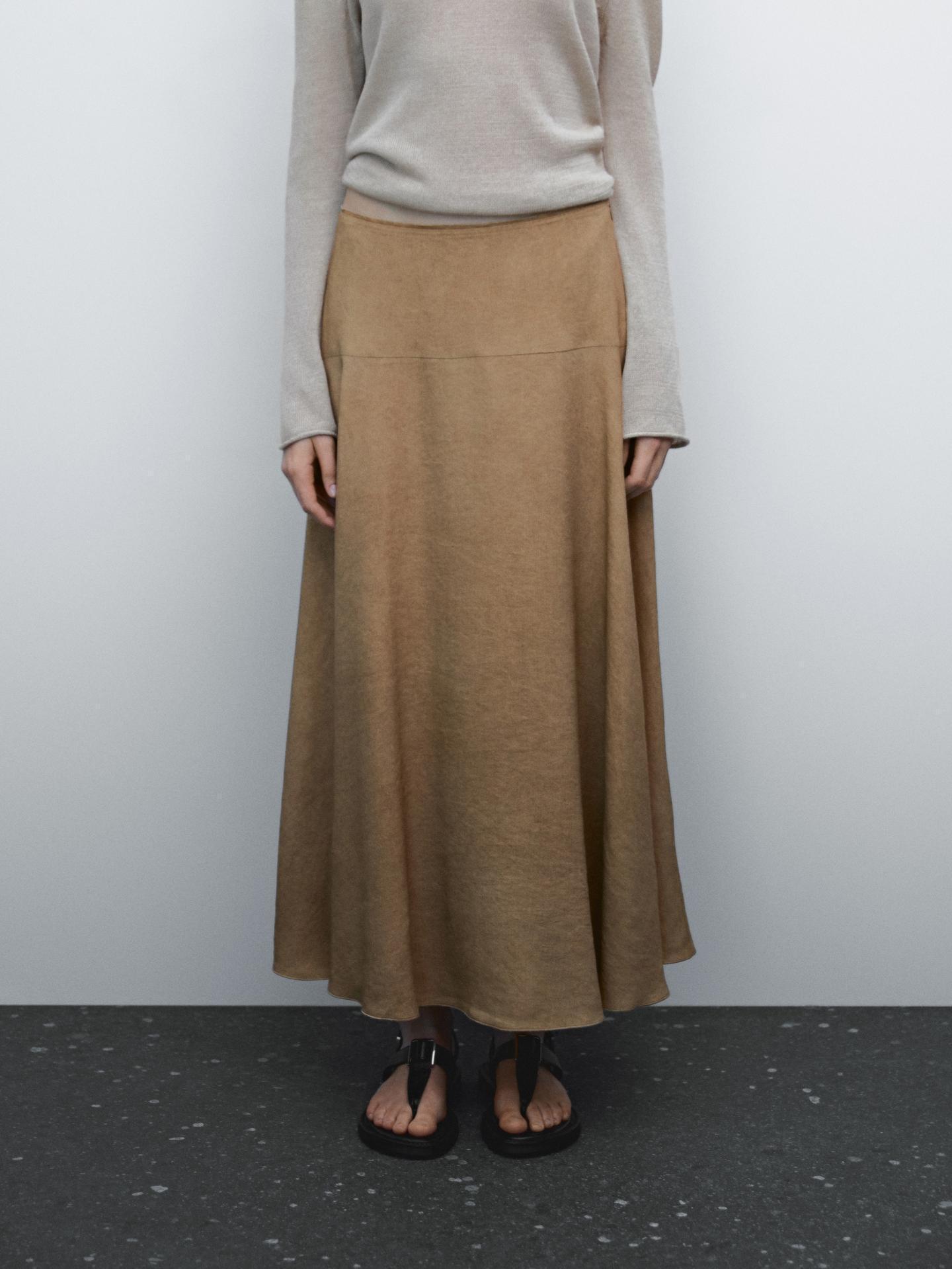 Massimo Dutti Юбка миди из льняной смеси с воланами, коричневый