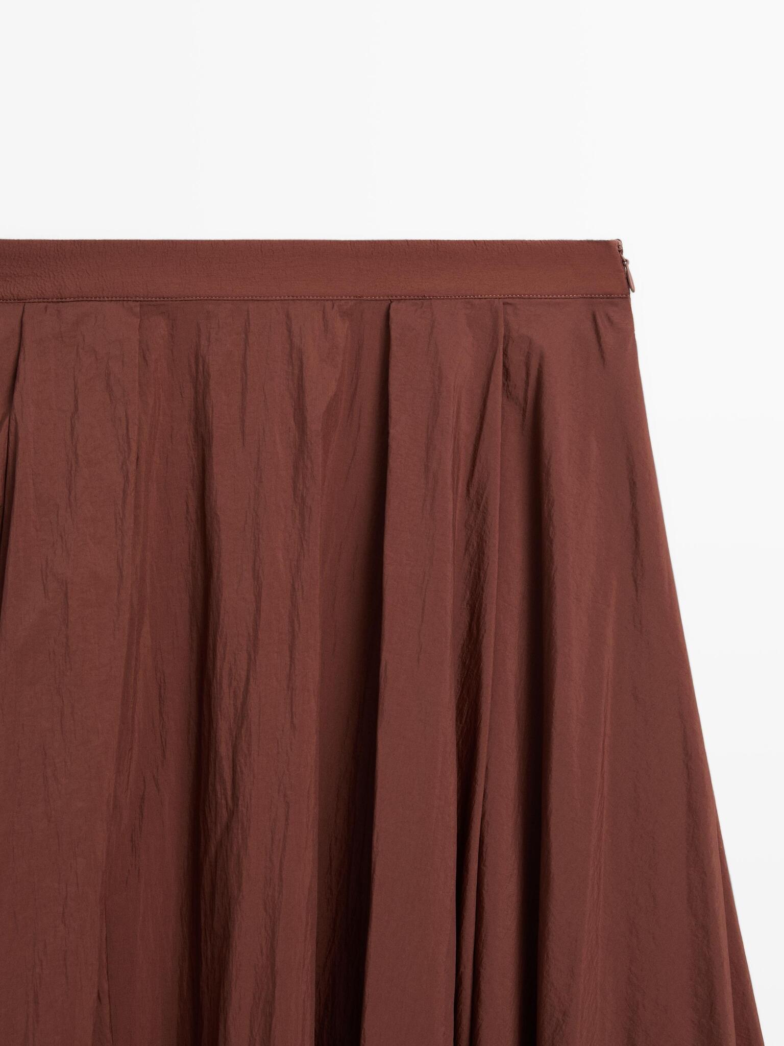 Massimo Dutti Юбка миди из высокотехнологичной ткани со складками, черепичный