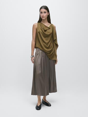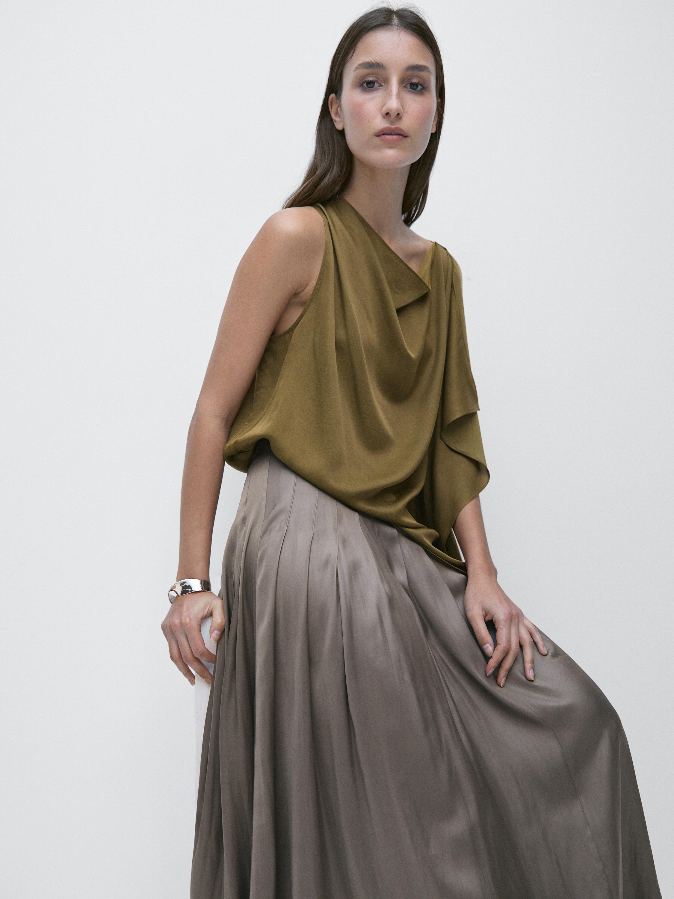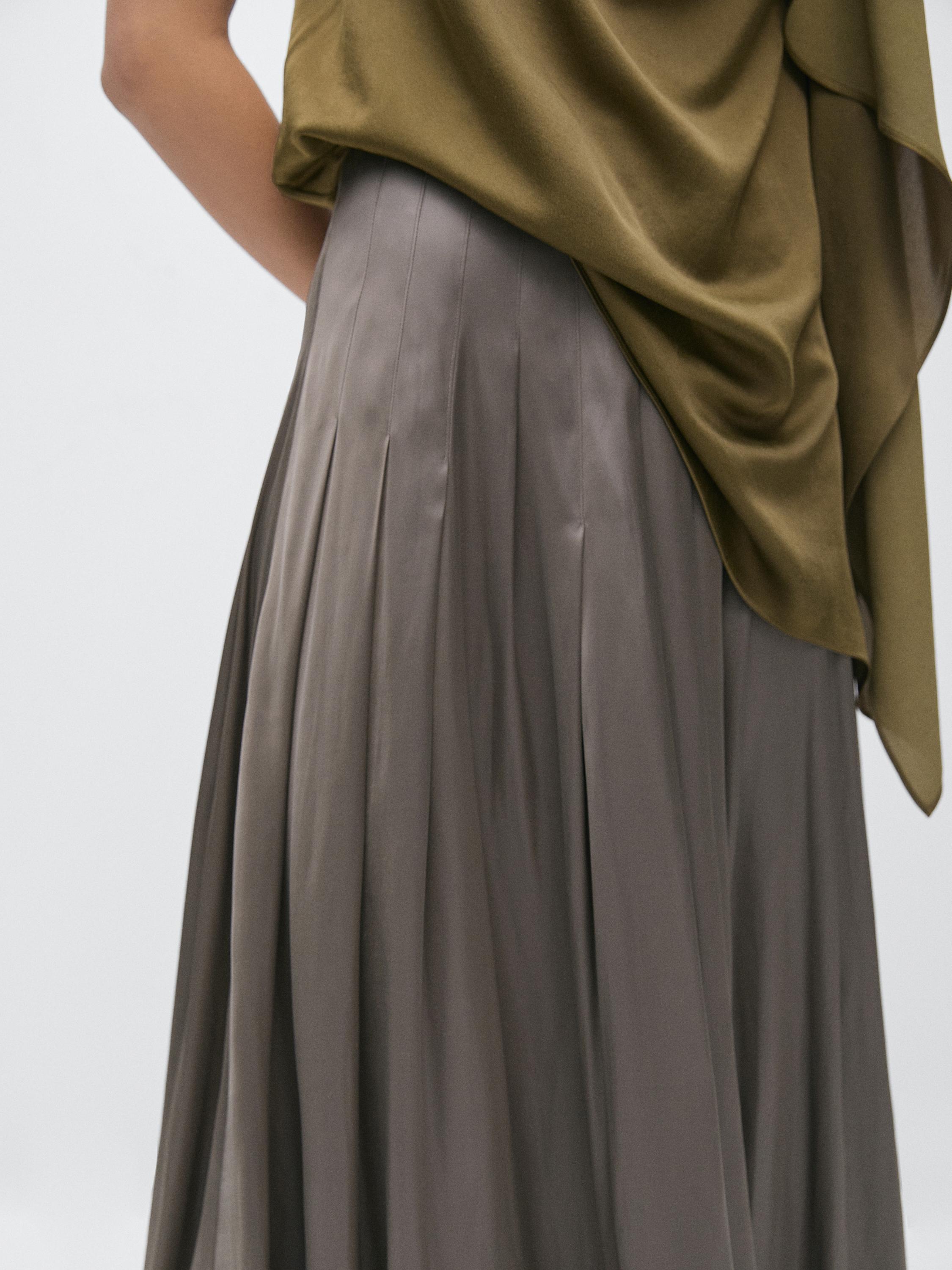 Massimo Dutti Юбка миди с декоративными складками и вощеной отделкой, серый