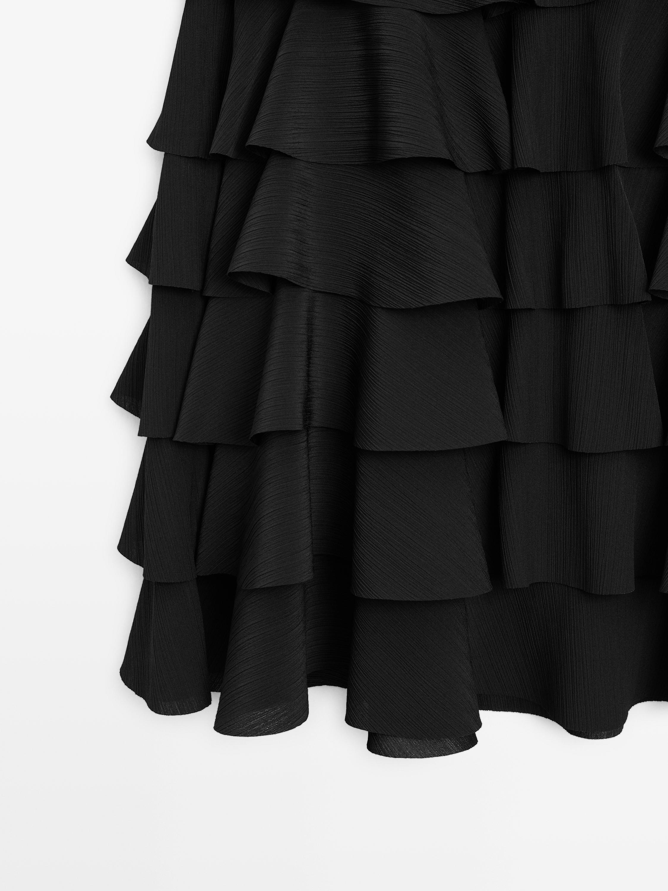 Massimo Dutti Юбка миди с оборками, черный