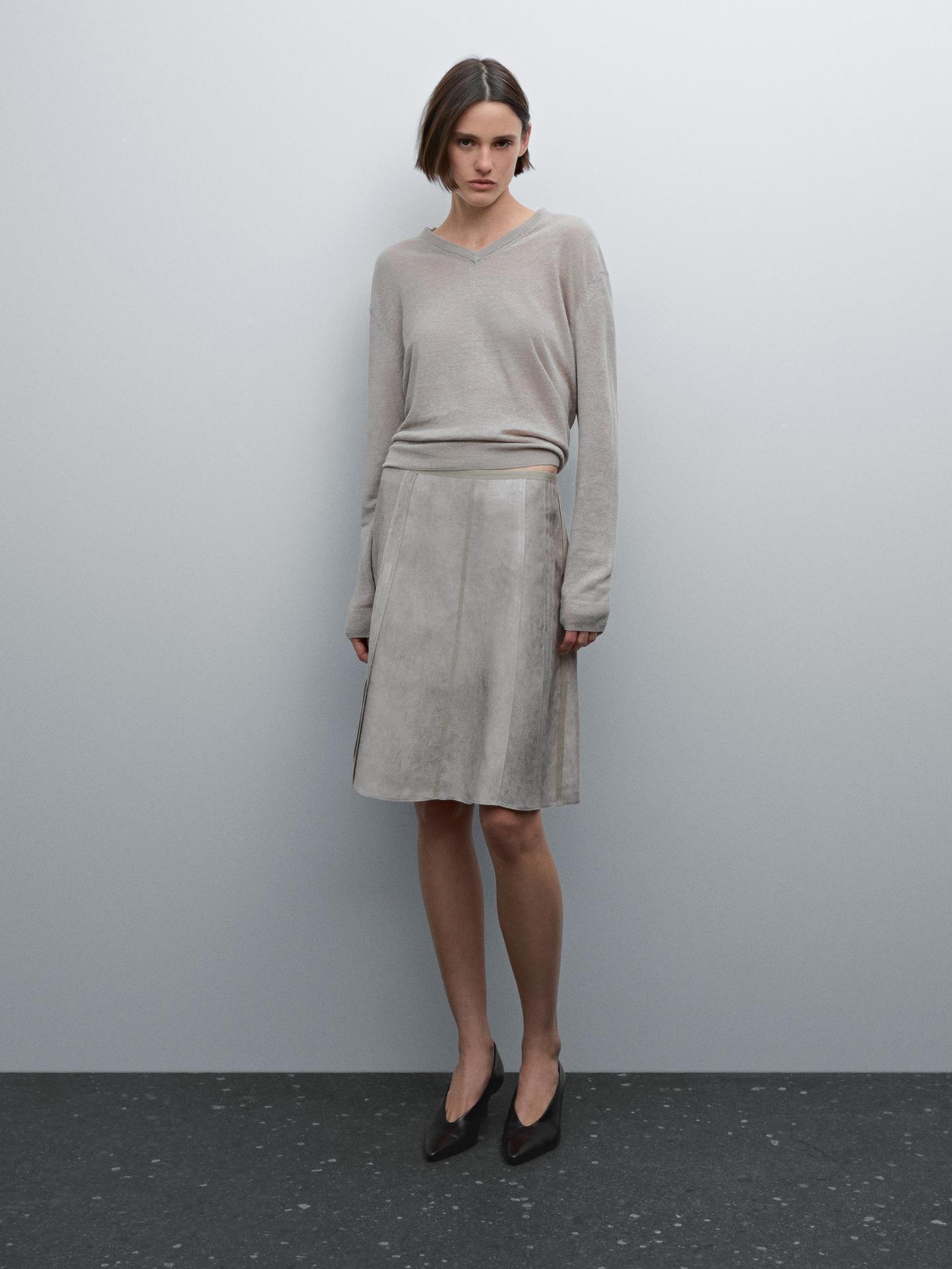 Massimo Dutti Юбка миди с отделкой стежками, серый