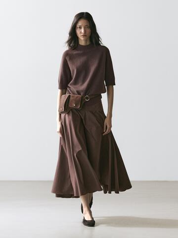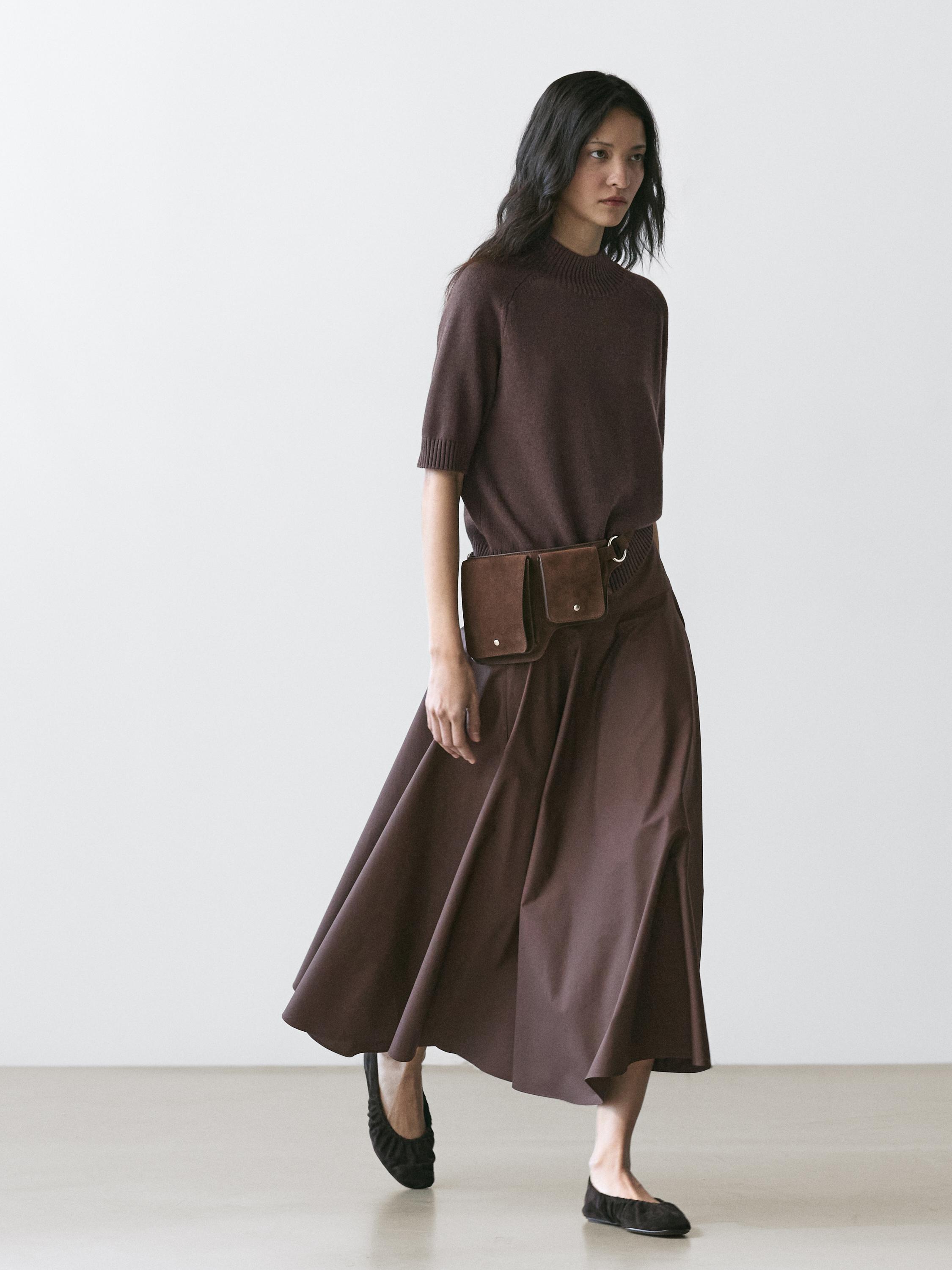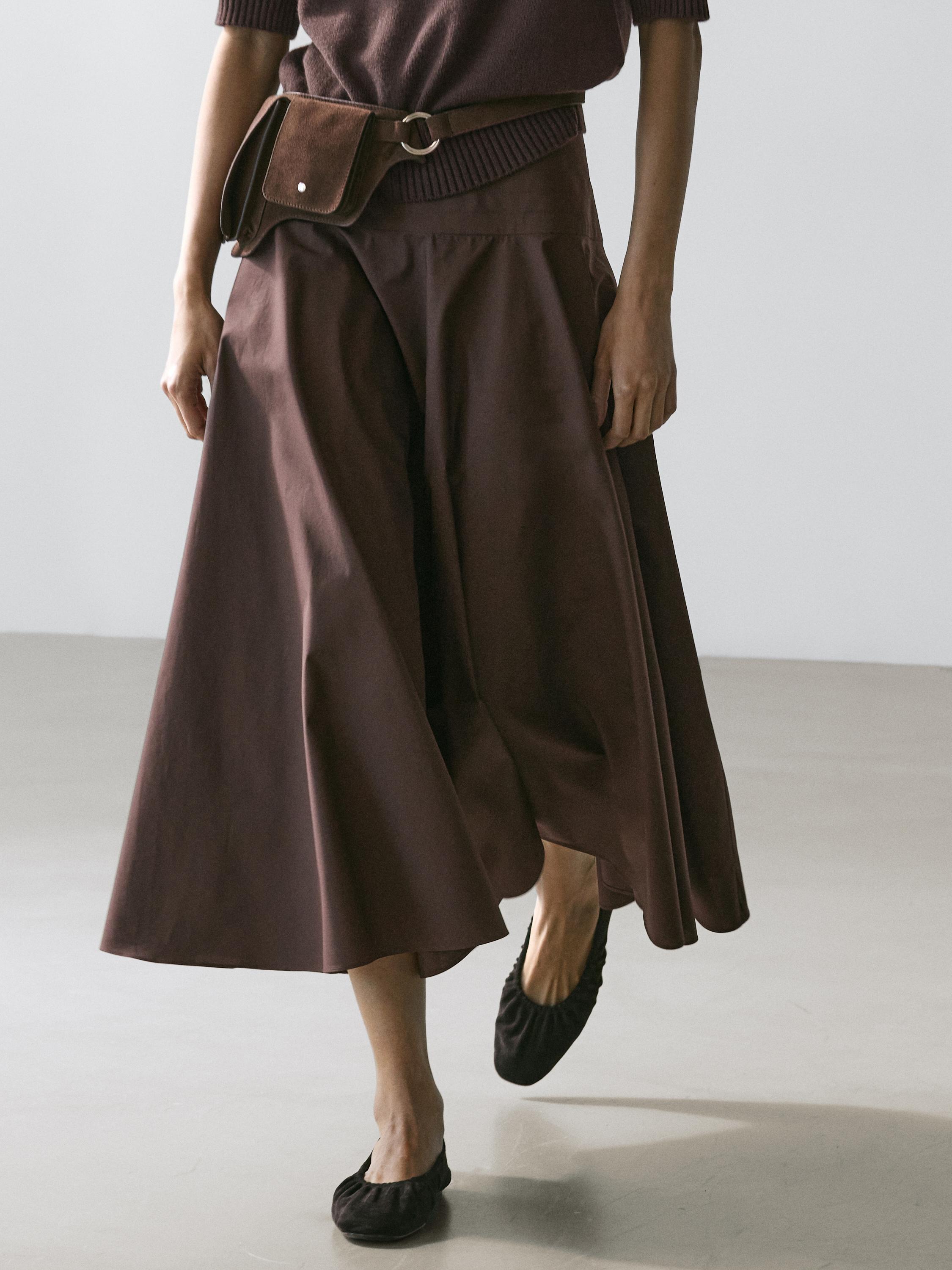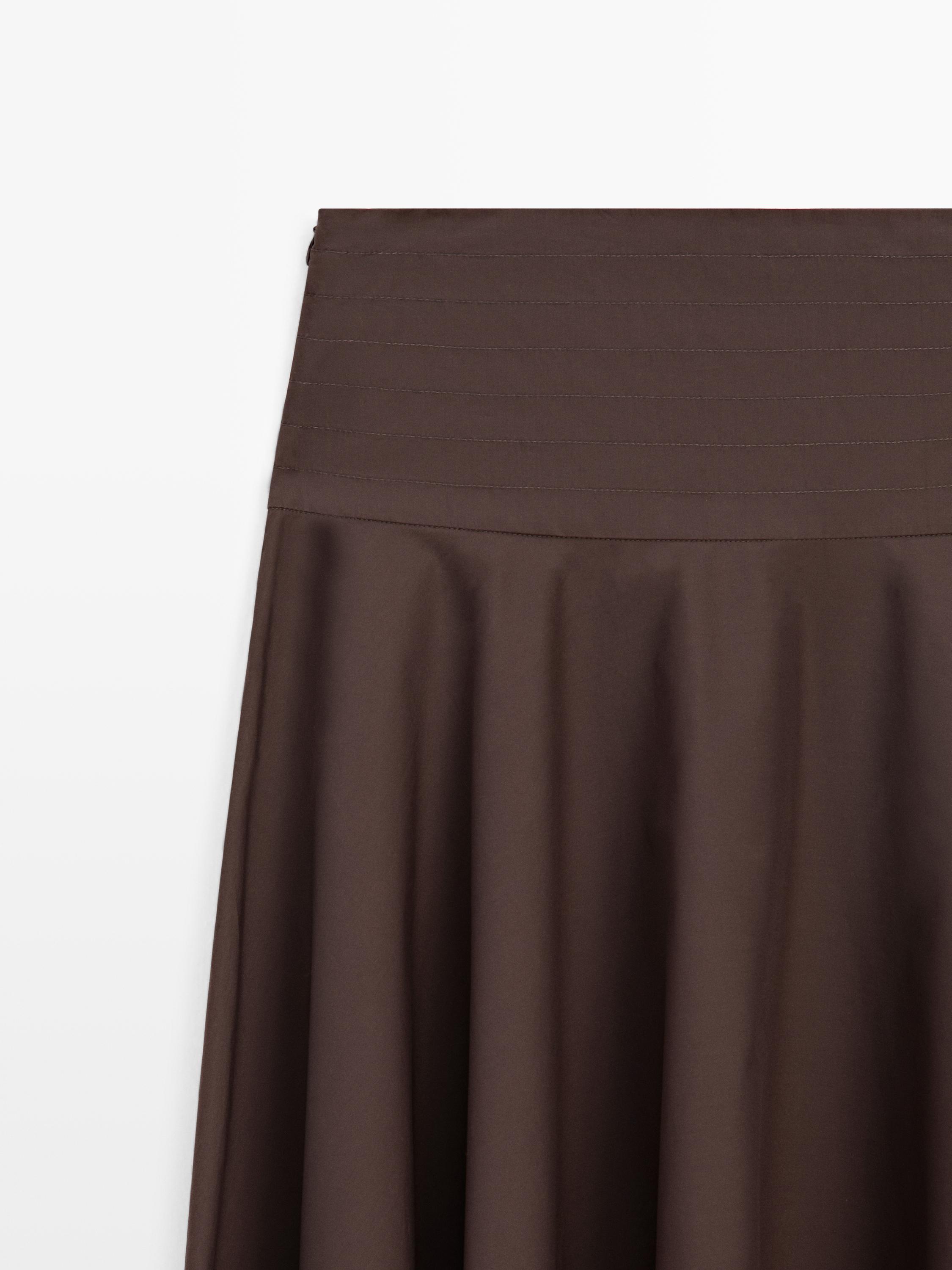 Massimo Dutti Юбка миди с поясом-лентой и декоративными швами, коричневый