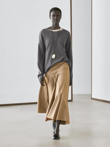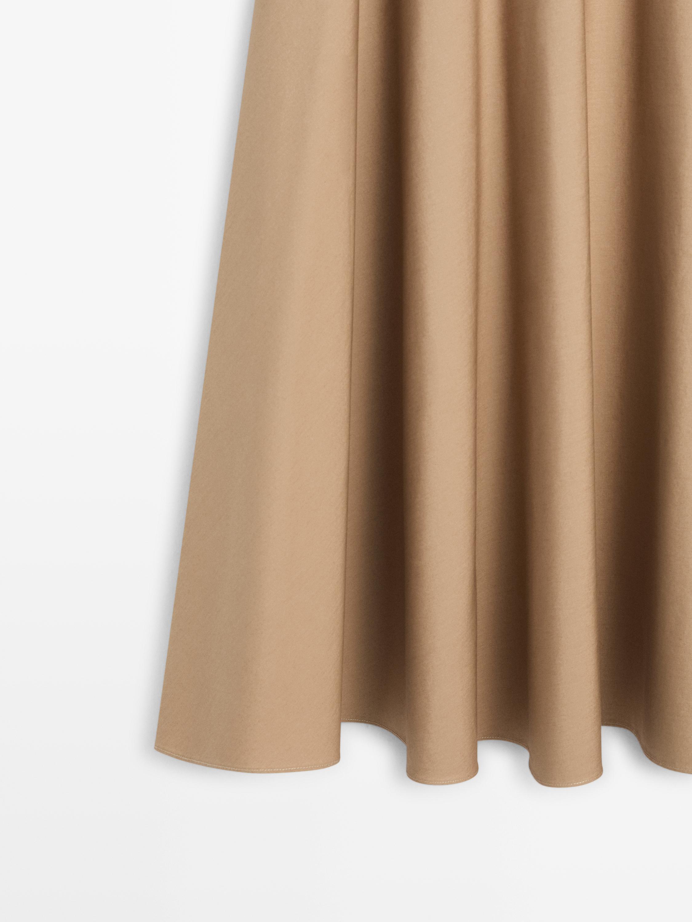 Massimo Dutti Юбка миди с воланами на кокетке, цвет верблюжьей шерсти
