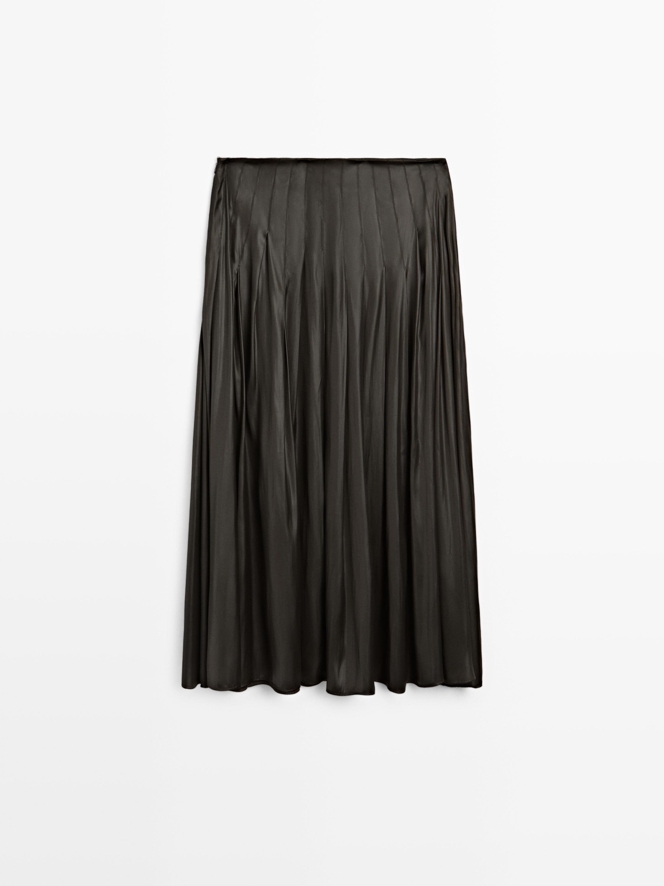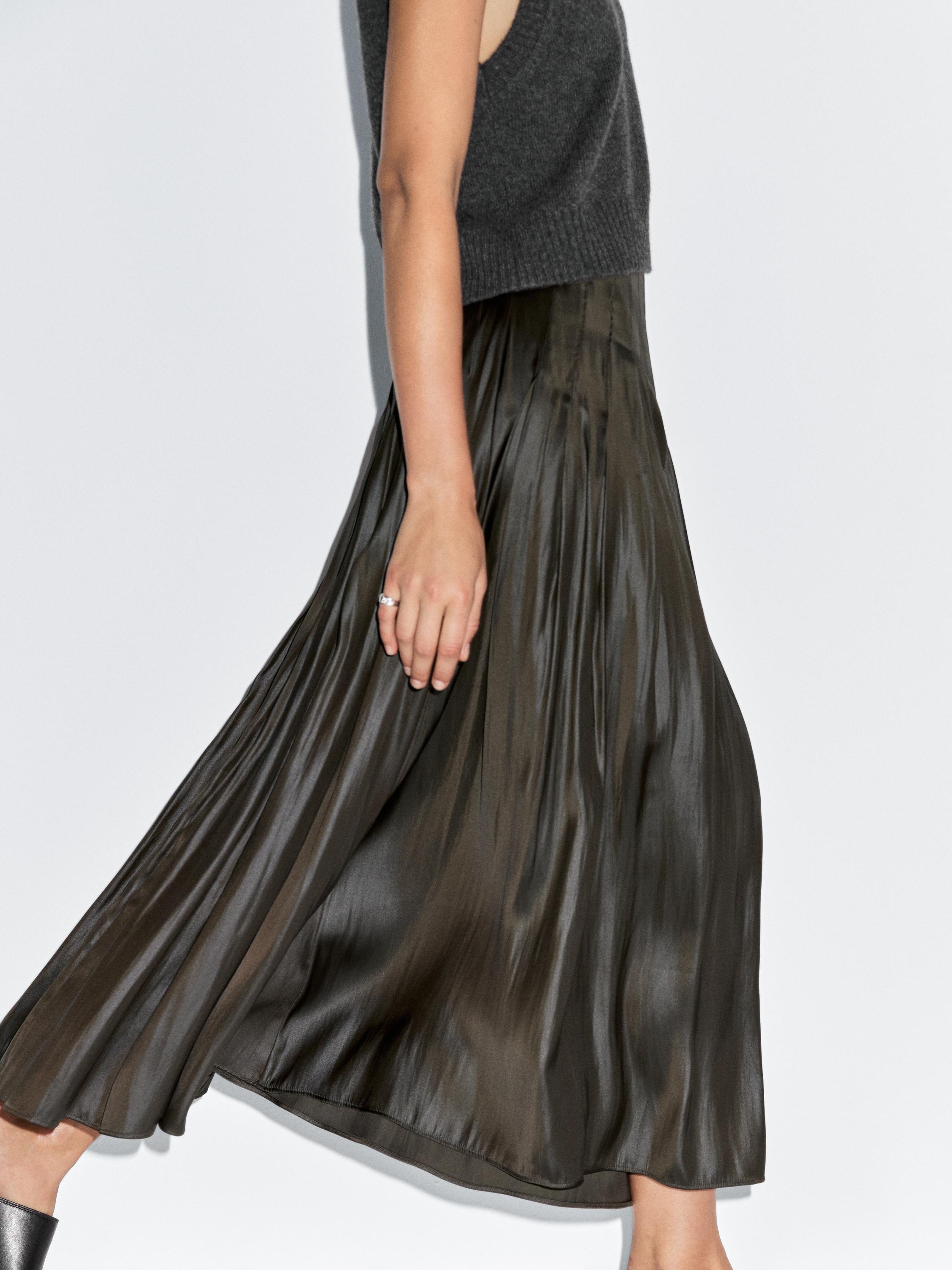 Massimo Dutti Юбка миди с защипами и вощеной отделкой, зеленый