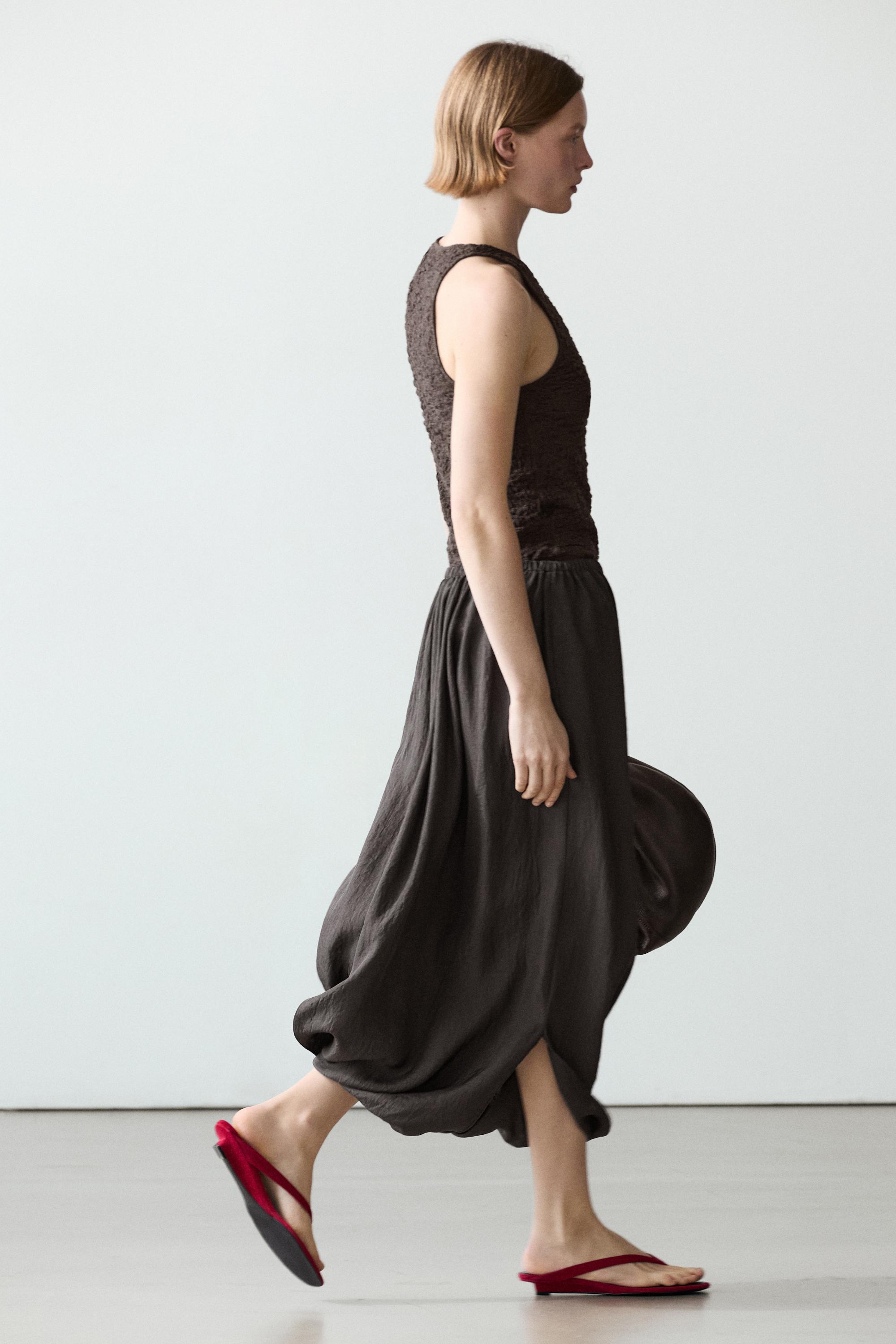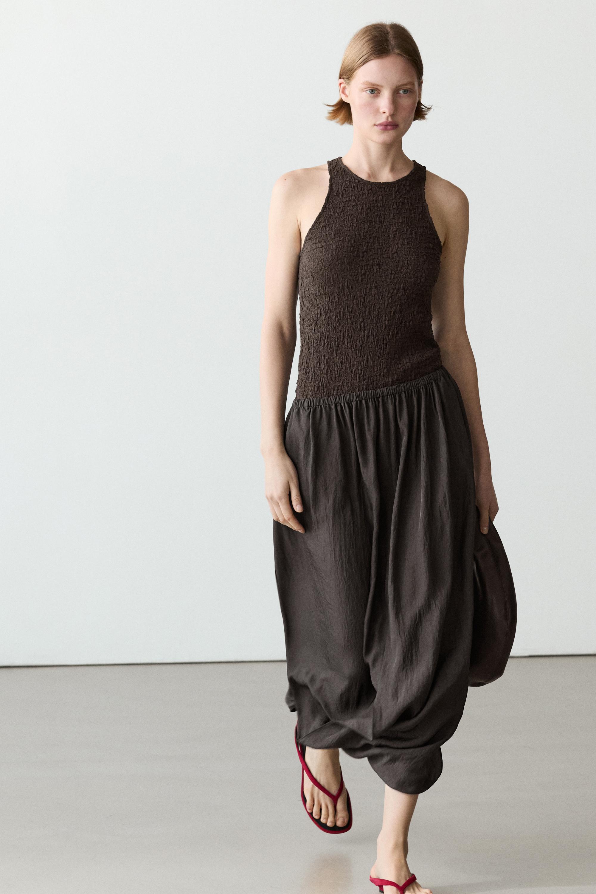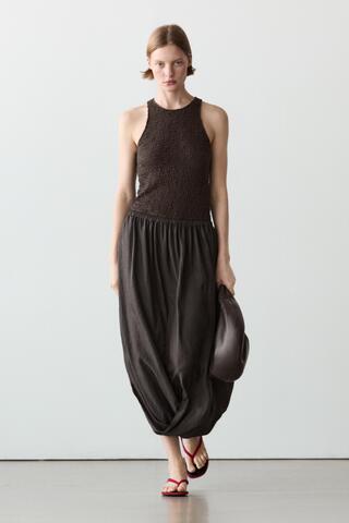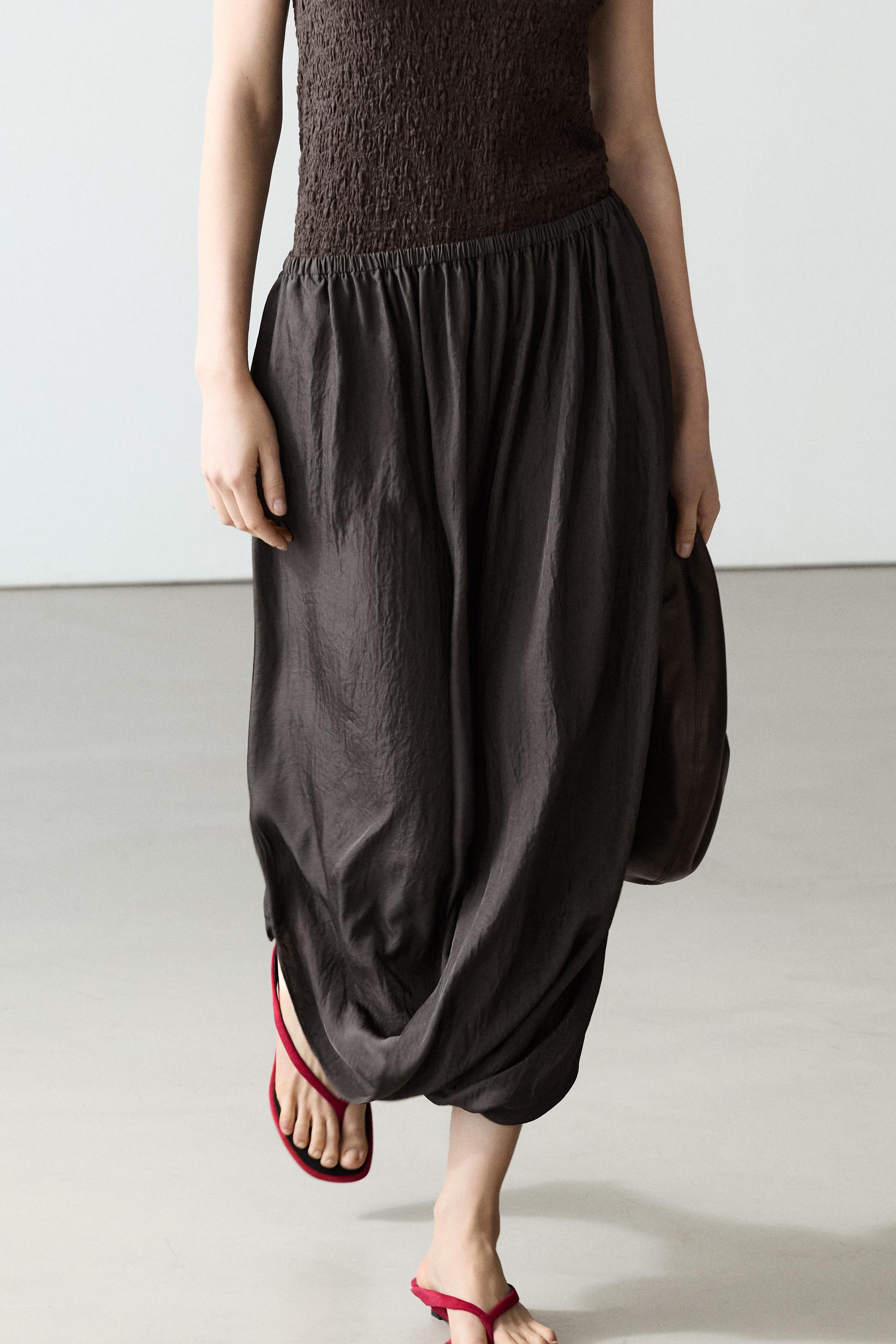 Massimo Dutti Юбка миди со сборками на талии, коричневый