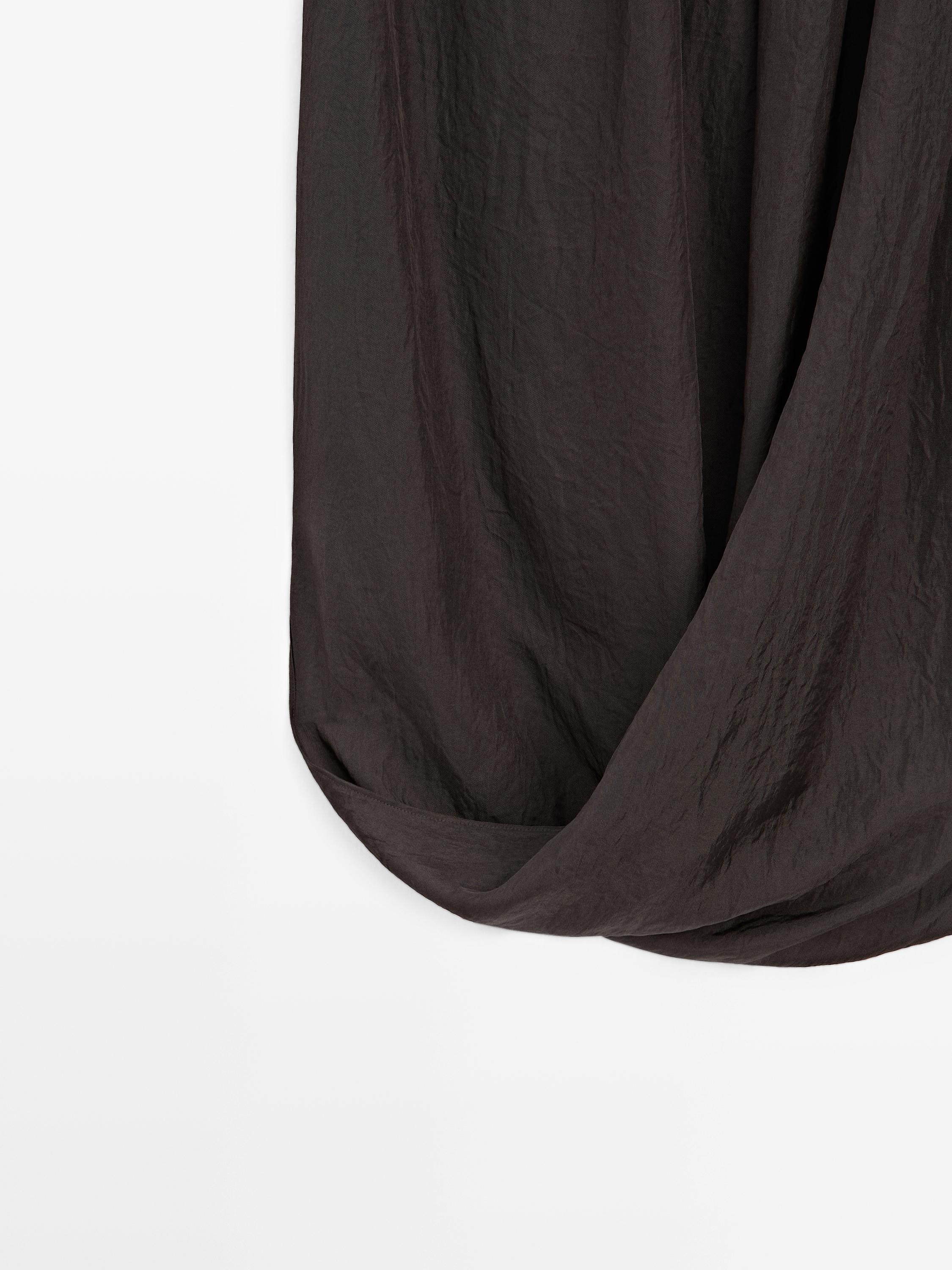 Струящаяся юбка. Драпированный перекрестный подол. Сборки на поясе. Тонкая, легкая ткань.
