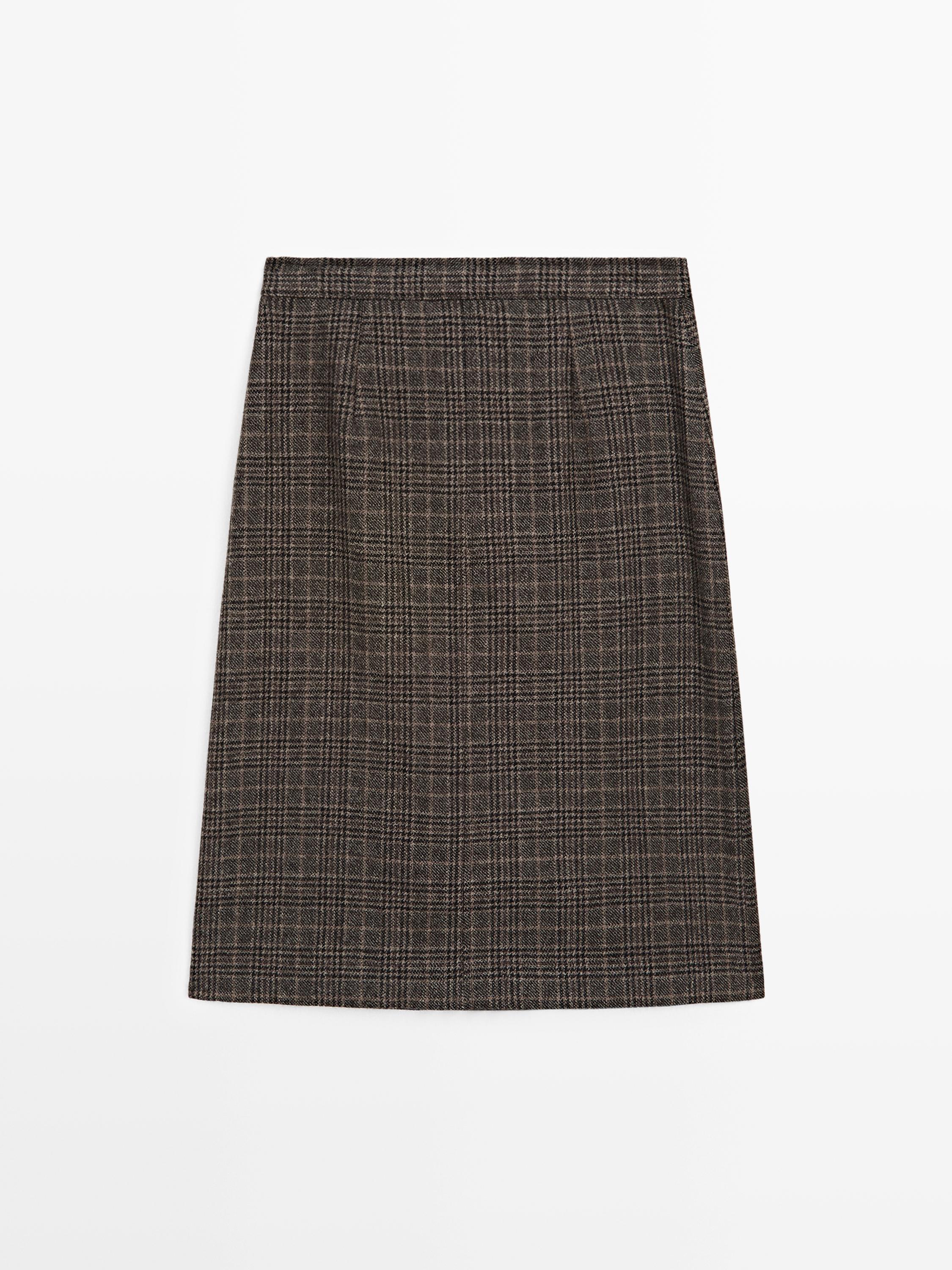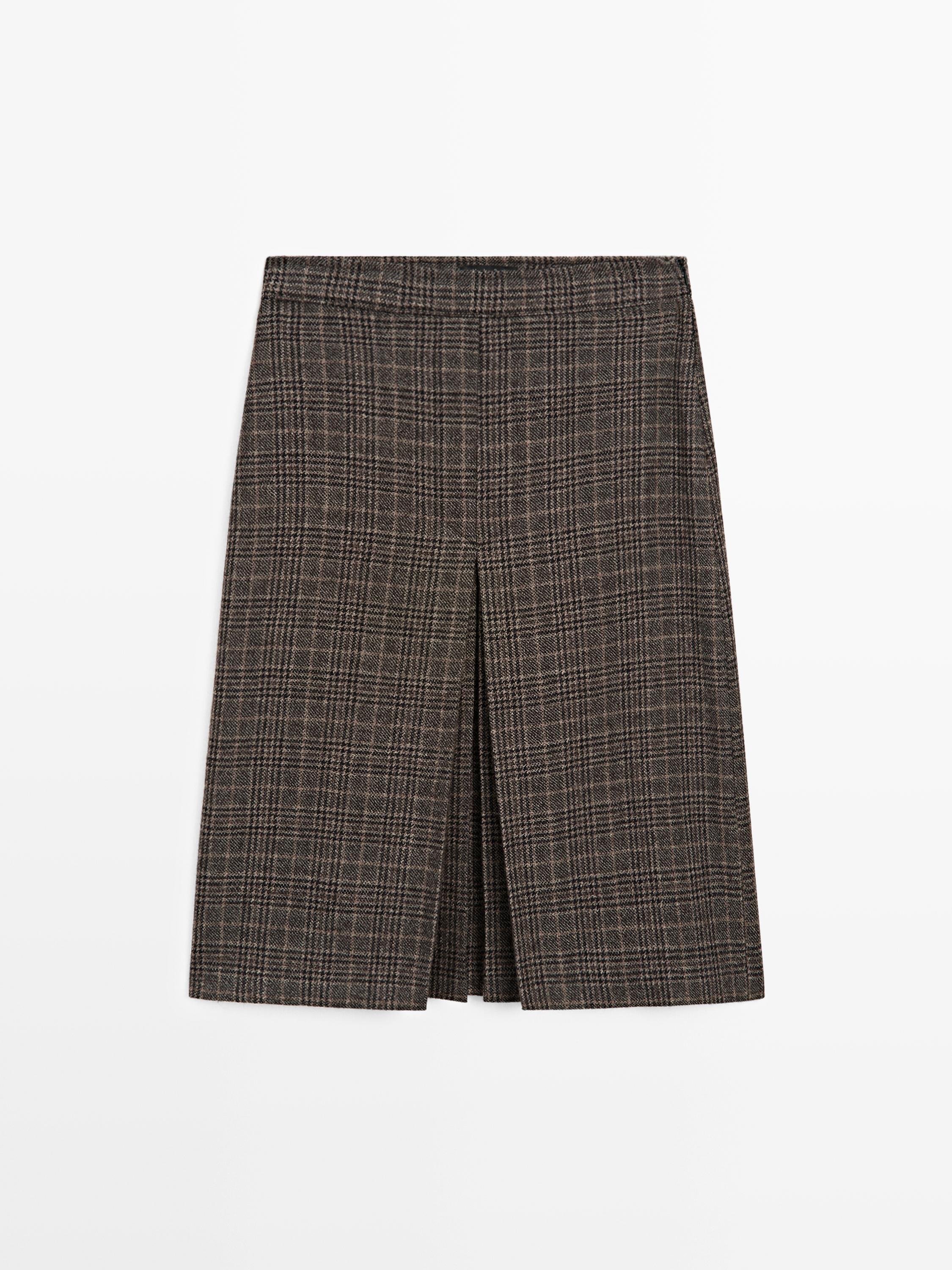Massimo Dutti Юбка миди в клетку из 100% шерсти, коричневый