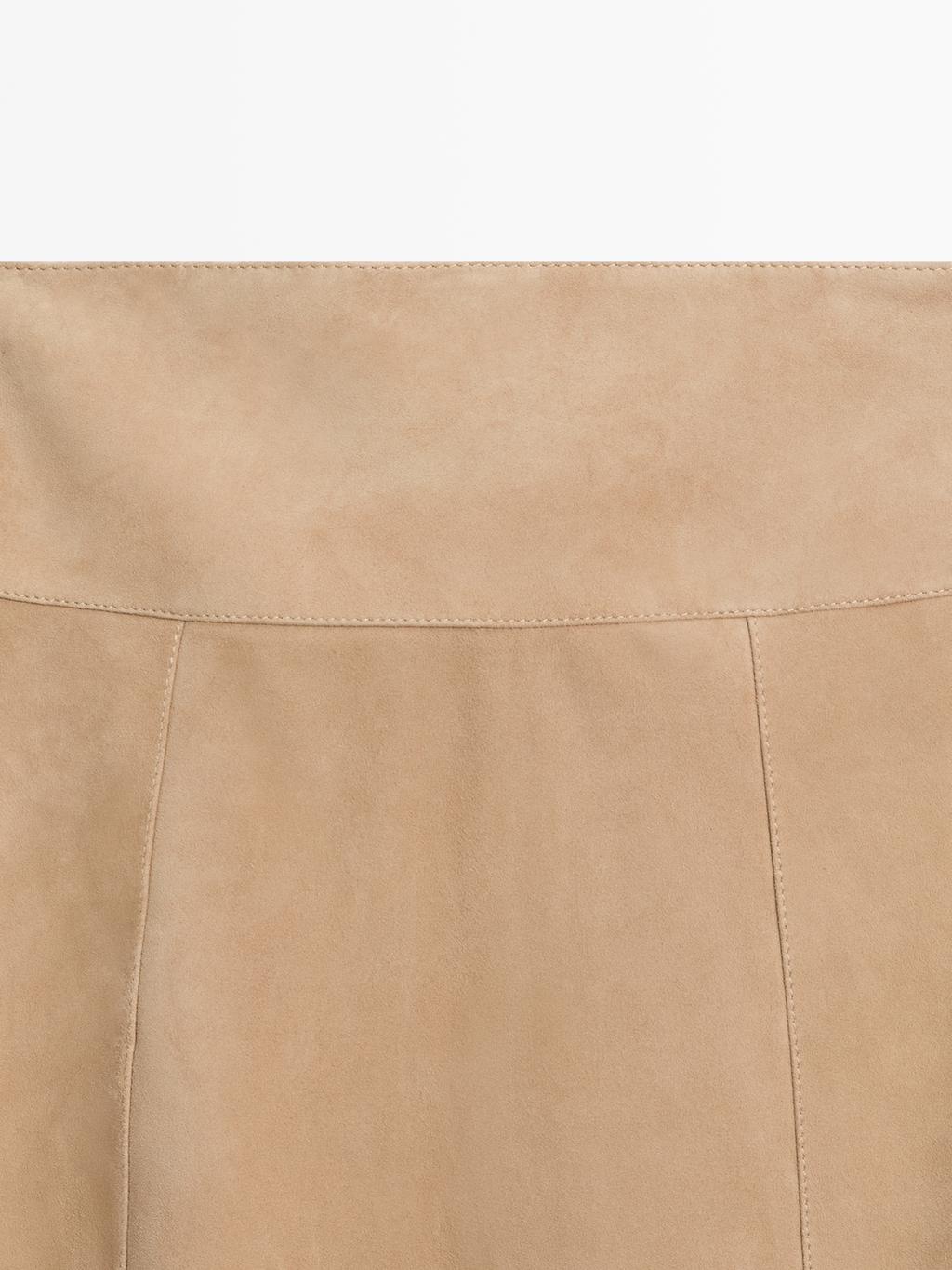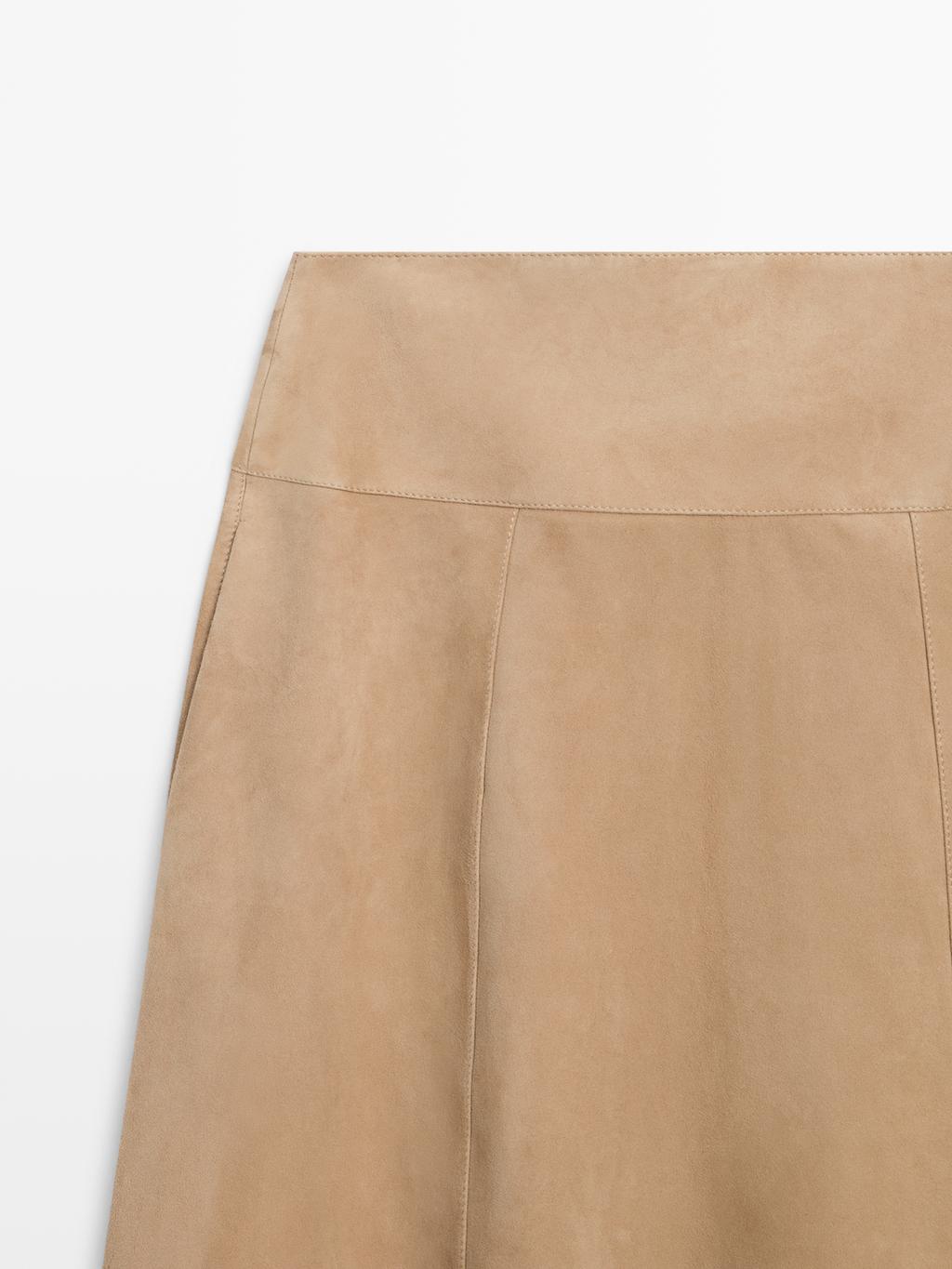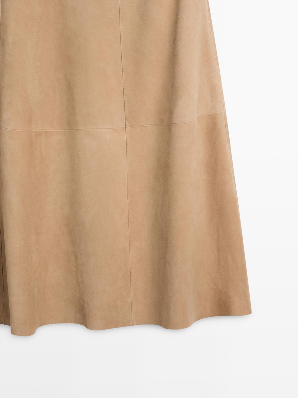 Massimo Dutti Юбка с поясом из замшевой кожи, песочный
