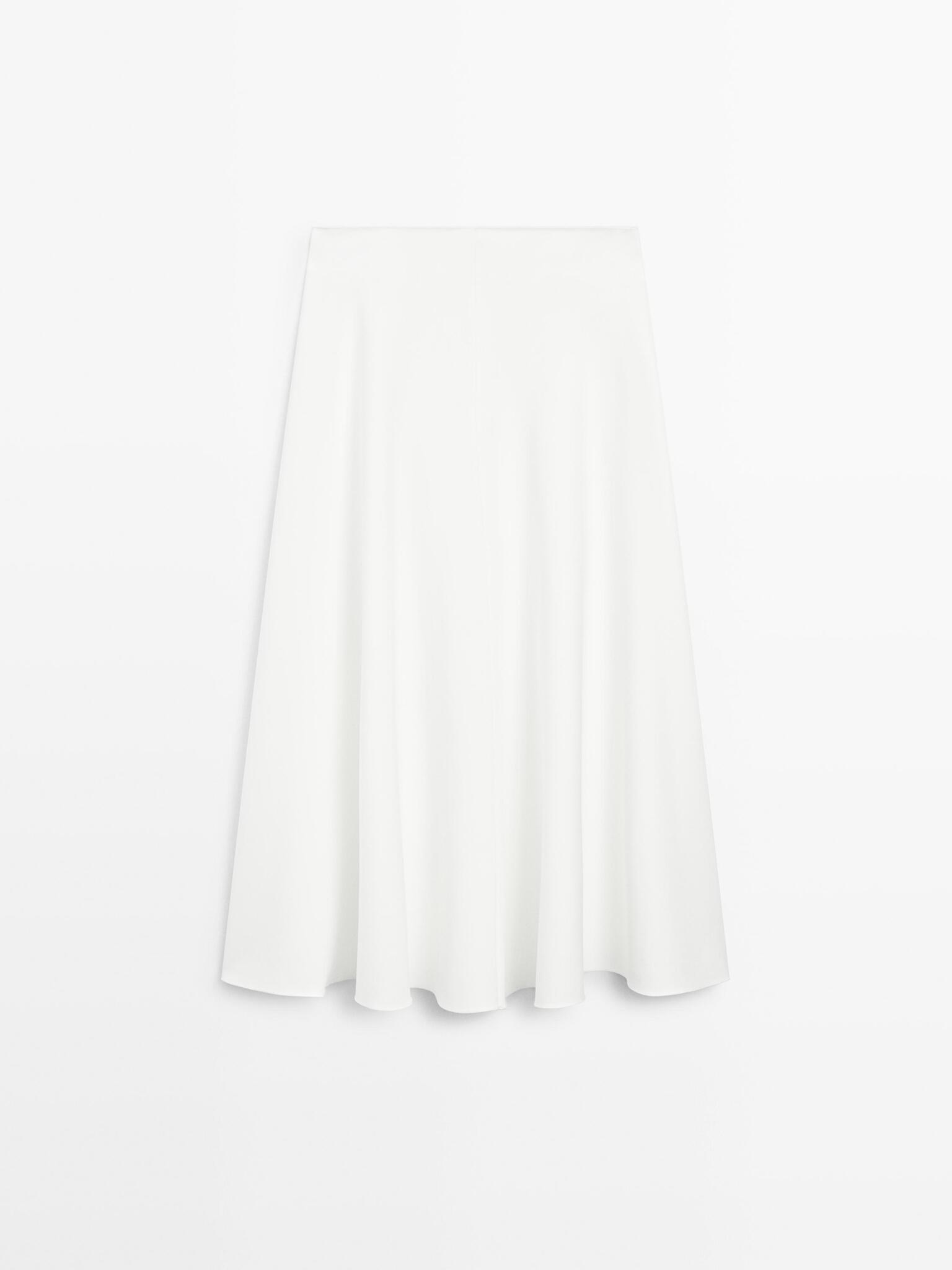 Расклешённая юбка миди. Застёжка-молния сзади. Доступна подходящая модель.