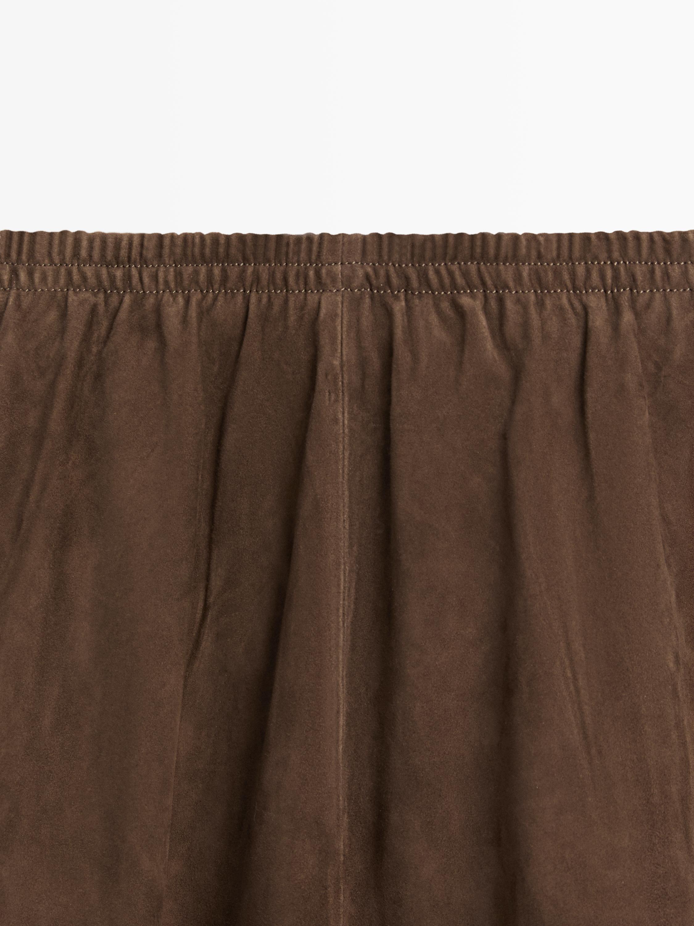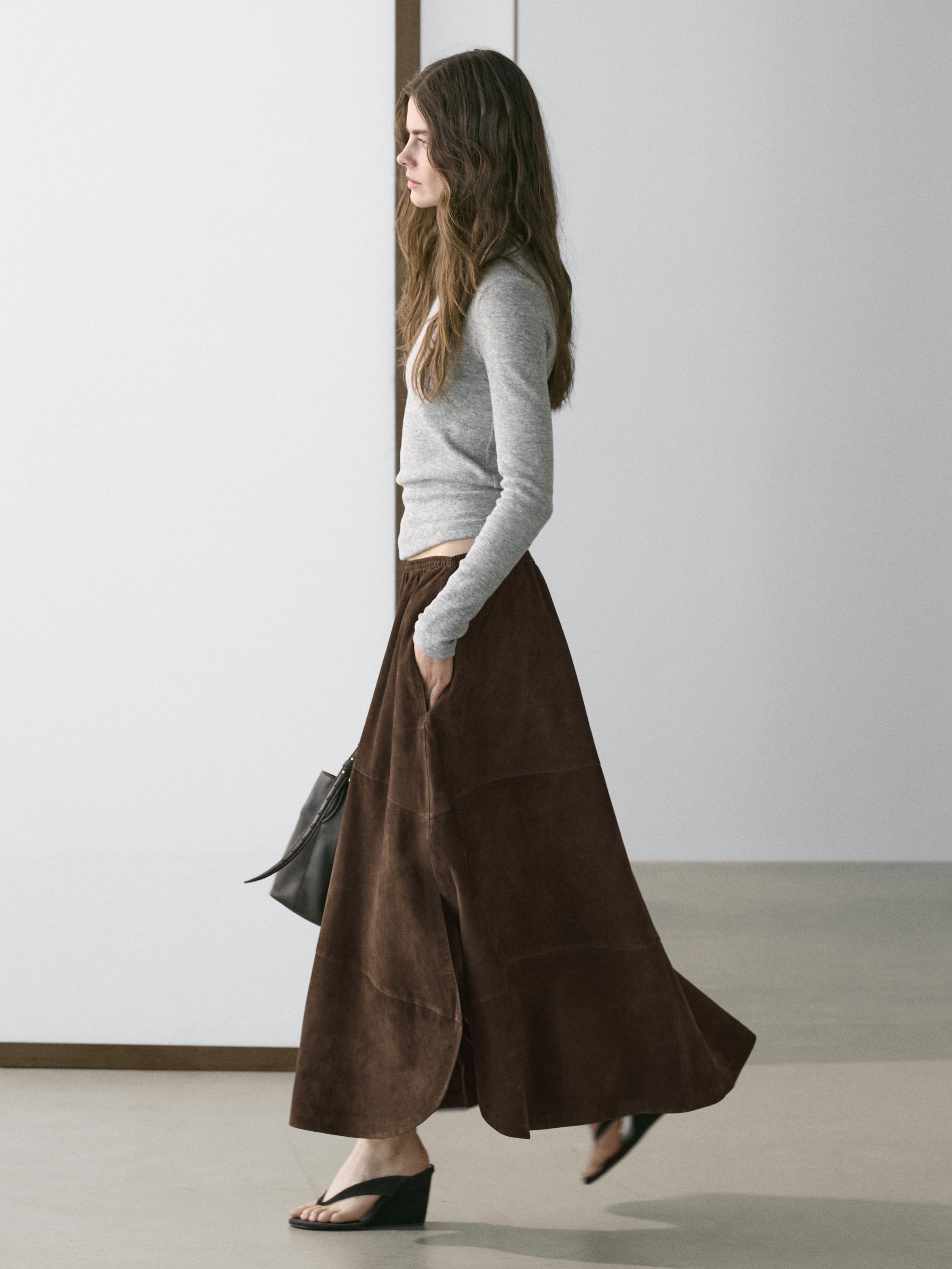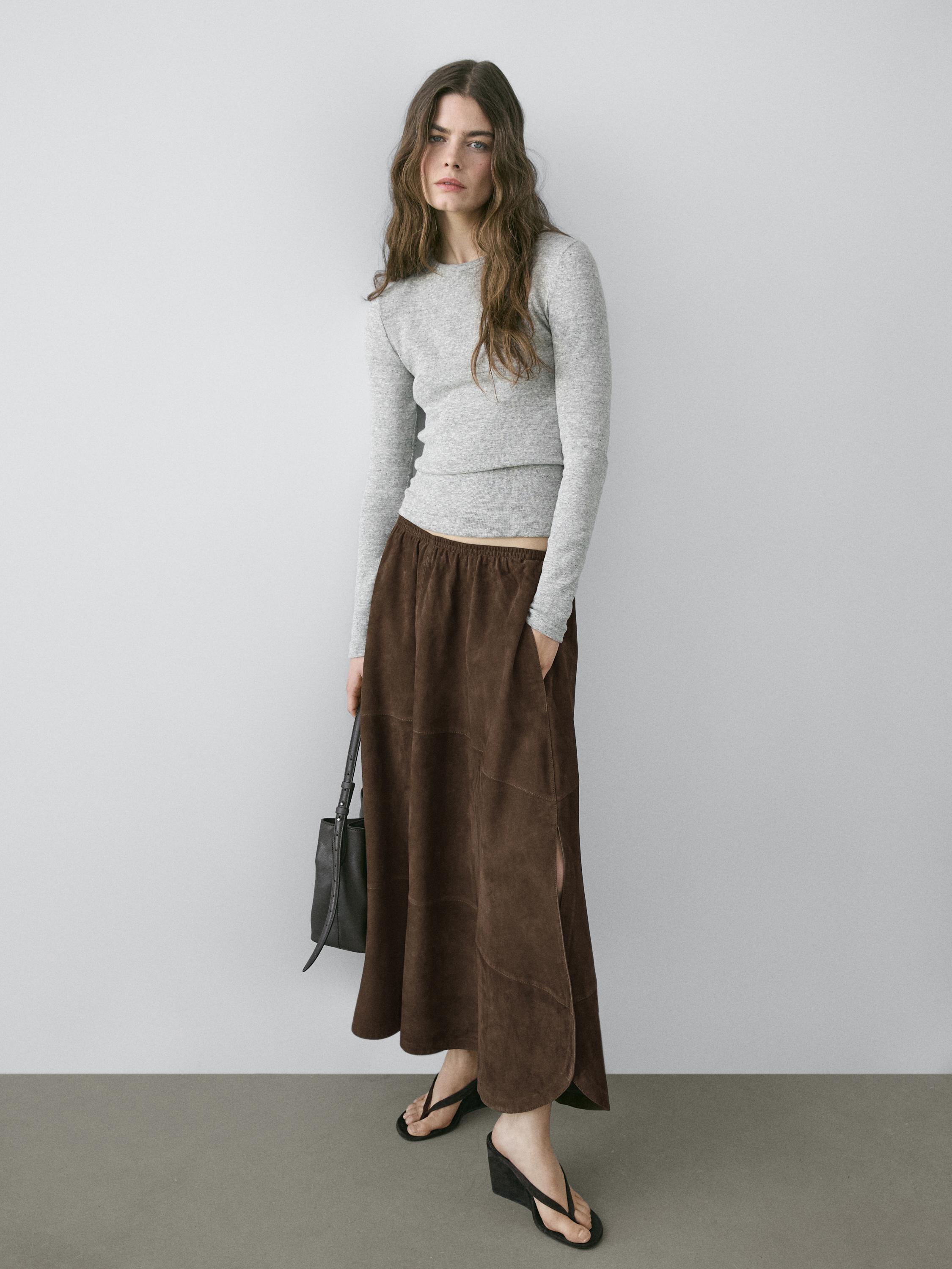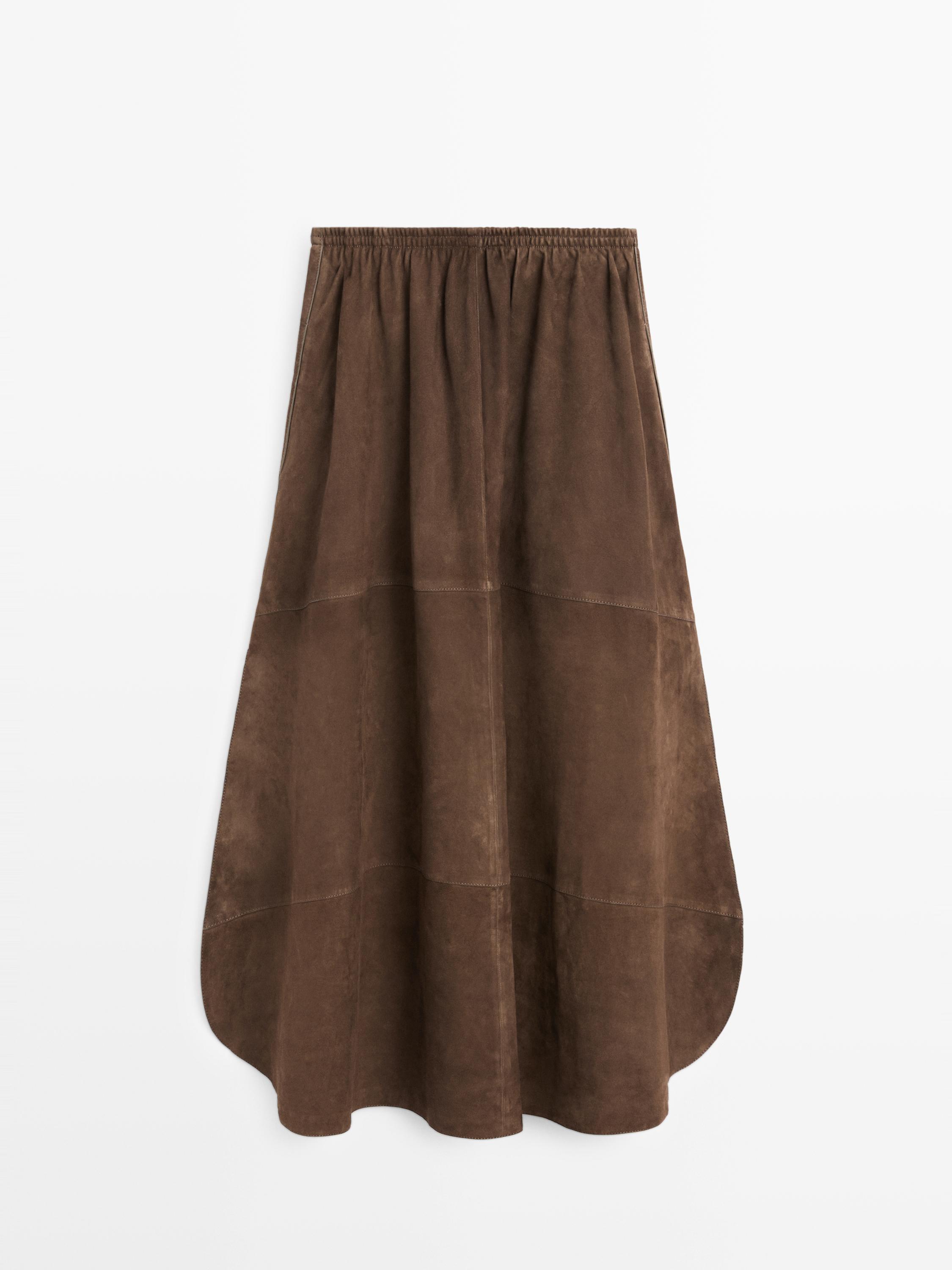 Massimo Dutti Замшевая кожаная юбка миди, коричневый