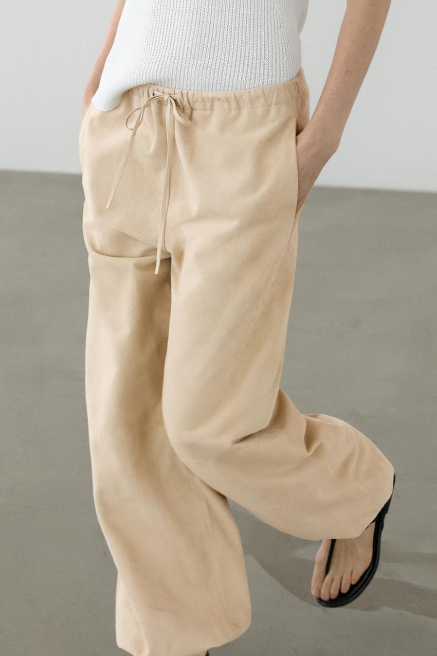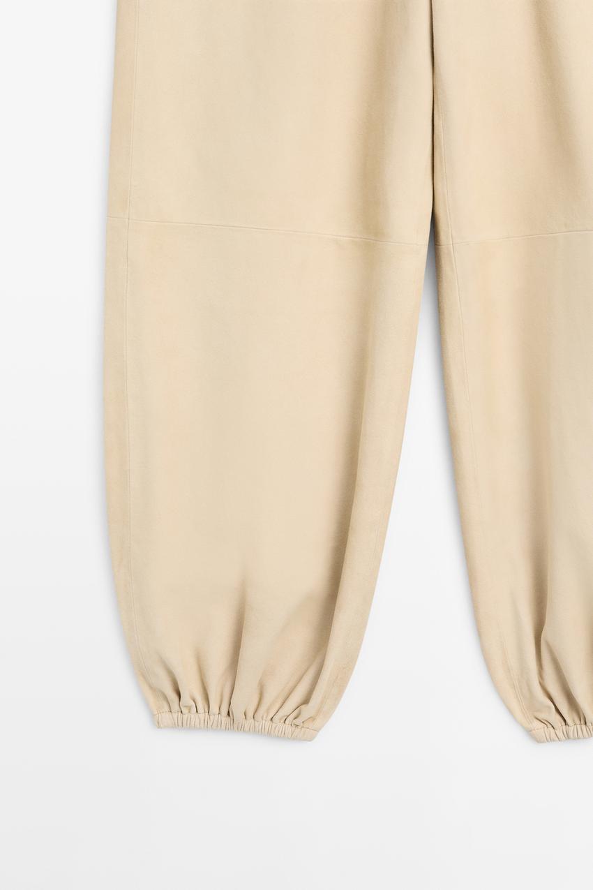 Massimo Dutti Замшевые кожаные брюки-саруэль, ванильный