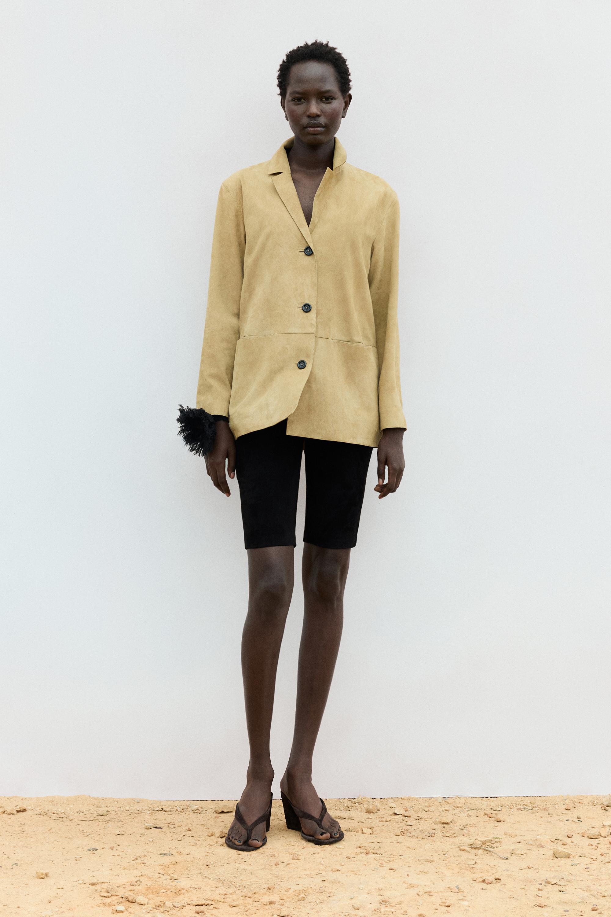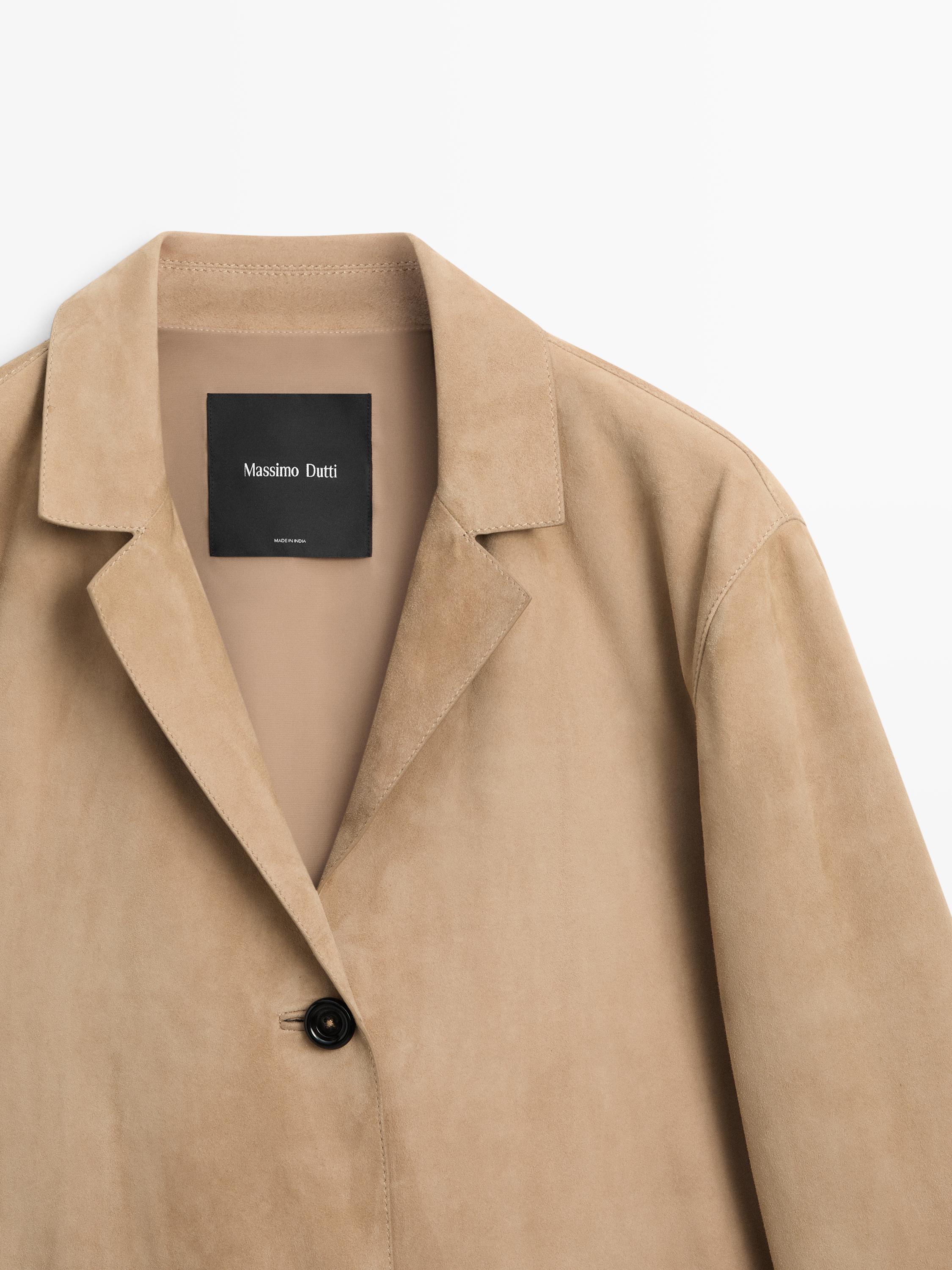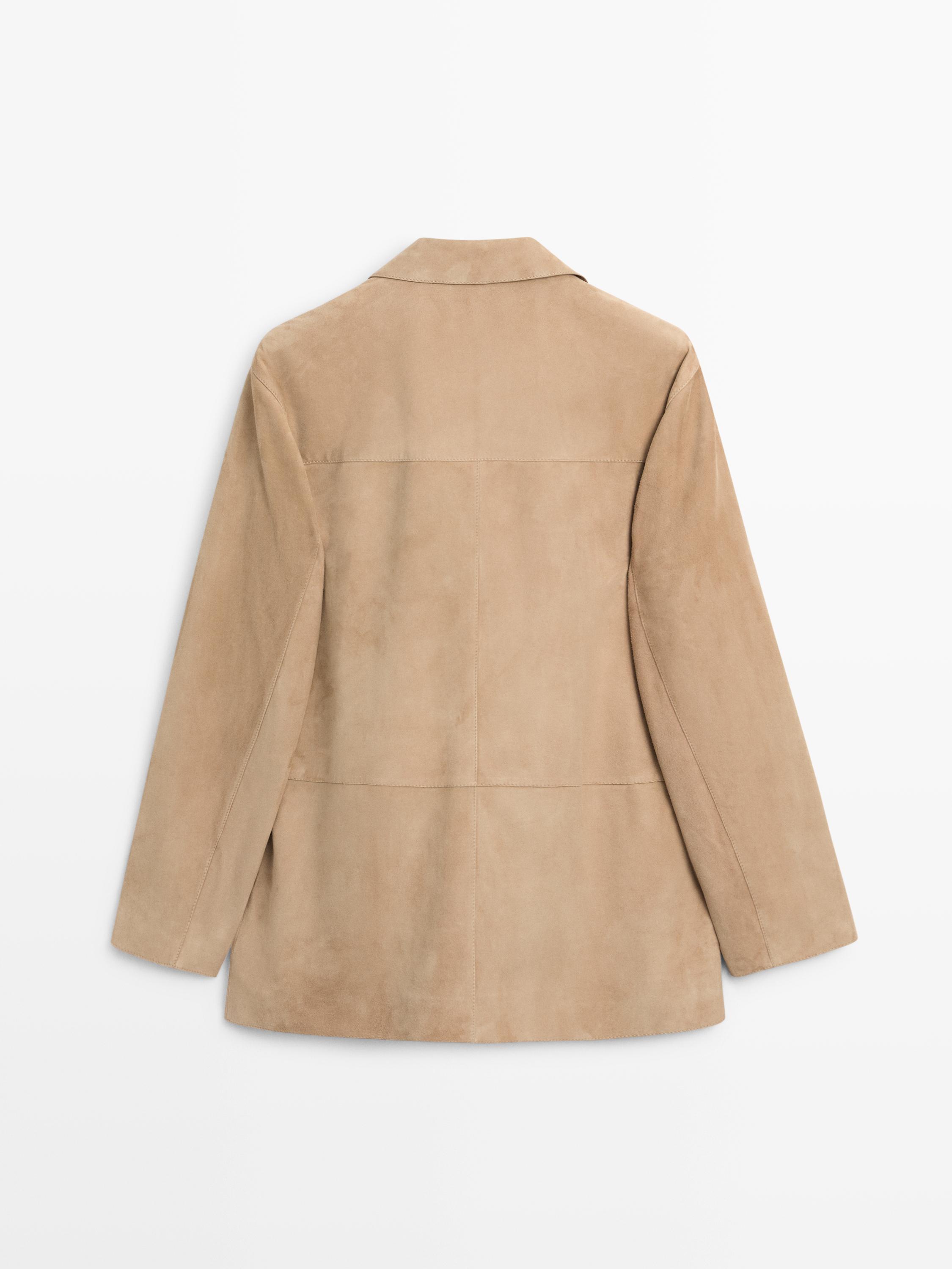 Massimo Dutti Замшевый блейзер с карманами, песочный
