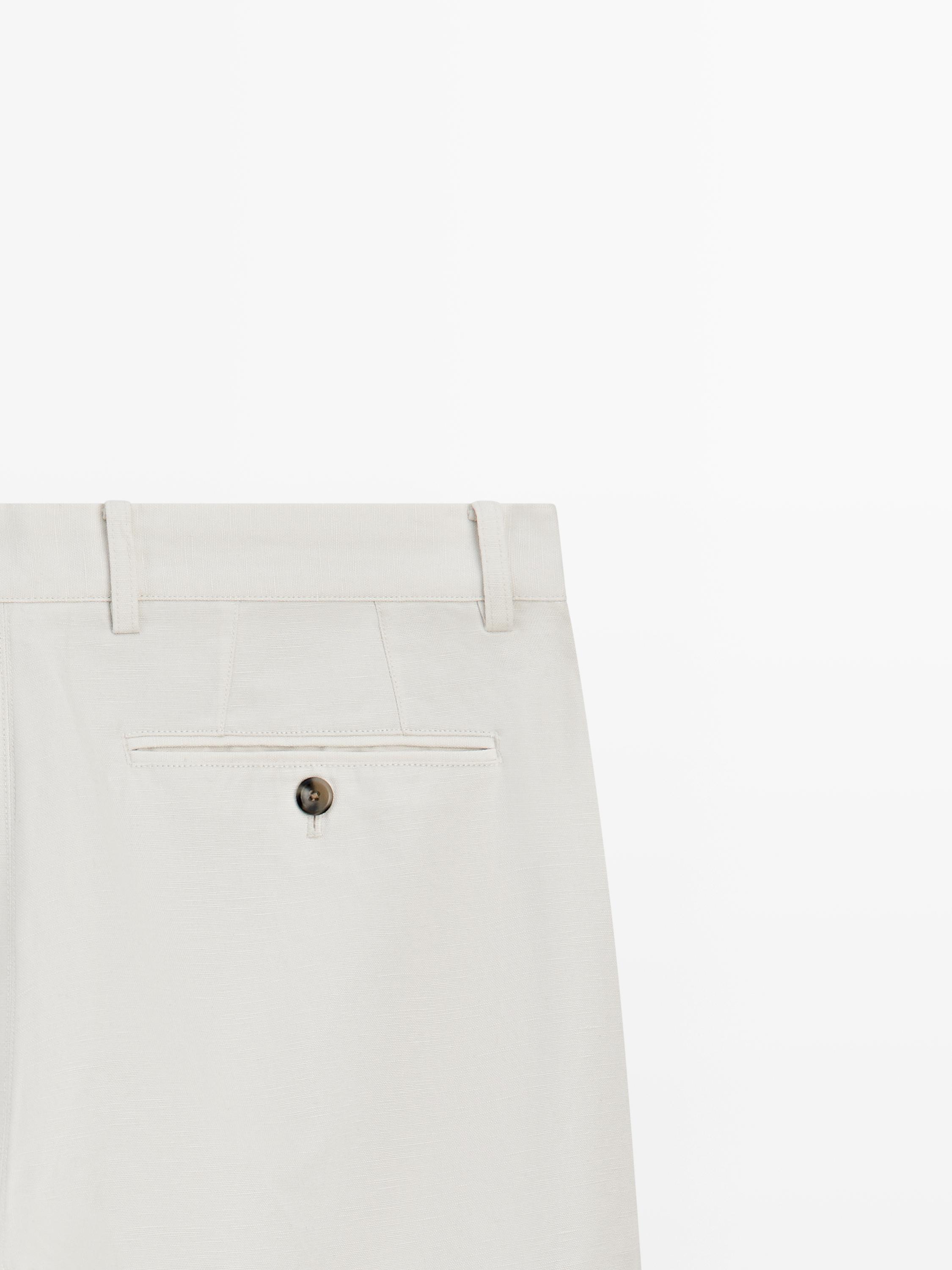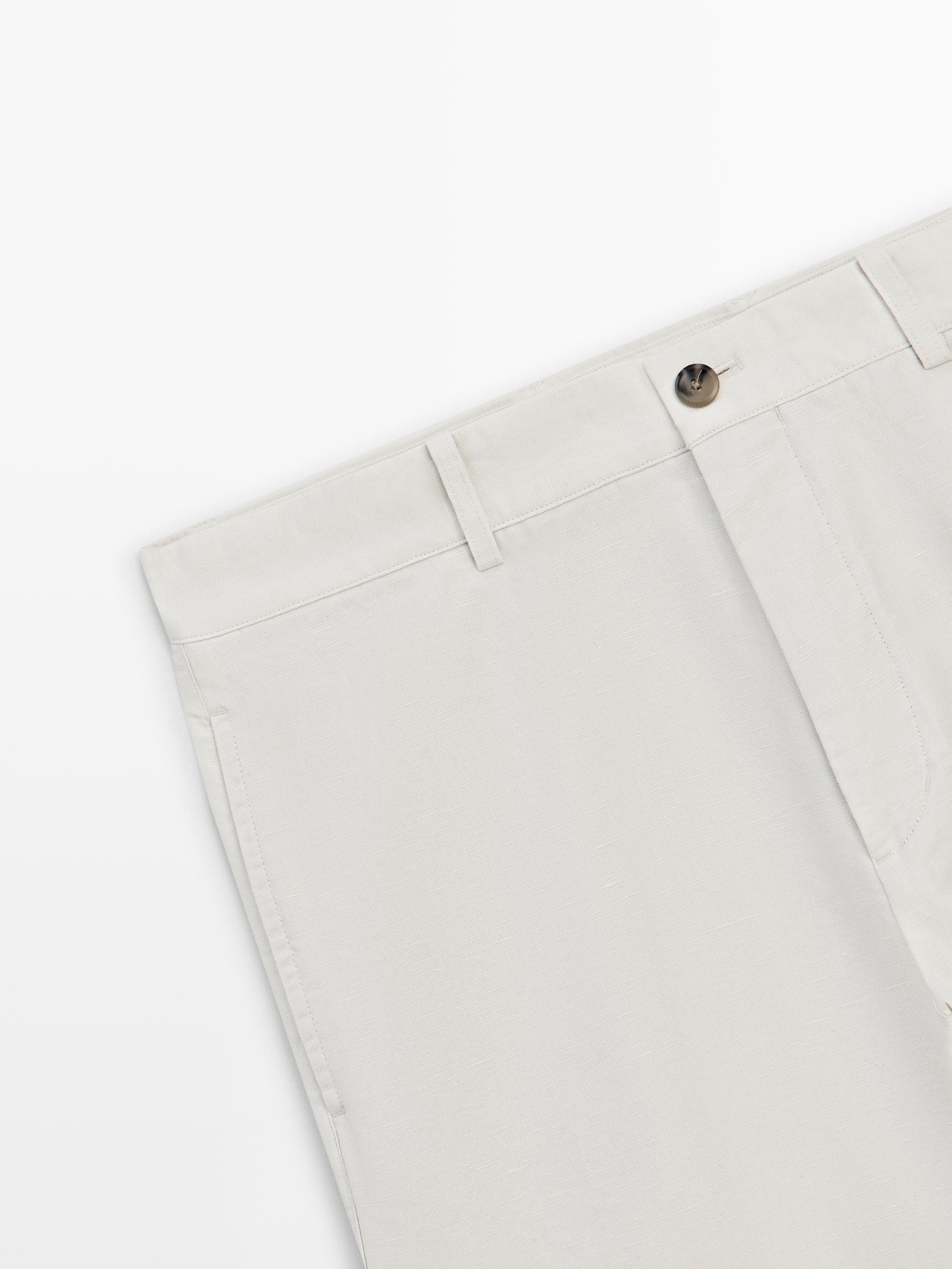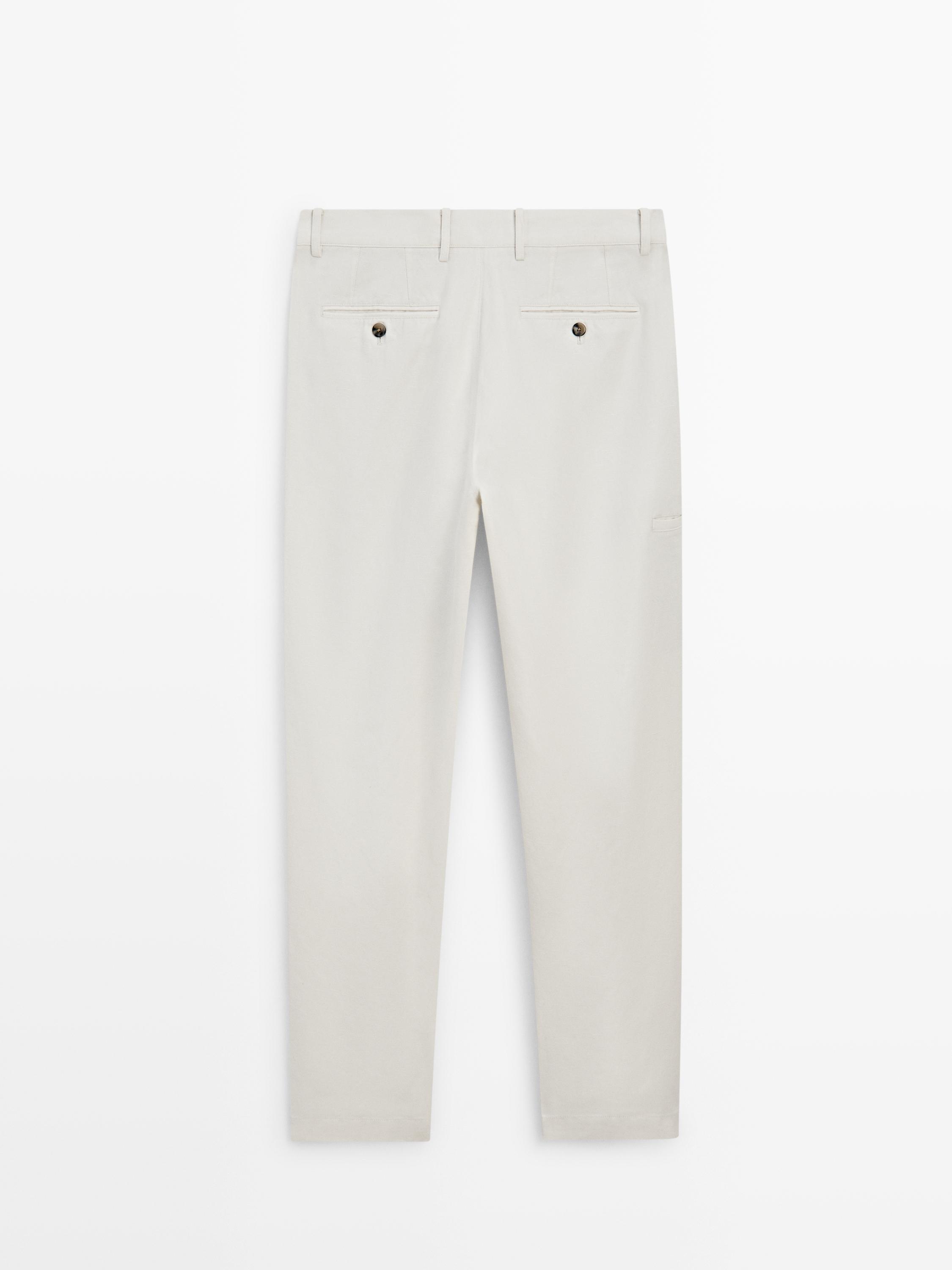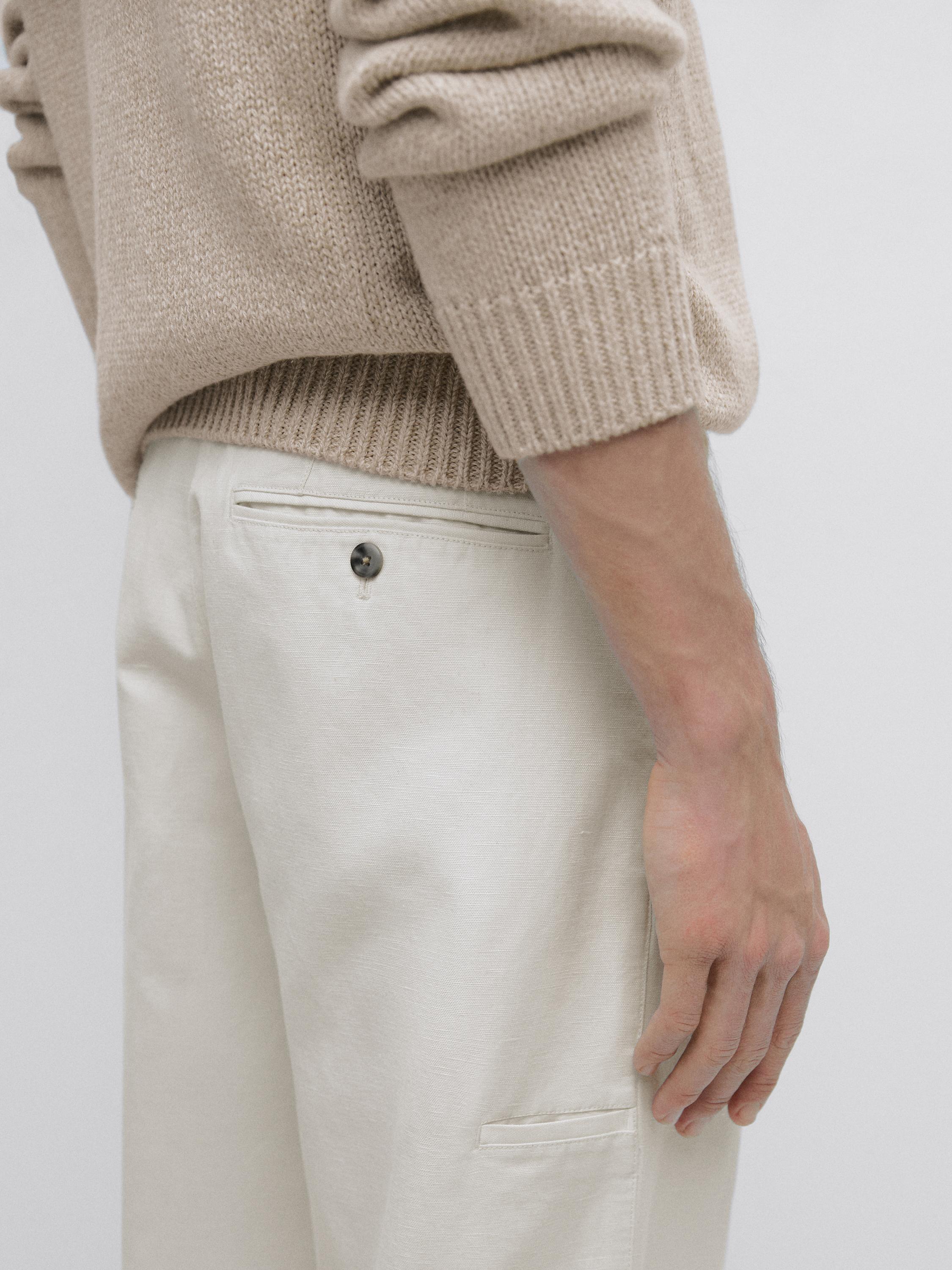 Massimo Dutti Зауженные брюки из хлопка и льна, экрю