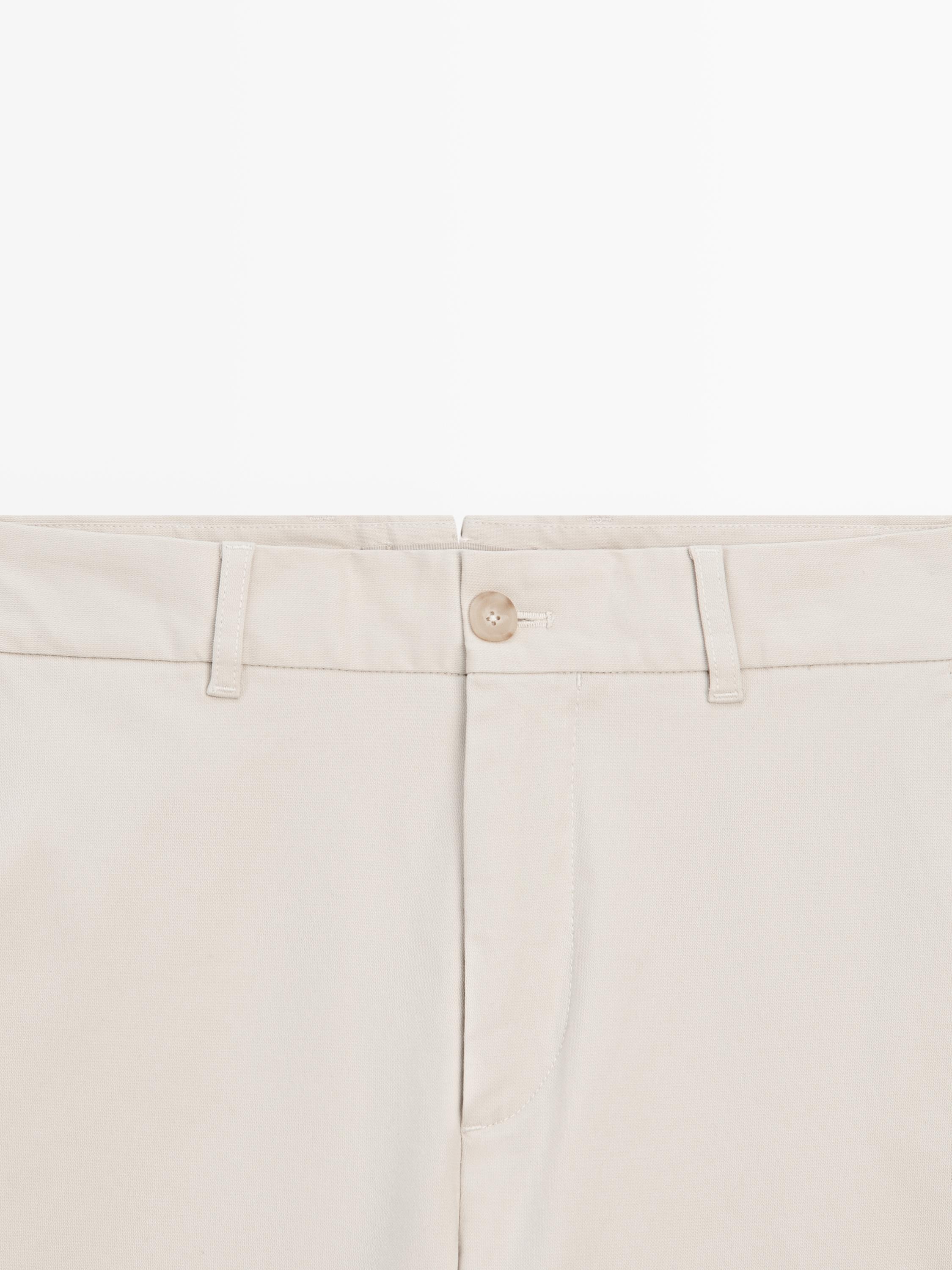 Брюки зауженного кроя: этот фасон отличается свободным кроем в талии, плавно сужающимся к щиколоткам. Пояс с петлями для ремня. Застежка-молния, скрытая планкой, пуговицей и ремешком на пуговице. Два боковых кармана. Два прорезных кармана сзади.