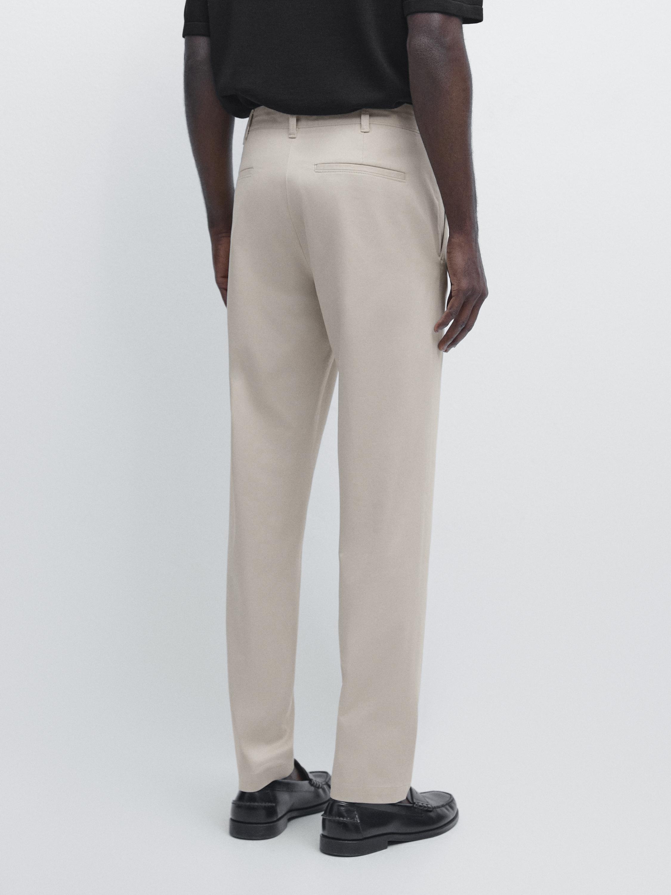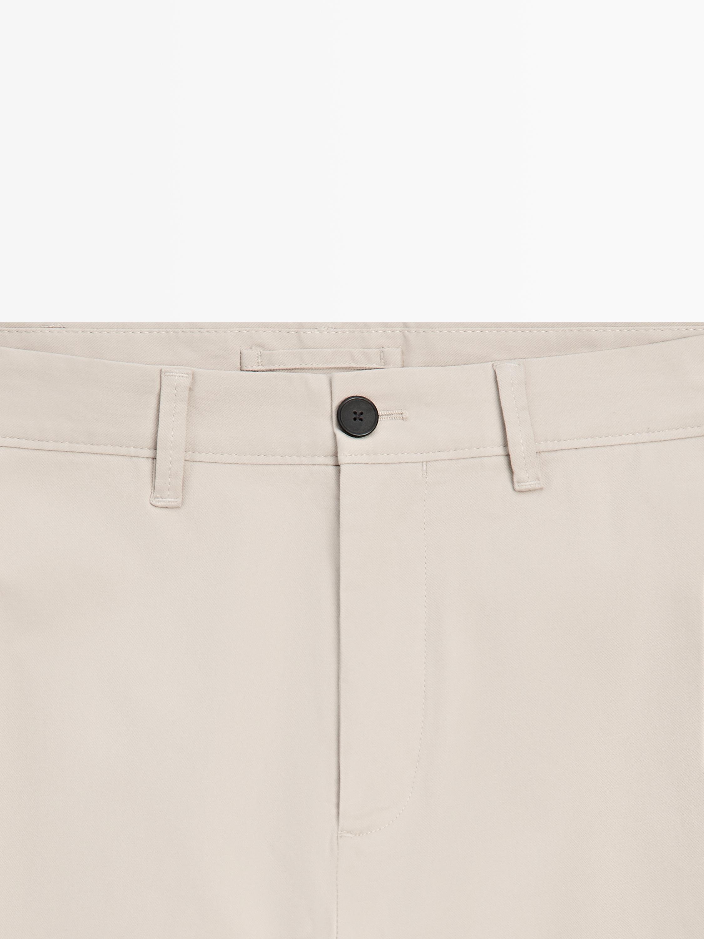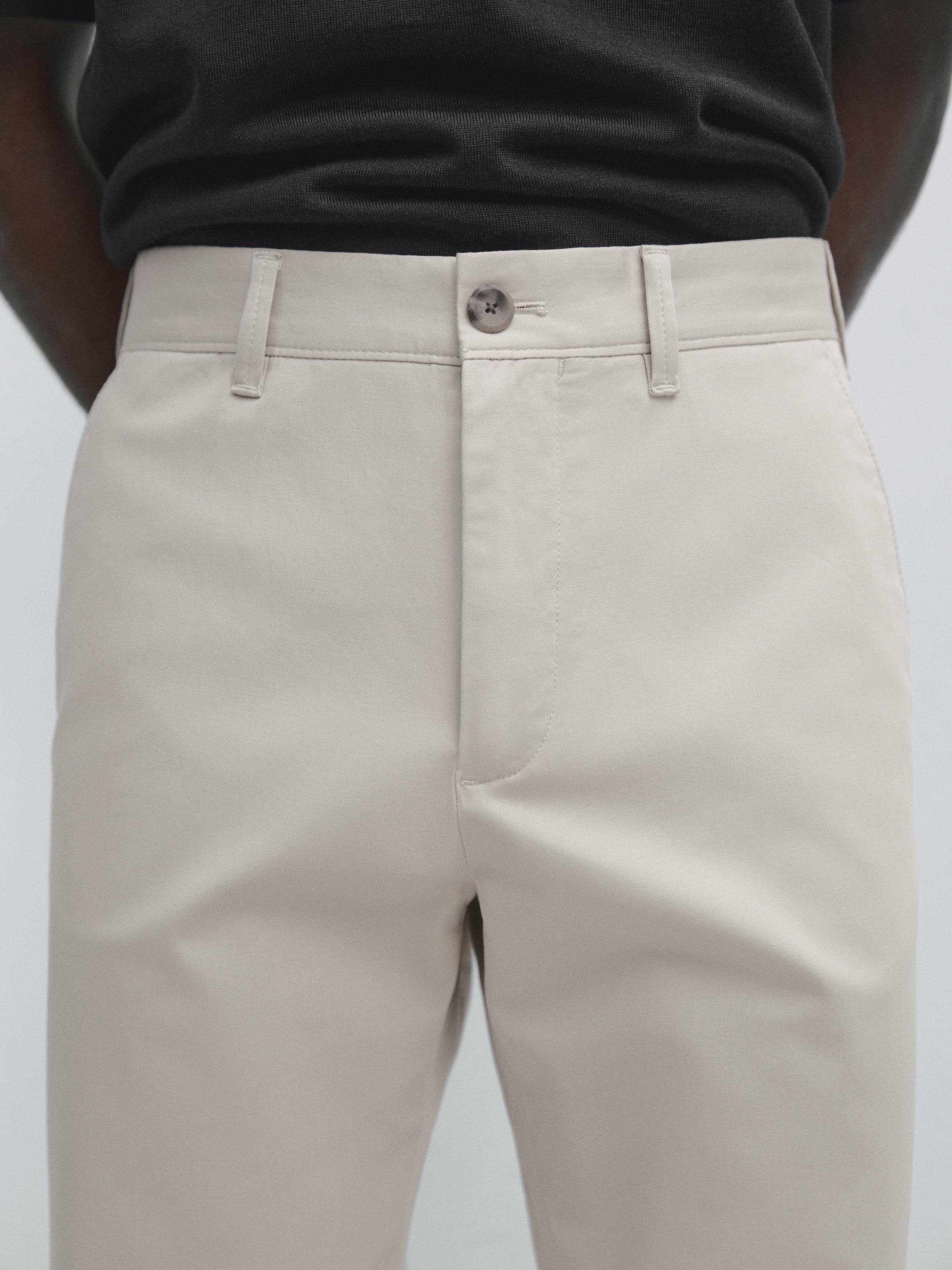 Massimo Dutti Зауженные брюки из смесовой хлопковой ткани, бежевый