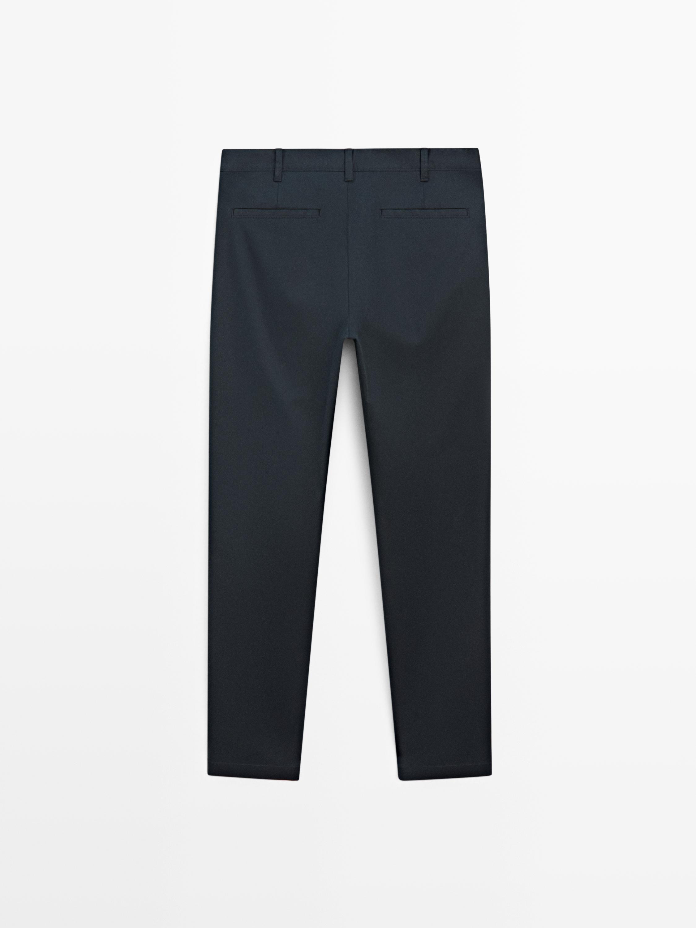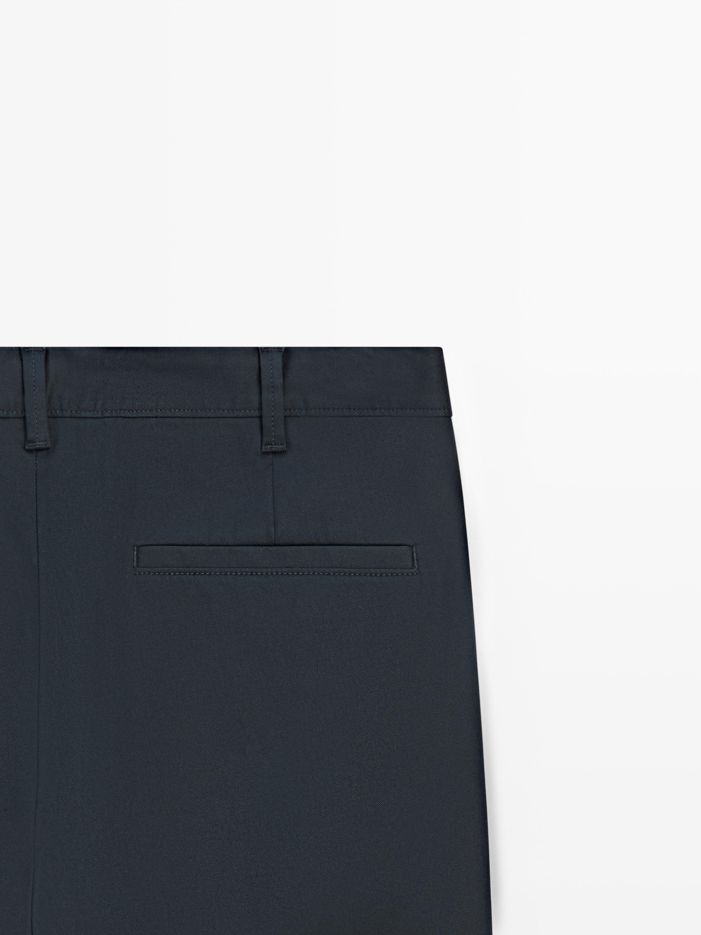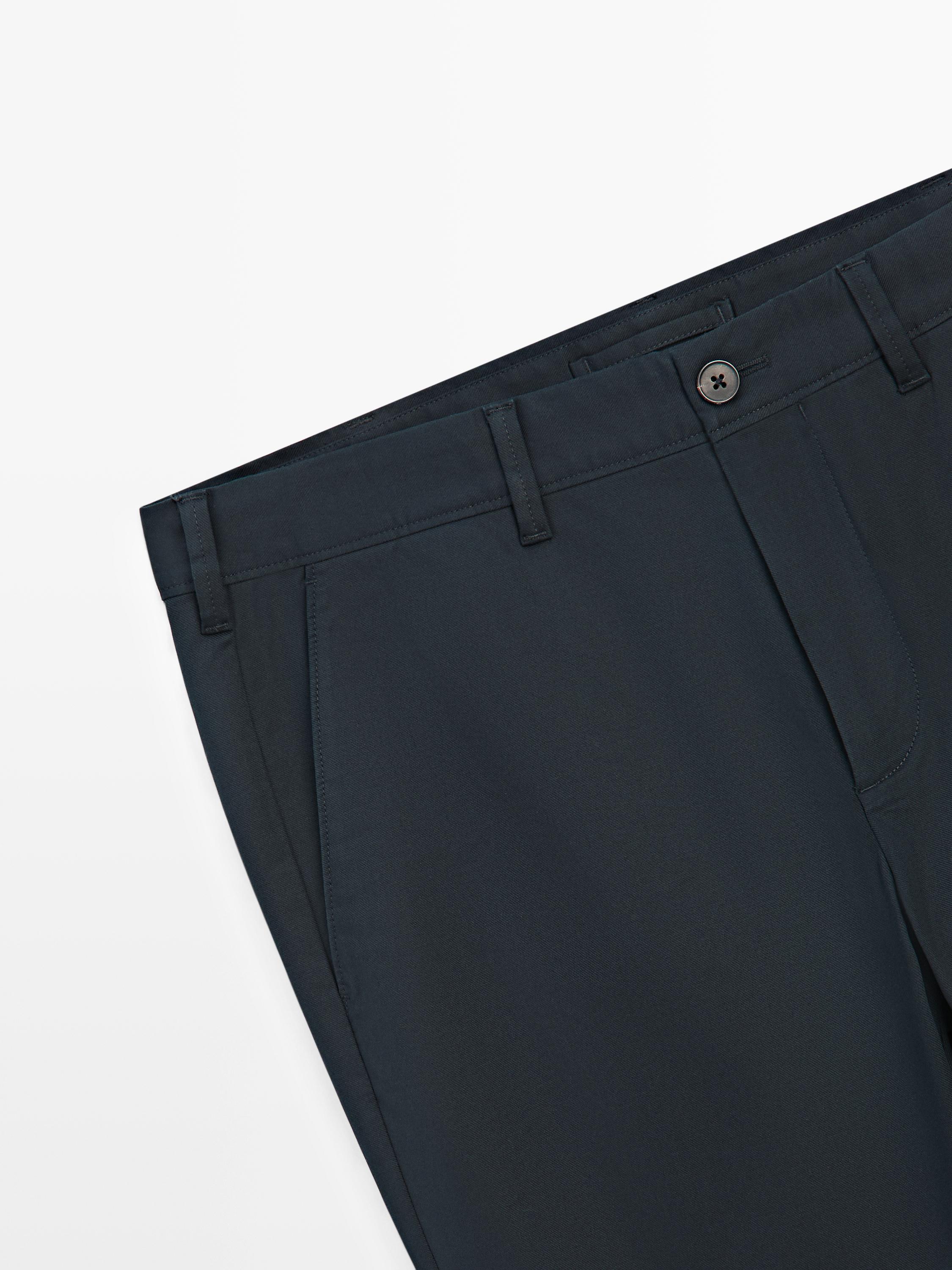 Massimo Dutti Зауженные брюки из смесовой хлопковой ткани, темно-синий