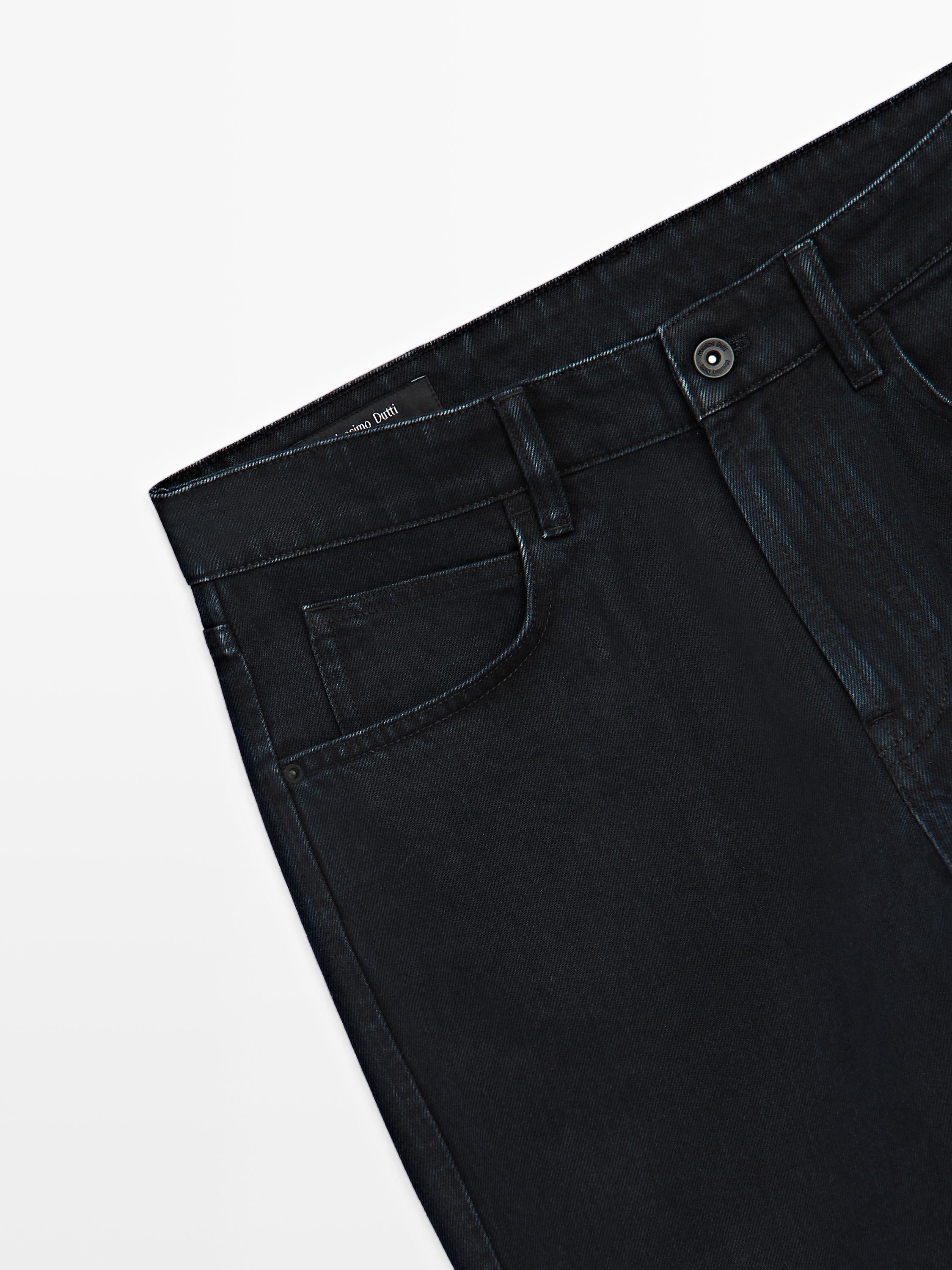 Джинсы Tapered Fit: свободный крой в области талии, плавно сужающийся к щиколоткам. Застёжка на молнию и пуговицу сверху спереди. Пять карманов.