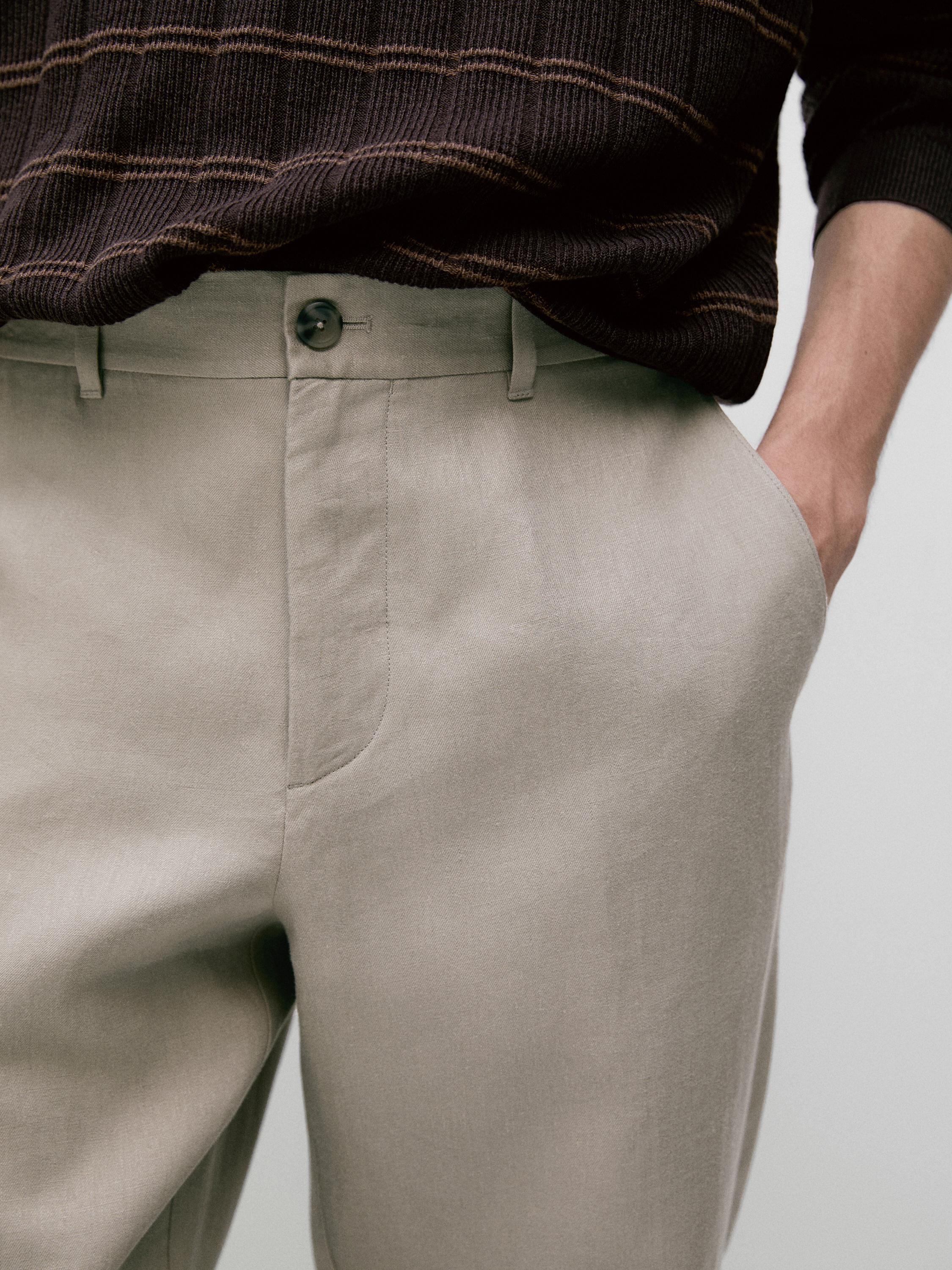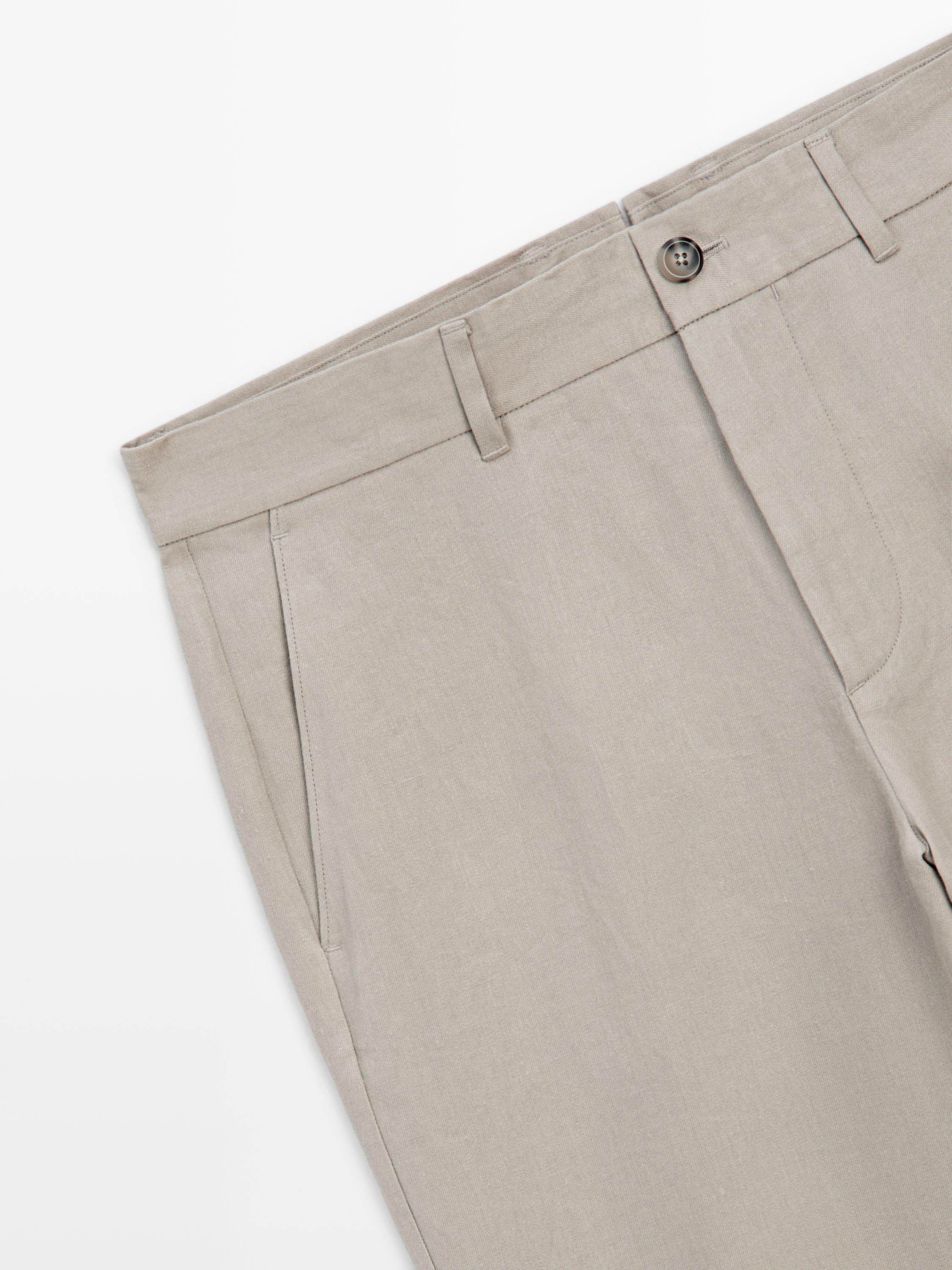 Massimo Dutti Зауженные льняные брюки, бежевый