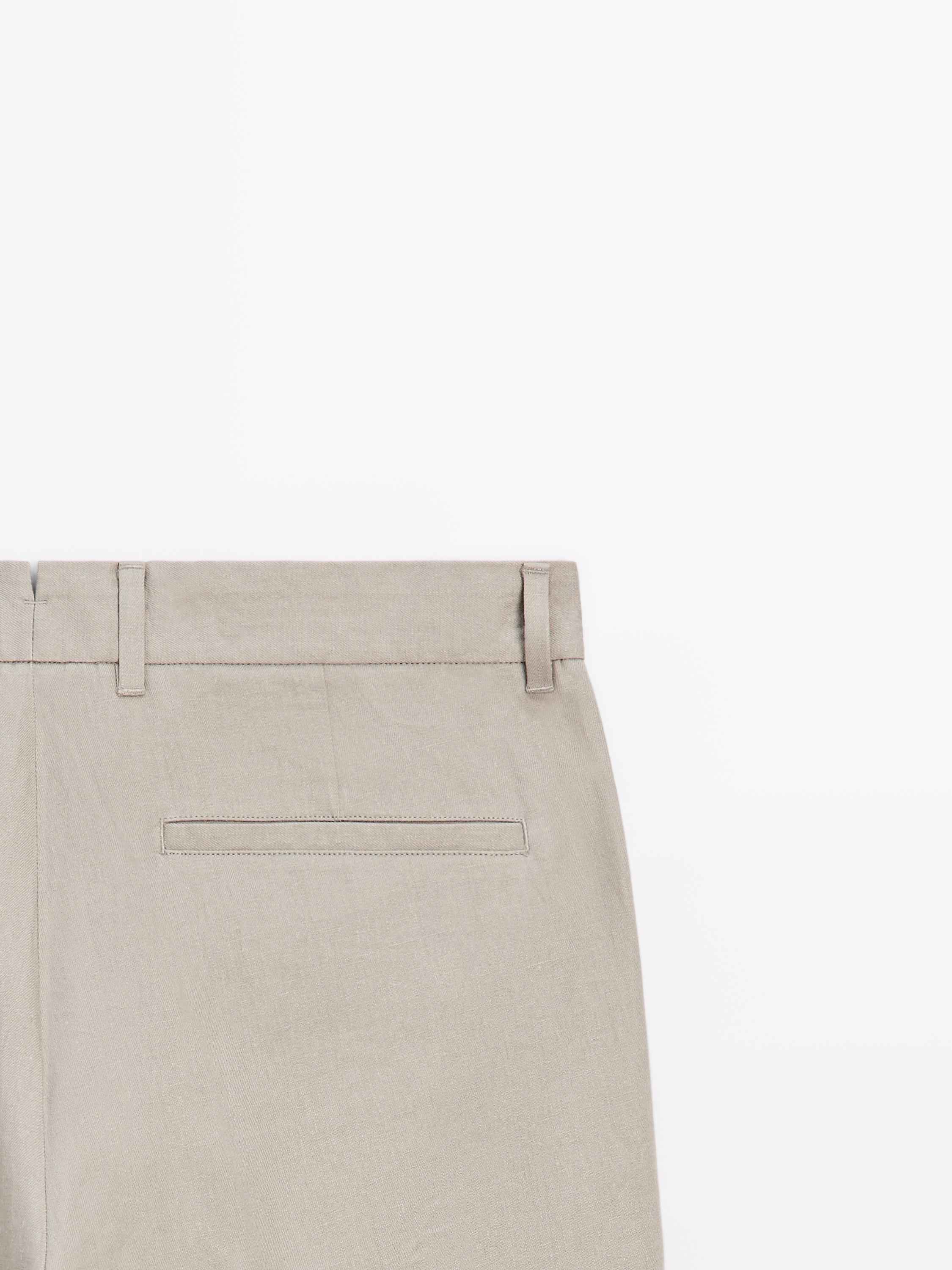 Брюки из льна. Пояс с петлями для ремня. Два боковых кармана. Два прорезных кармана сзади.