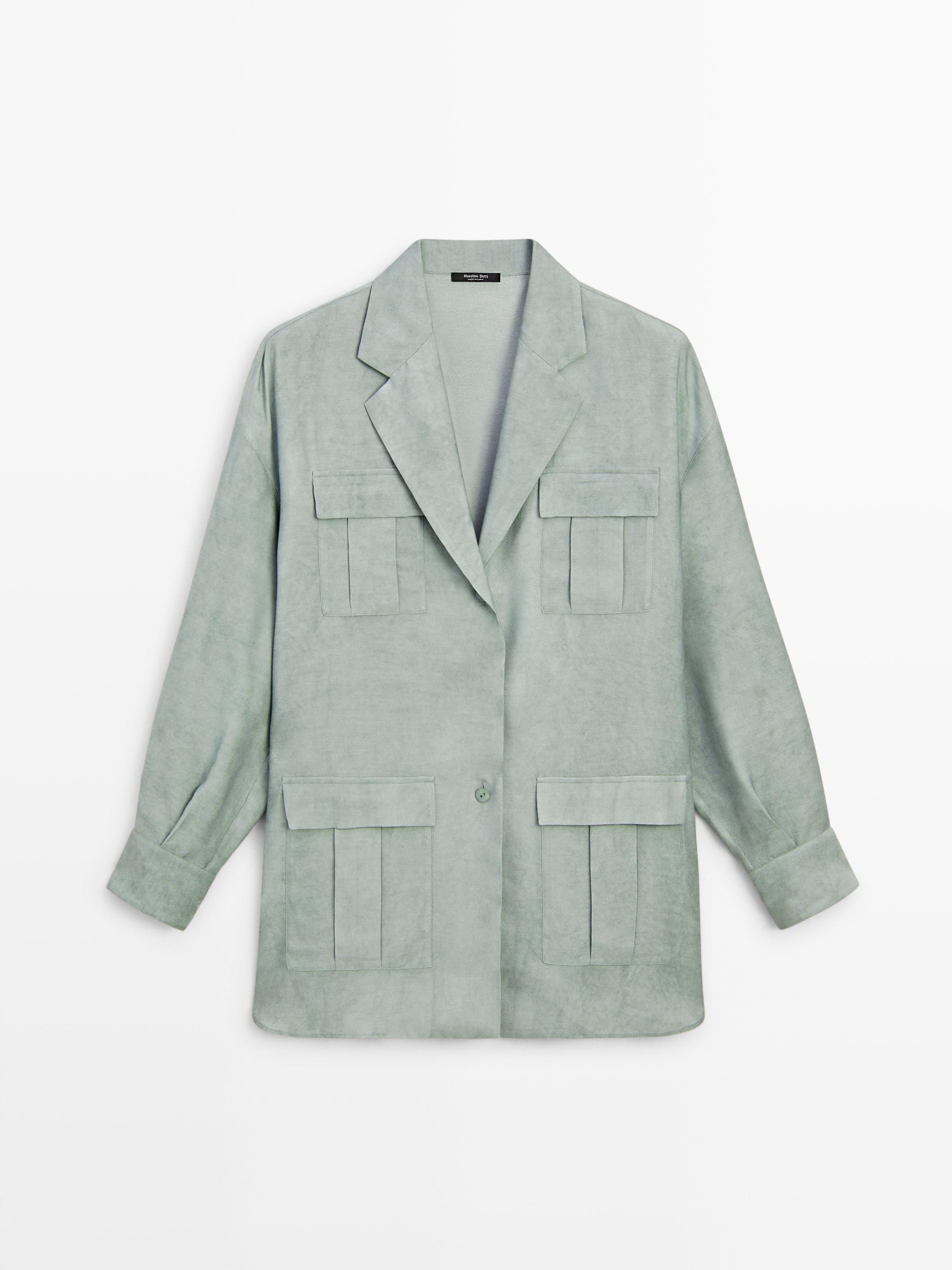 Massimo Dutti Жакет с карманами, фисташково-зеленый