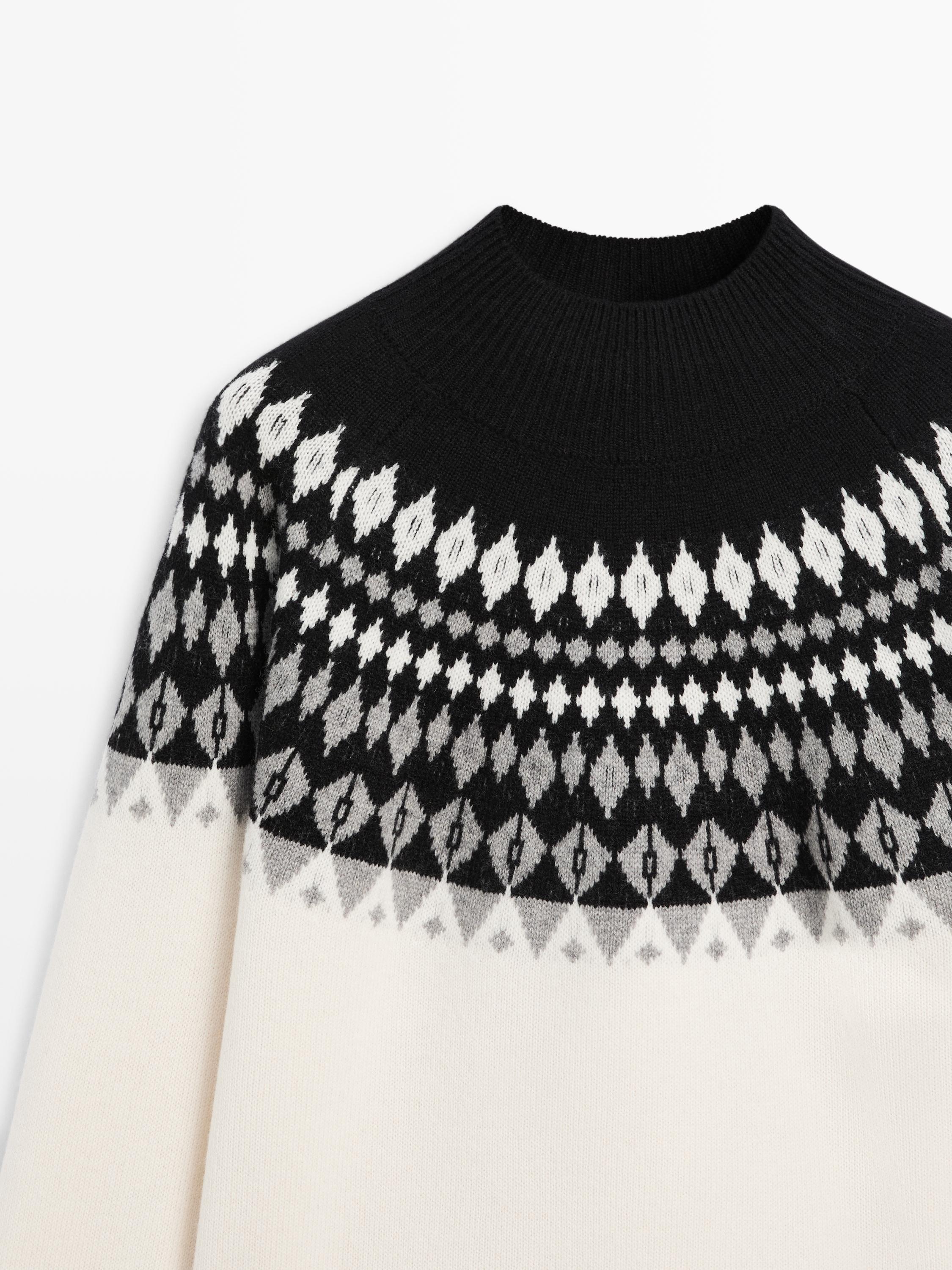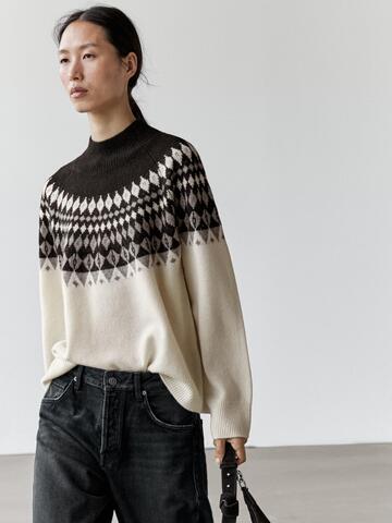 Massimo Dutti Жаккардовый трикотажный свитер из смесовой шерсти, натуральный, кремовый