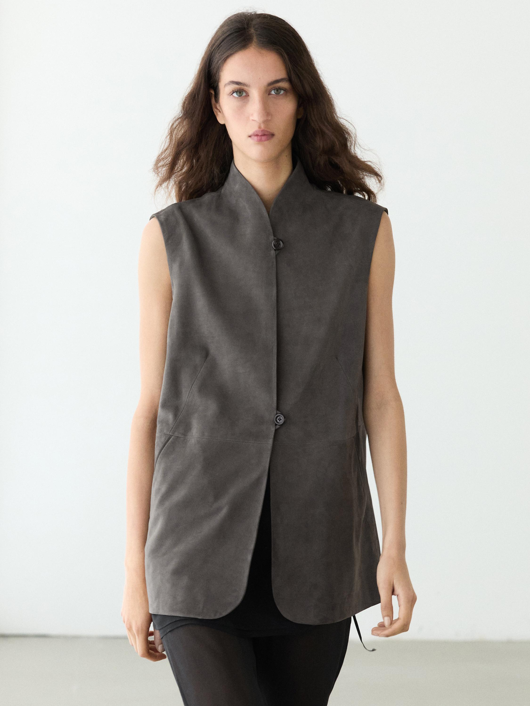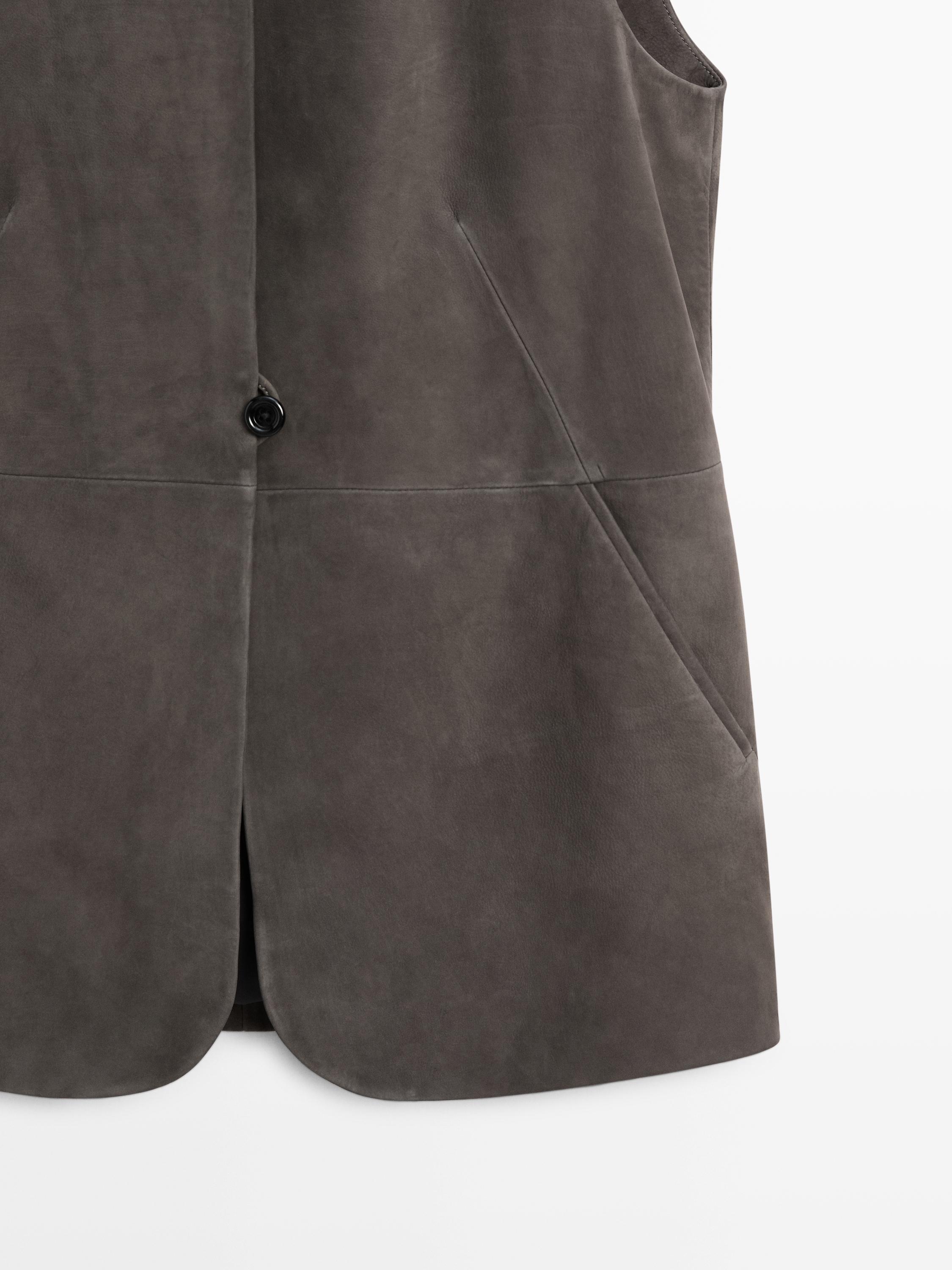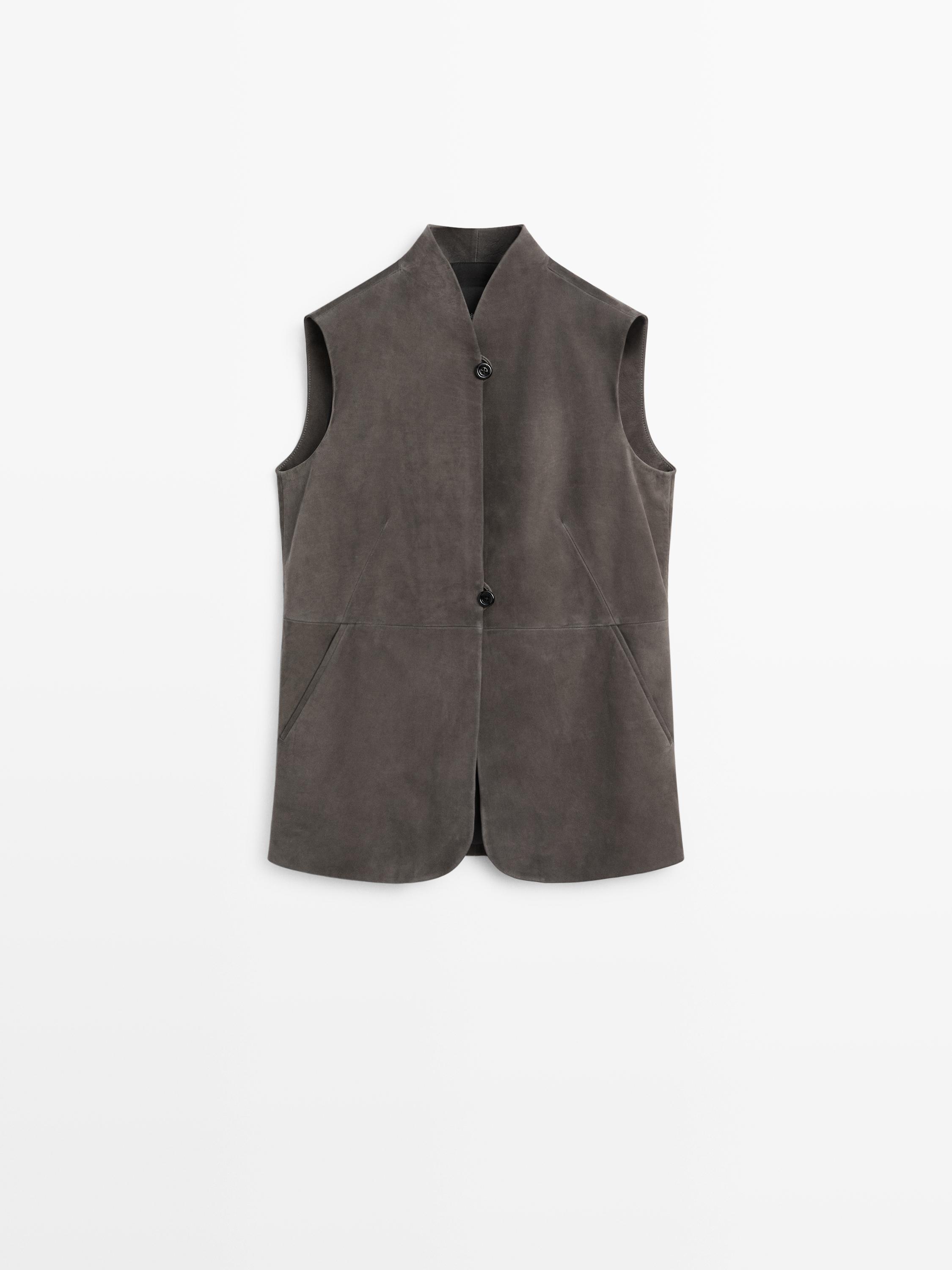 Massimo Dutti Жилет из кожи с бархатистой отделкой, кротово-коричневый