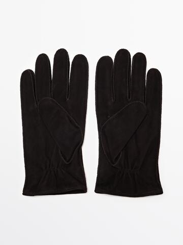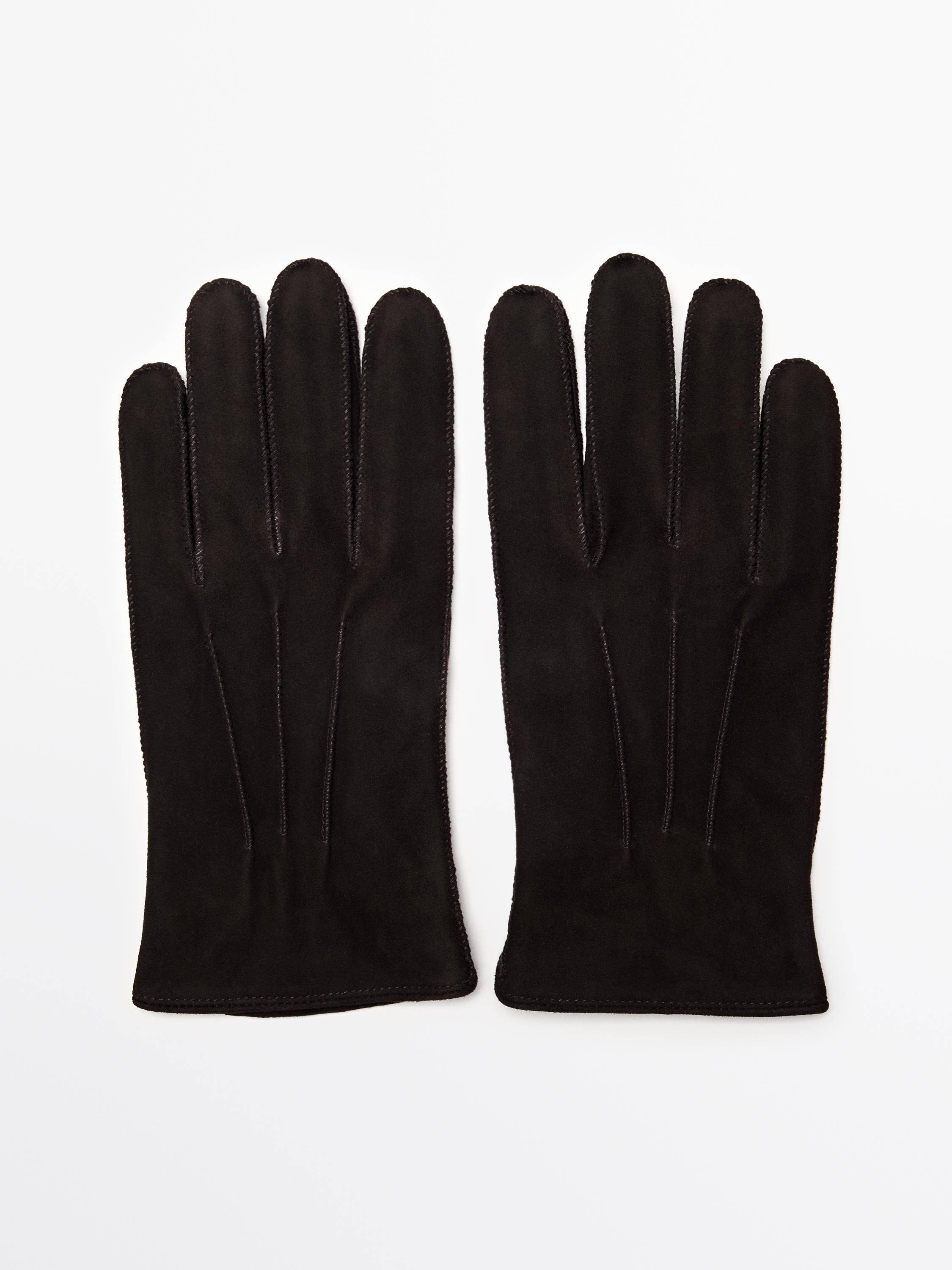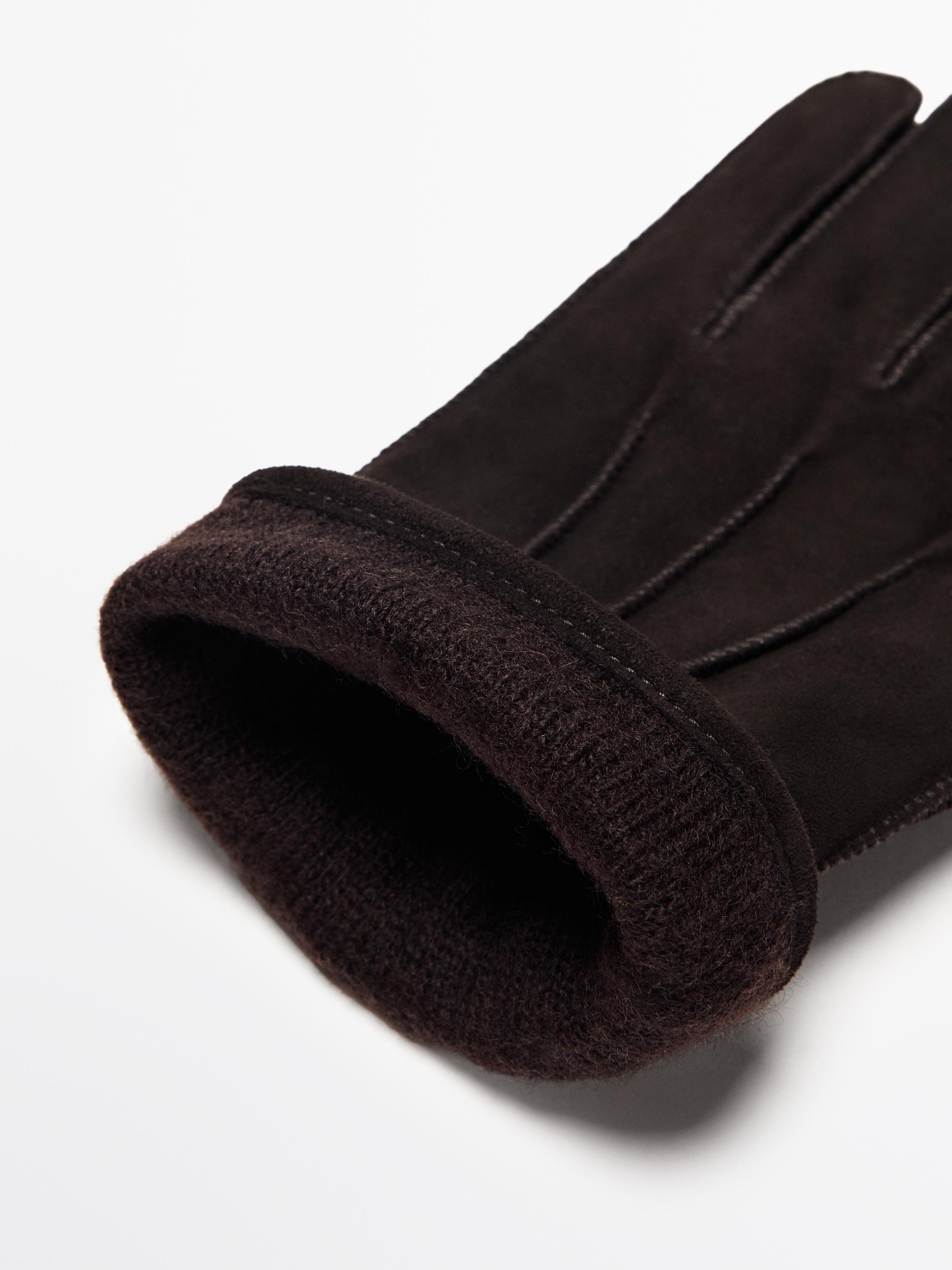 Massimo Dutti Перчатки из козьей кожи с замшевой выделкой, коричневый