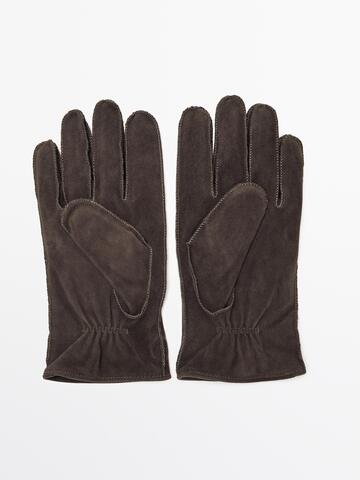 Massimo Dutti Перчатки из козьей кожи с замшевой выделкой, серый
