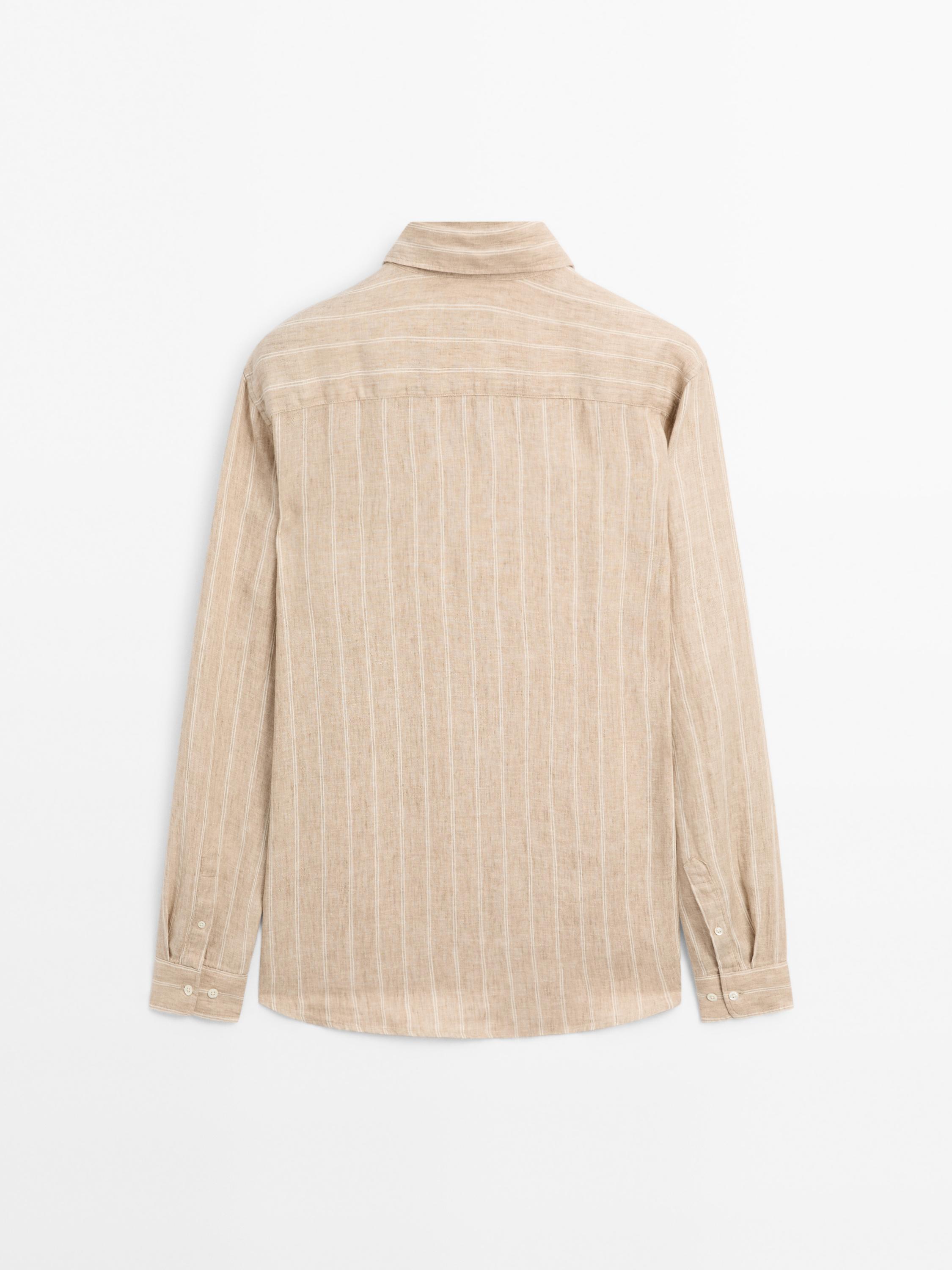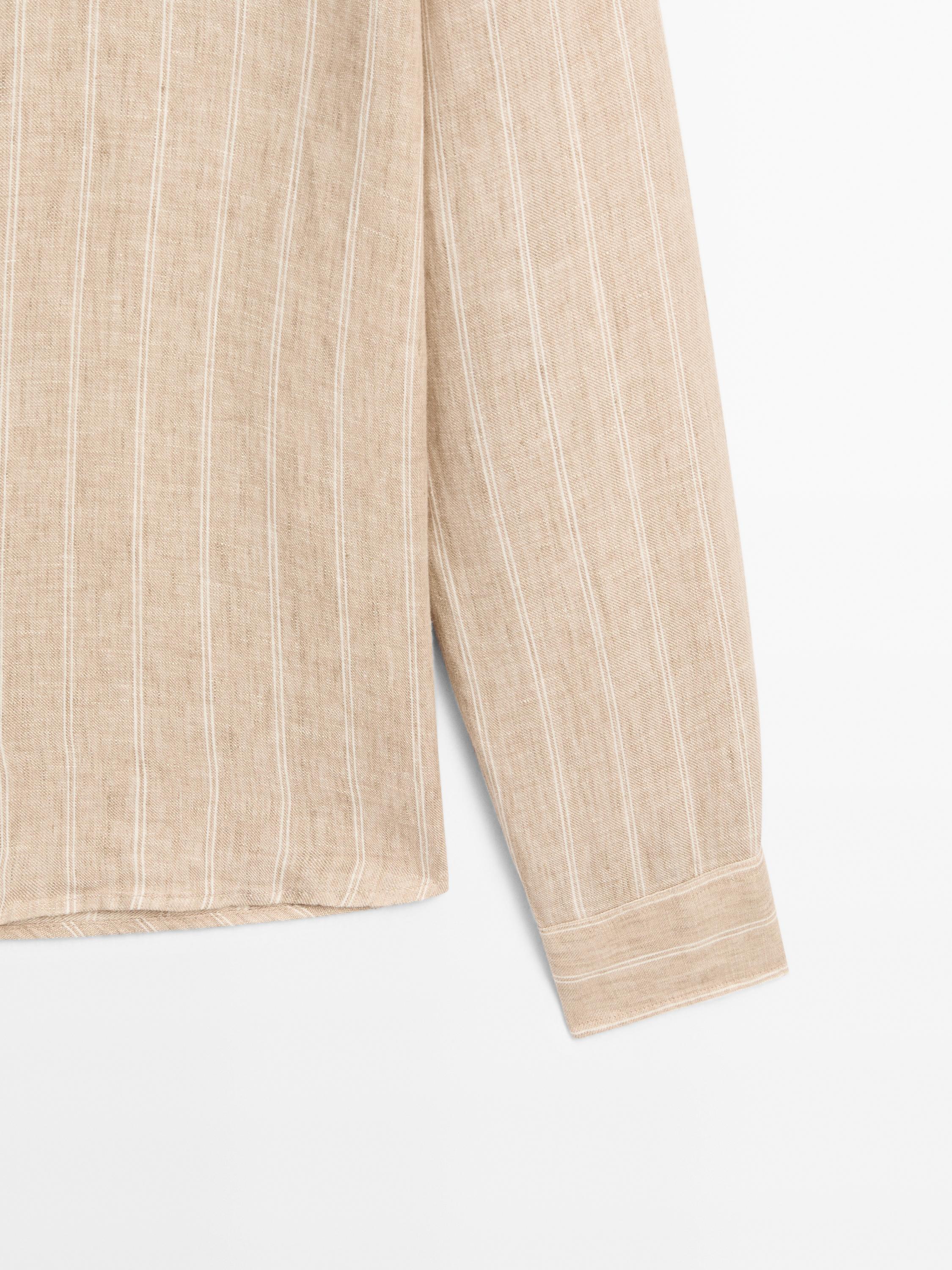 Massimo Dutti Рубашка прямого кроя в двойную полоску, светло-бежевый