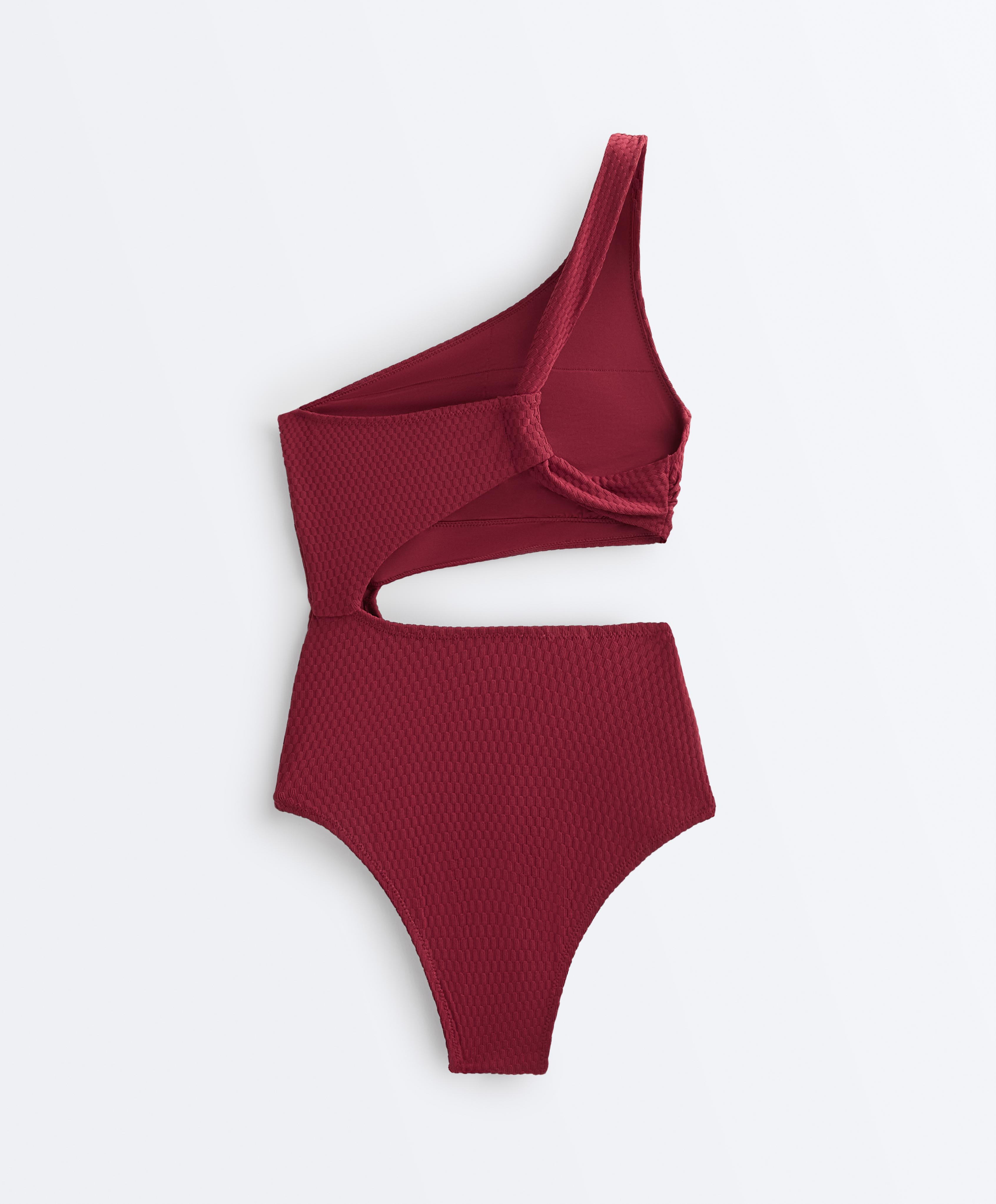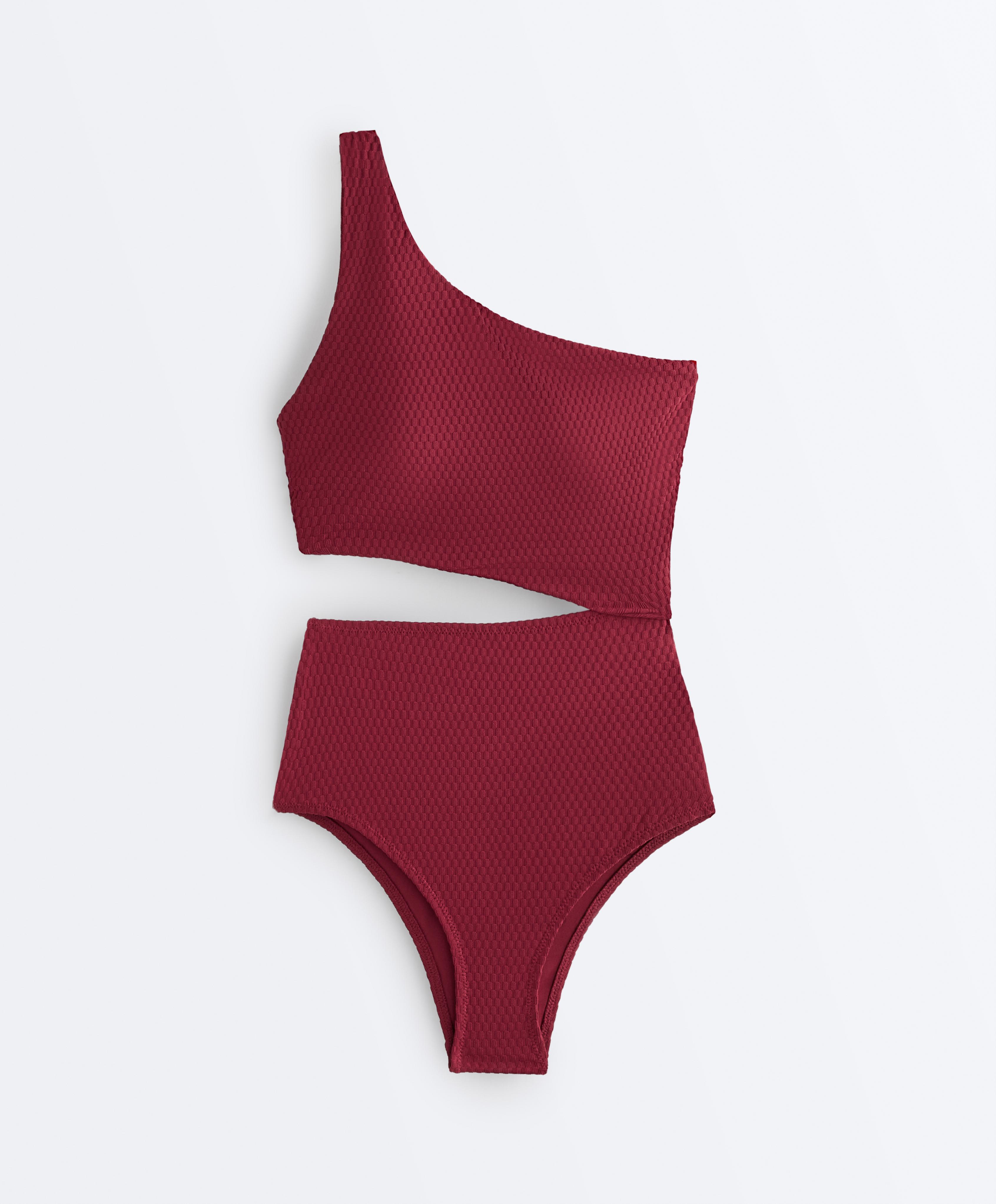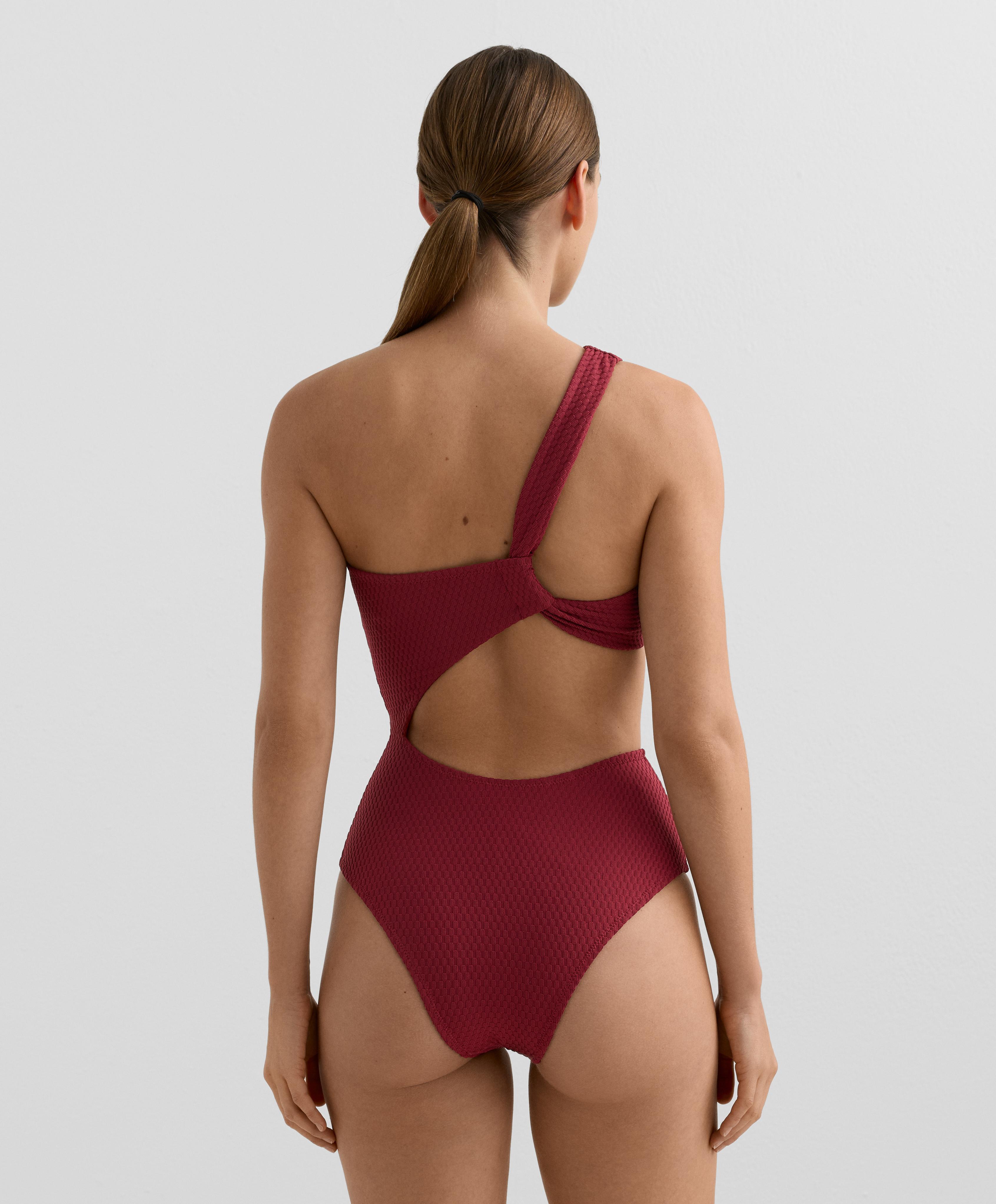 OYSHO Асимметричный купальник с жаккардовым узором, сливовый