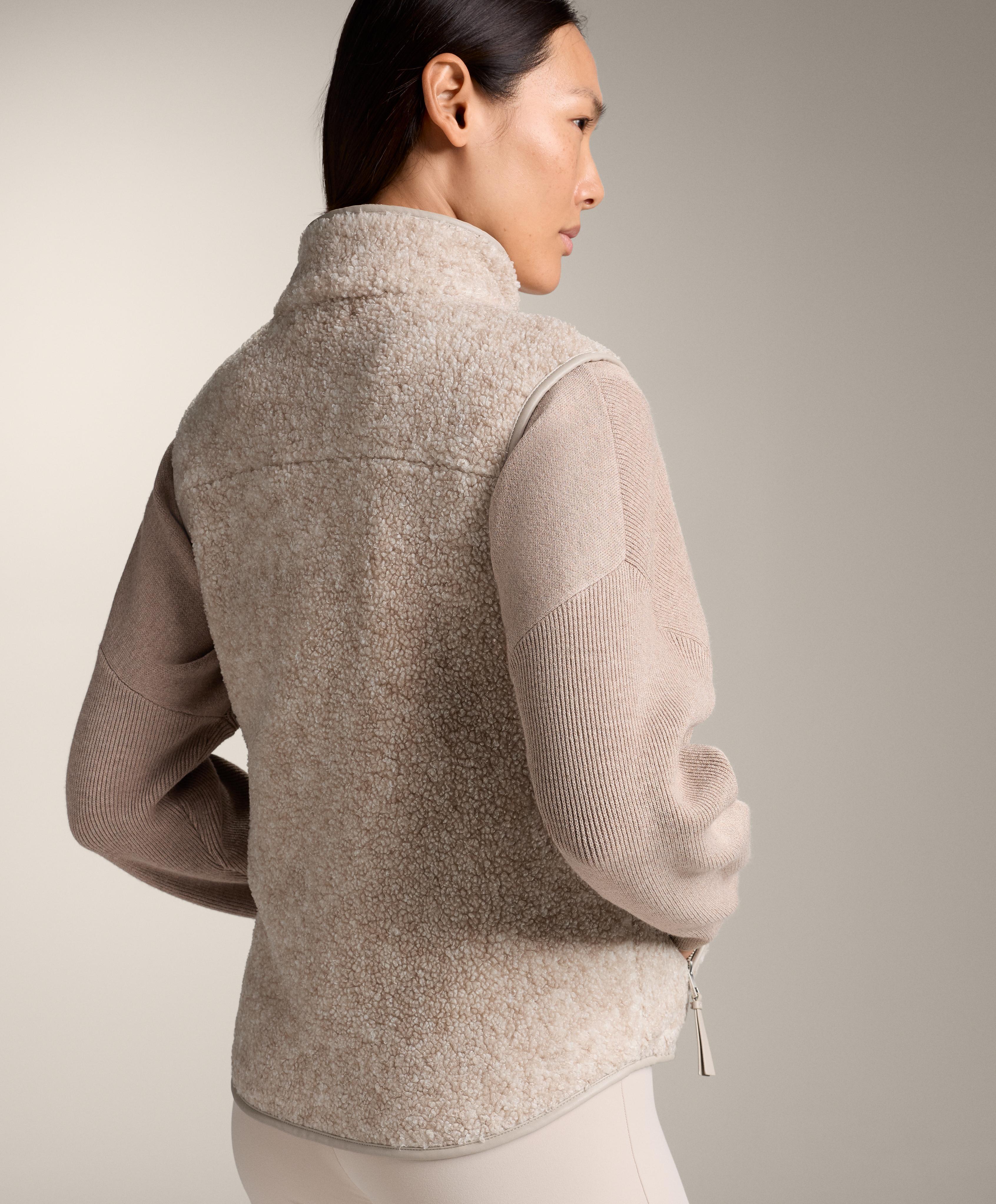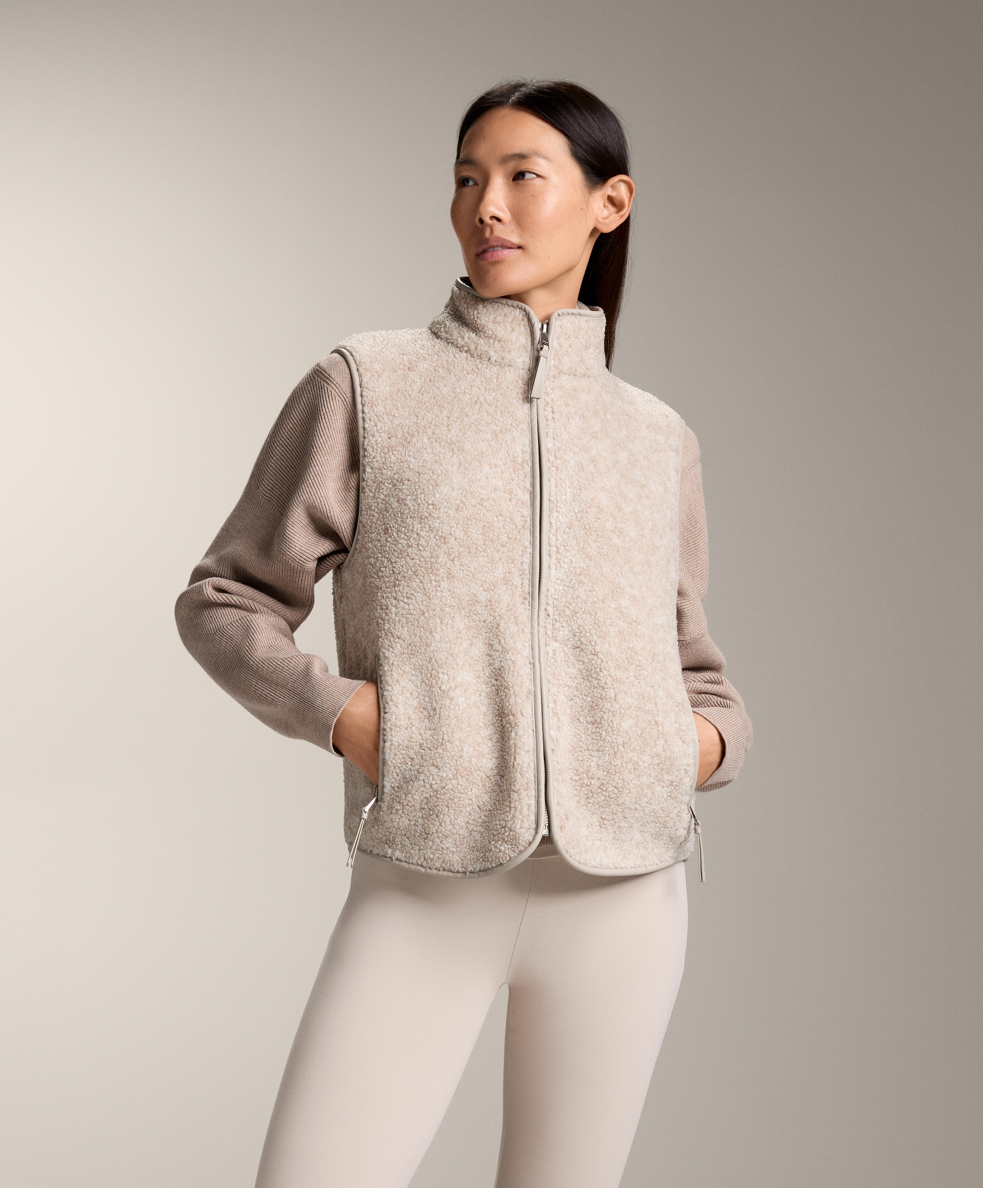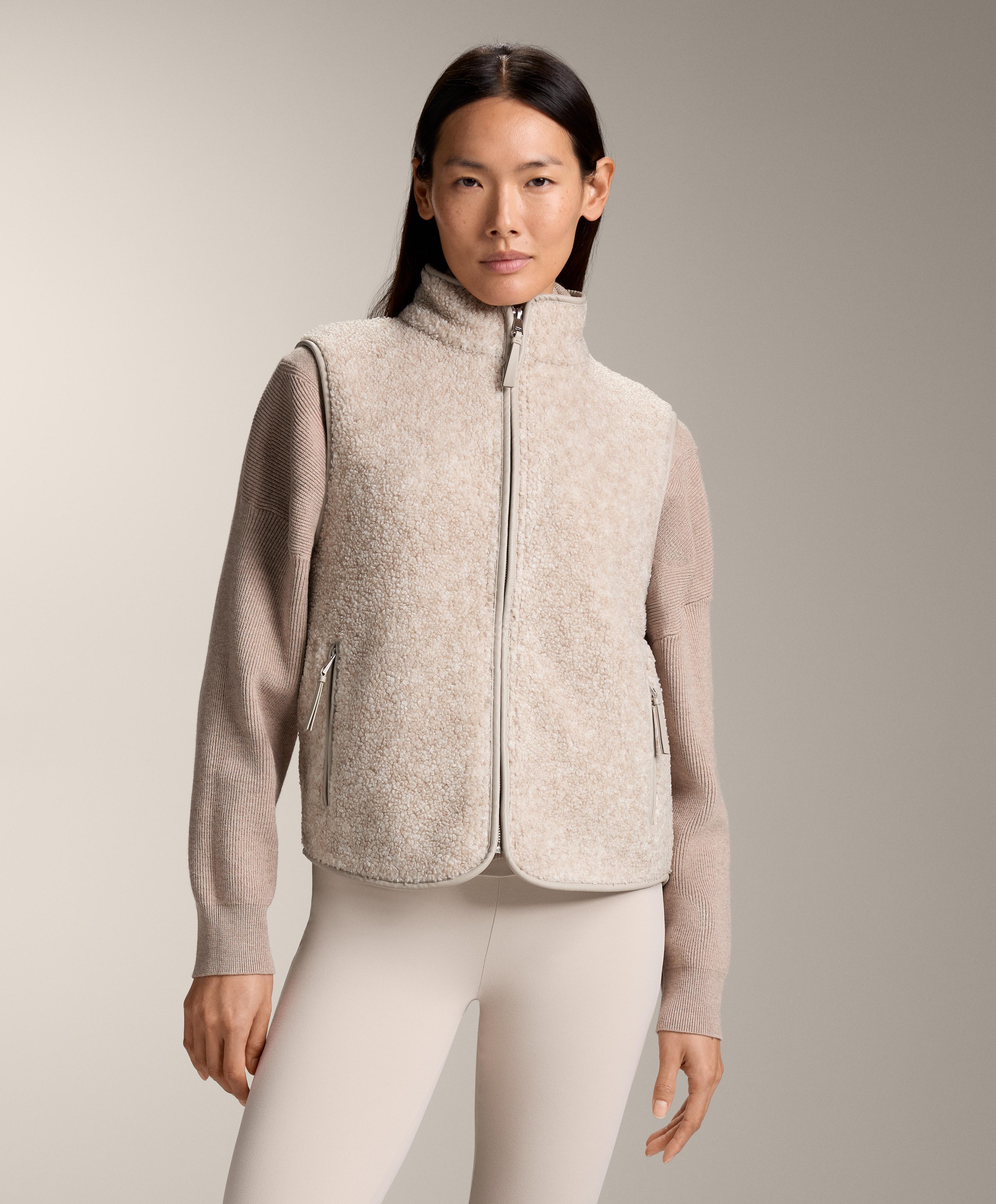 Базовый жилет из искусственной овчины с дышащей, высокопрочной тканью и начёсанным внутренним слоем. Застёжка-молния спереди и боковые карманы на молнии.