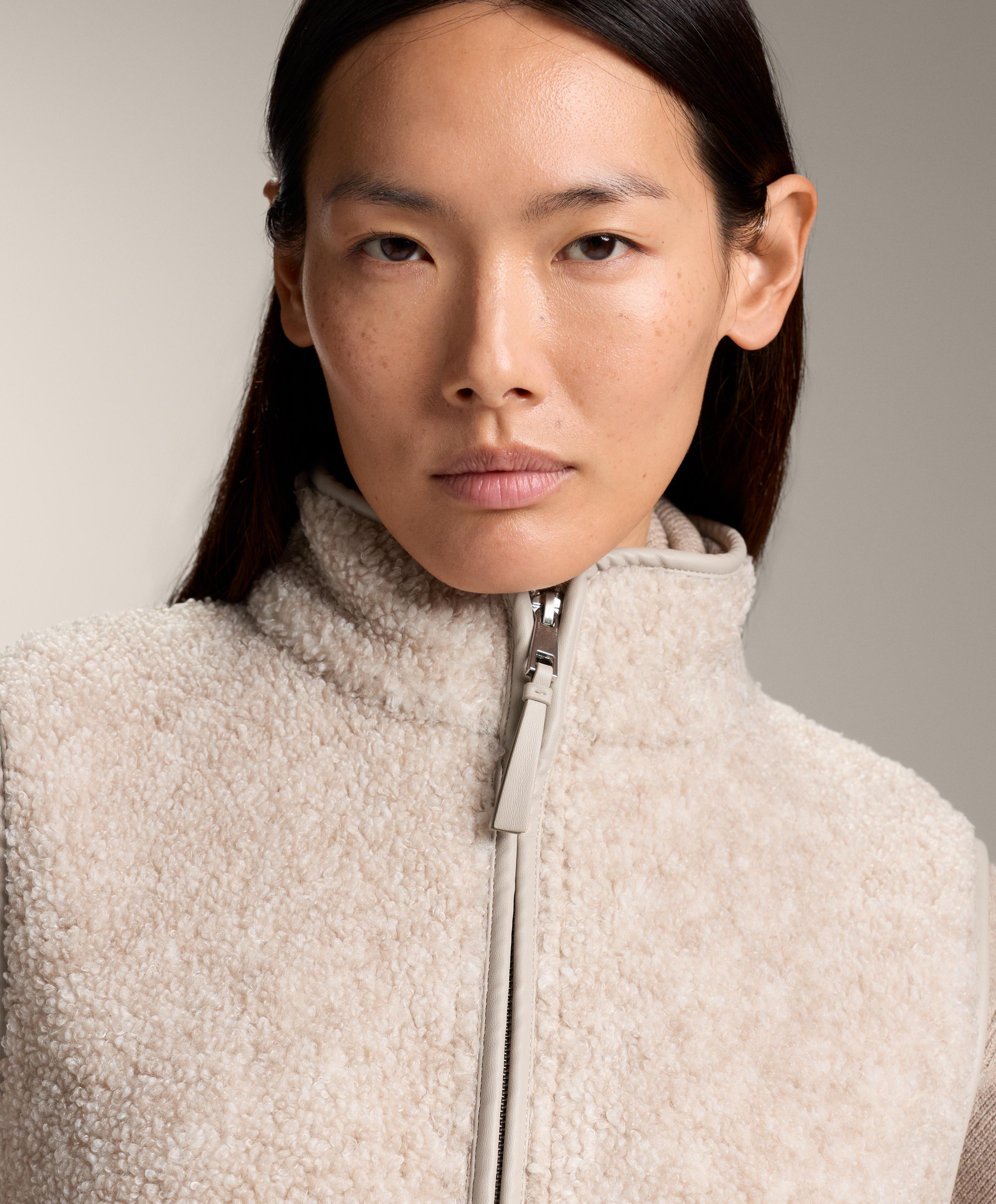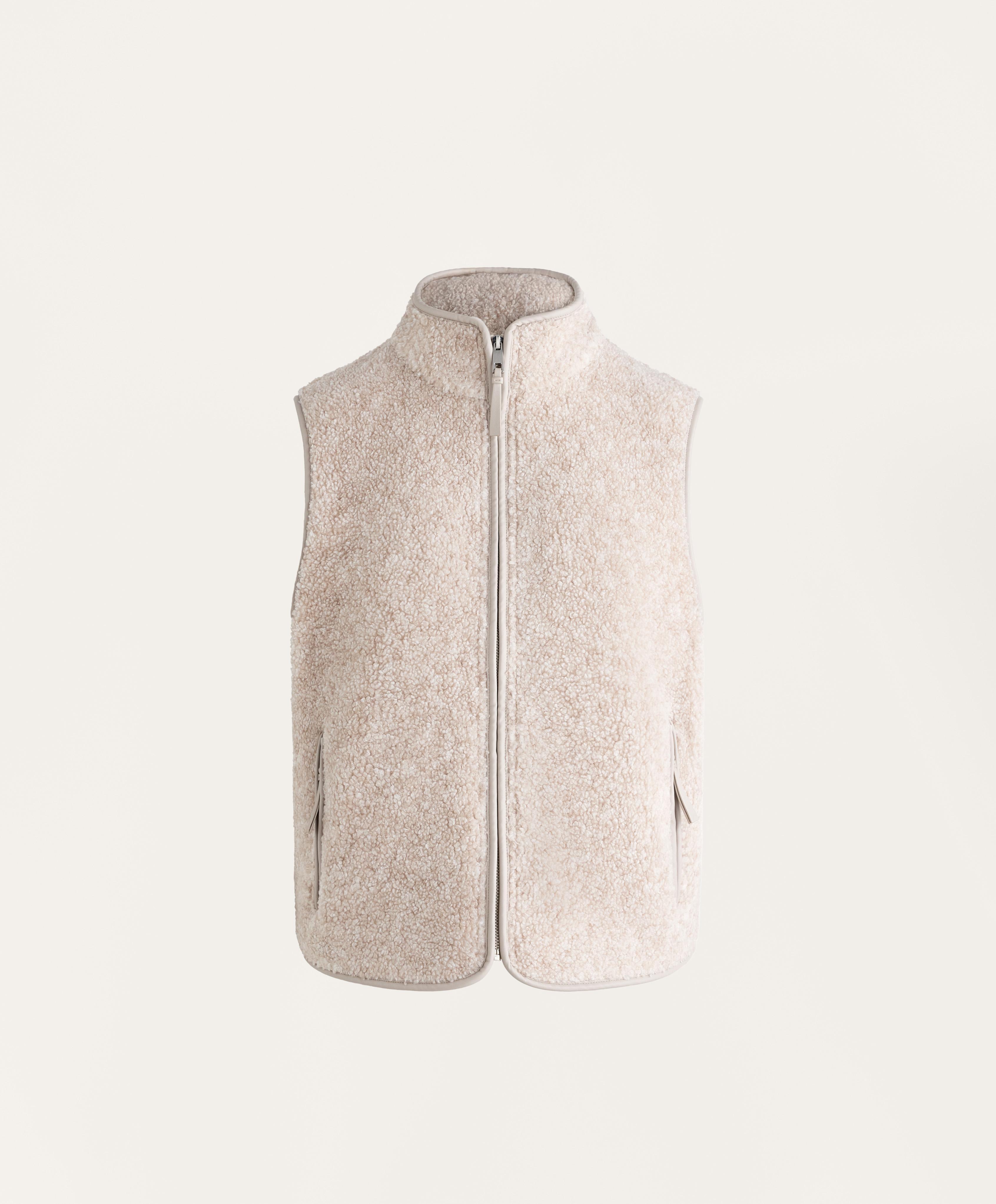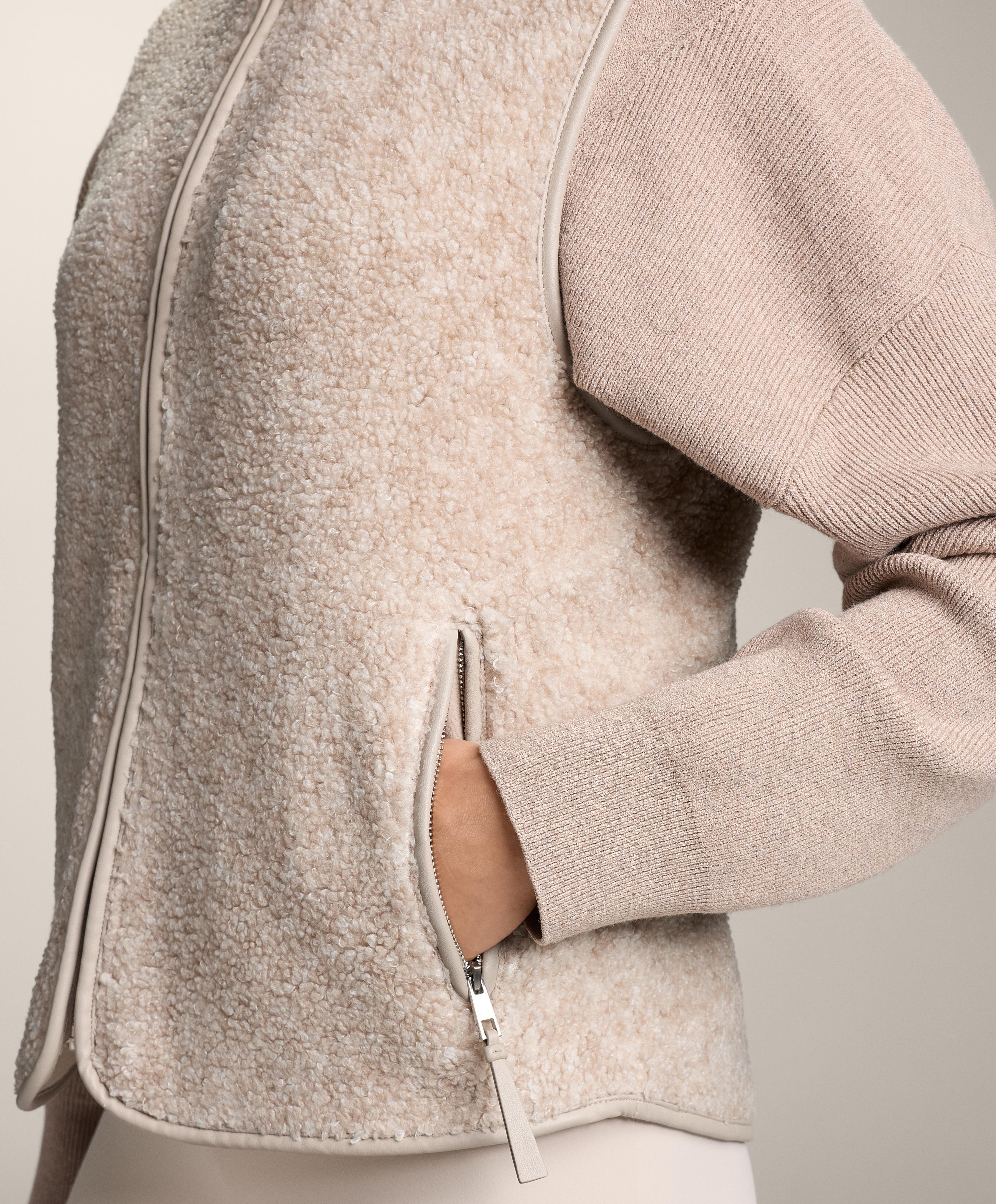 Базовый жилет из искусственной овчины с дышащей, высокопрочной тканью и начёсанным внутренним слоем. Застёжка-молния спереди и боковые карманы на молнии.
