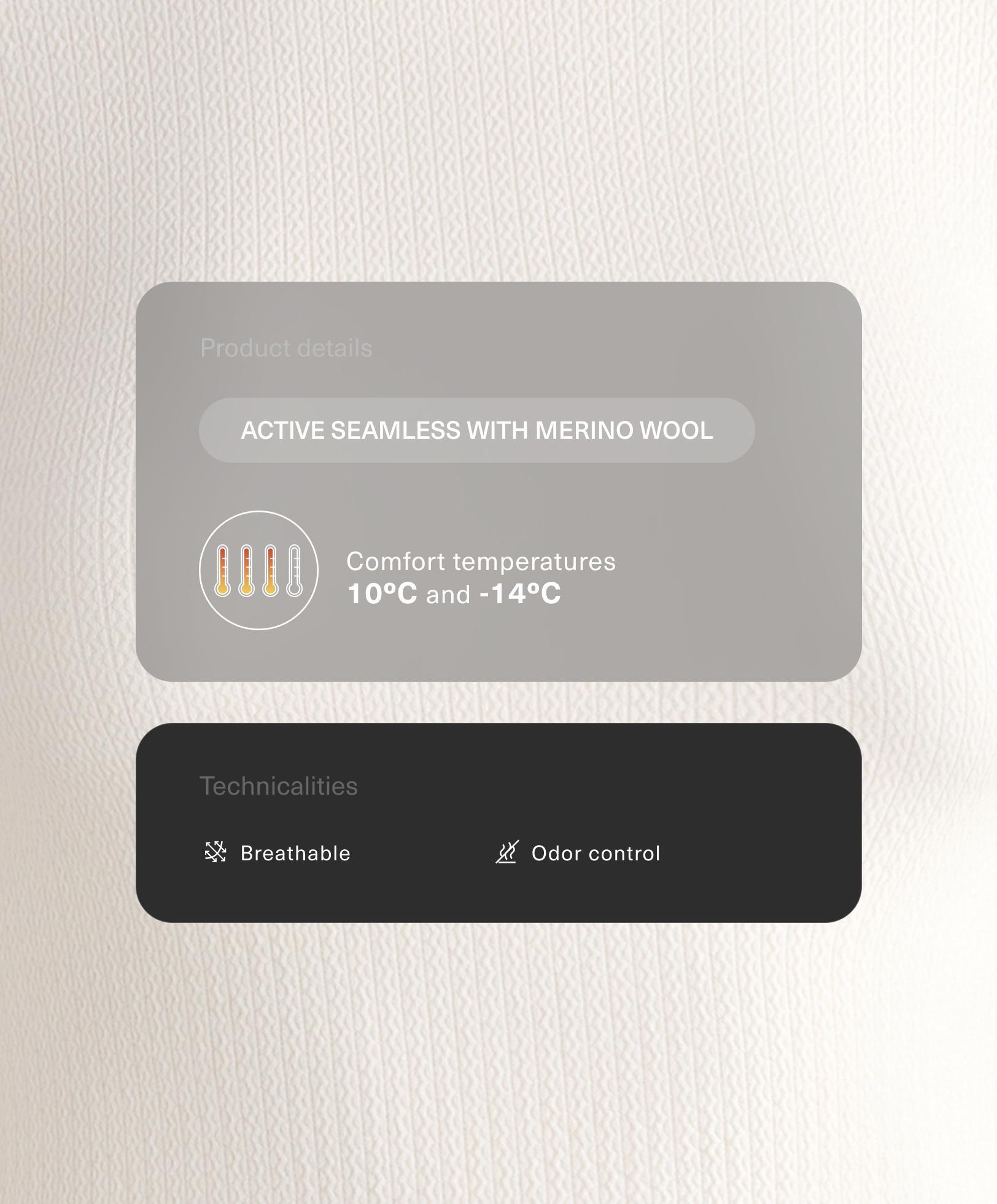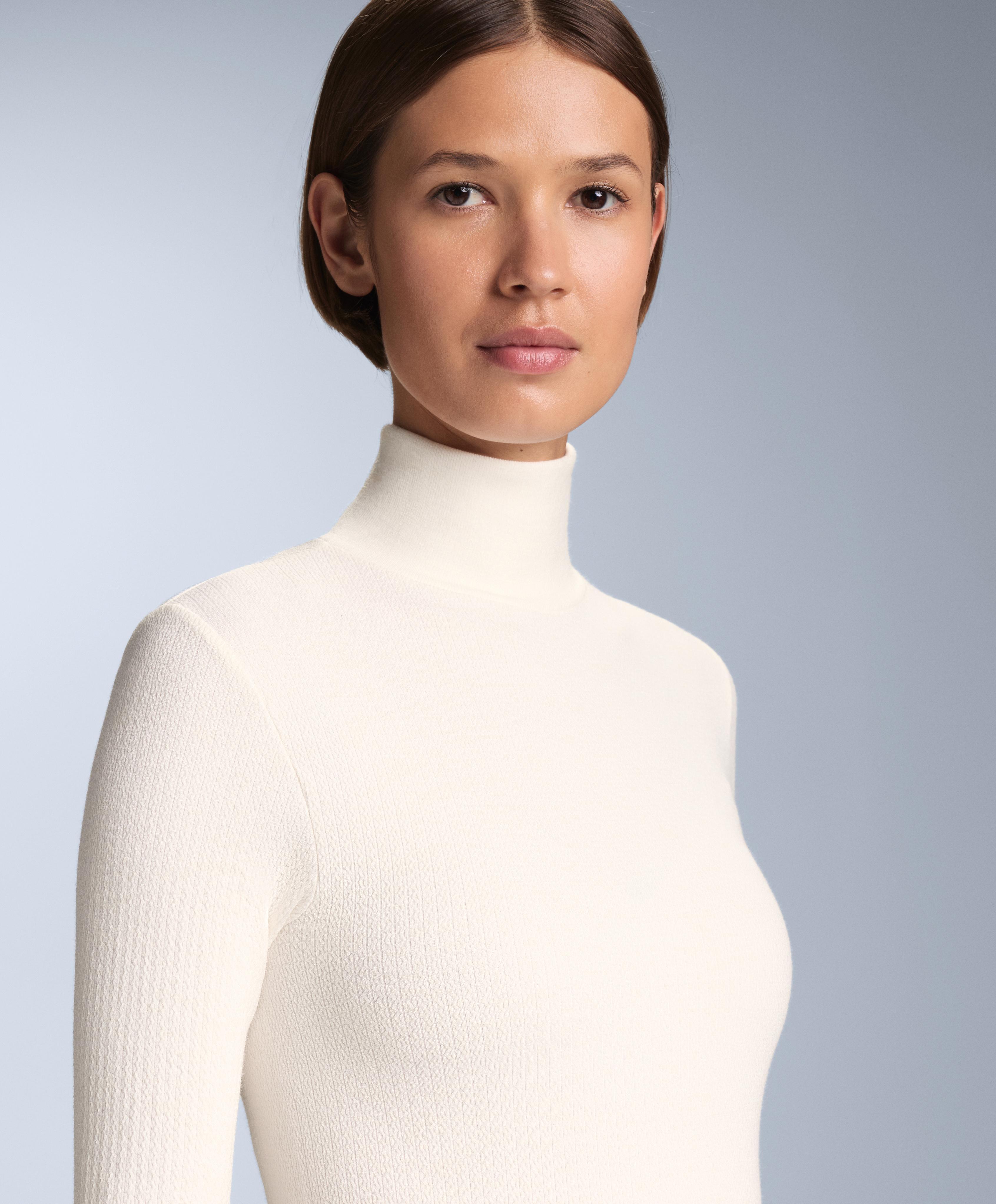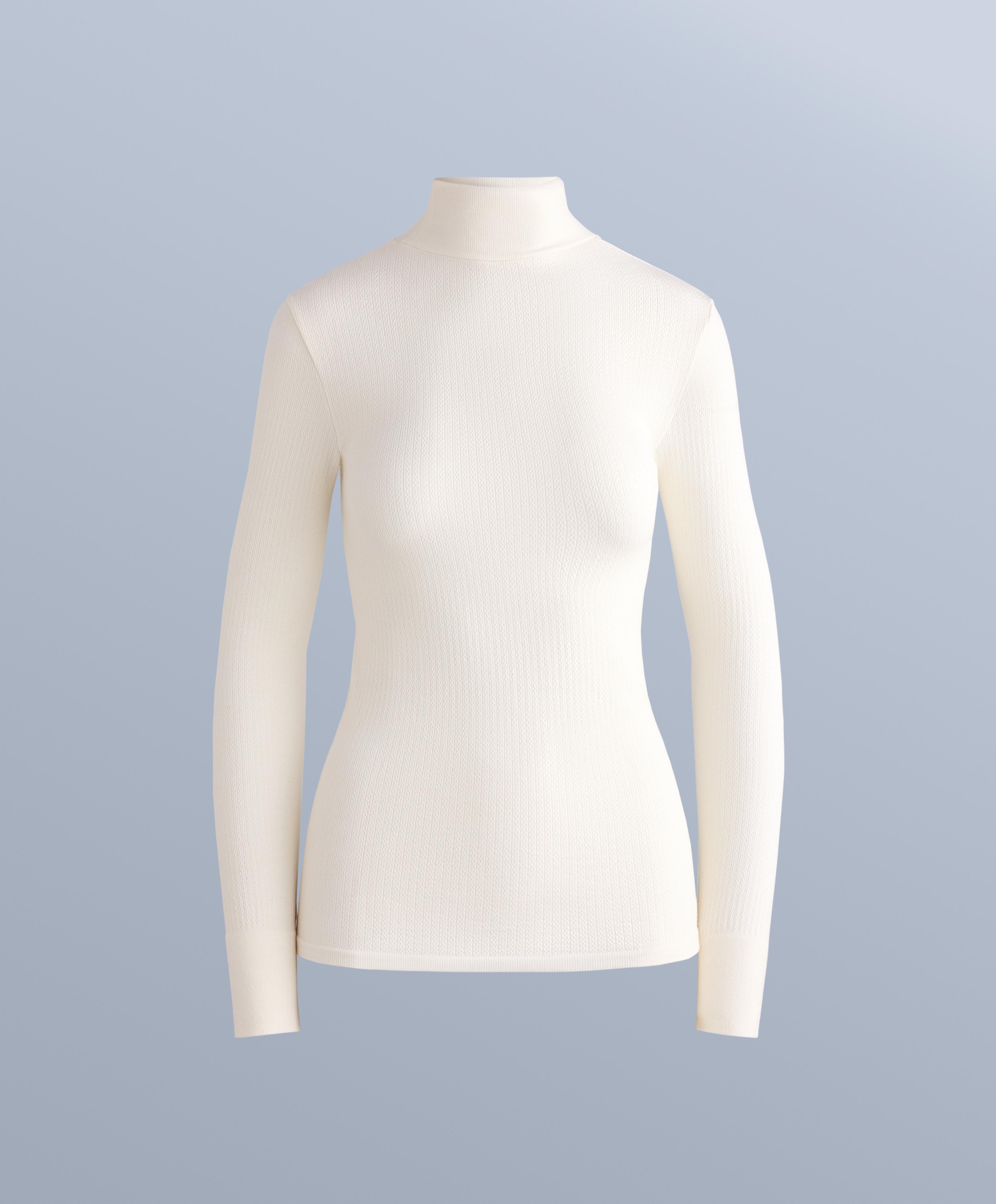 Футболка из мериносовой шерсти с длинными рукавами и высоким воротом, с тёплым на ощупь первым слоем. Ткань изготовлена из шерсти. Дышащая ткань с дезодорирующим эффектом.