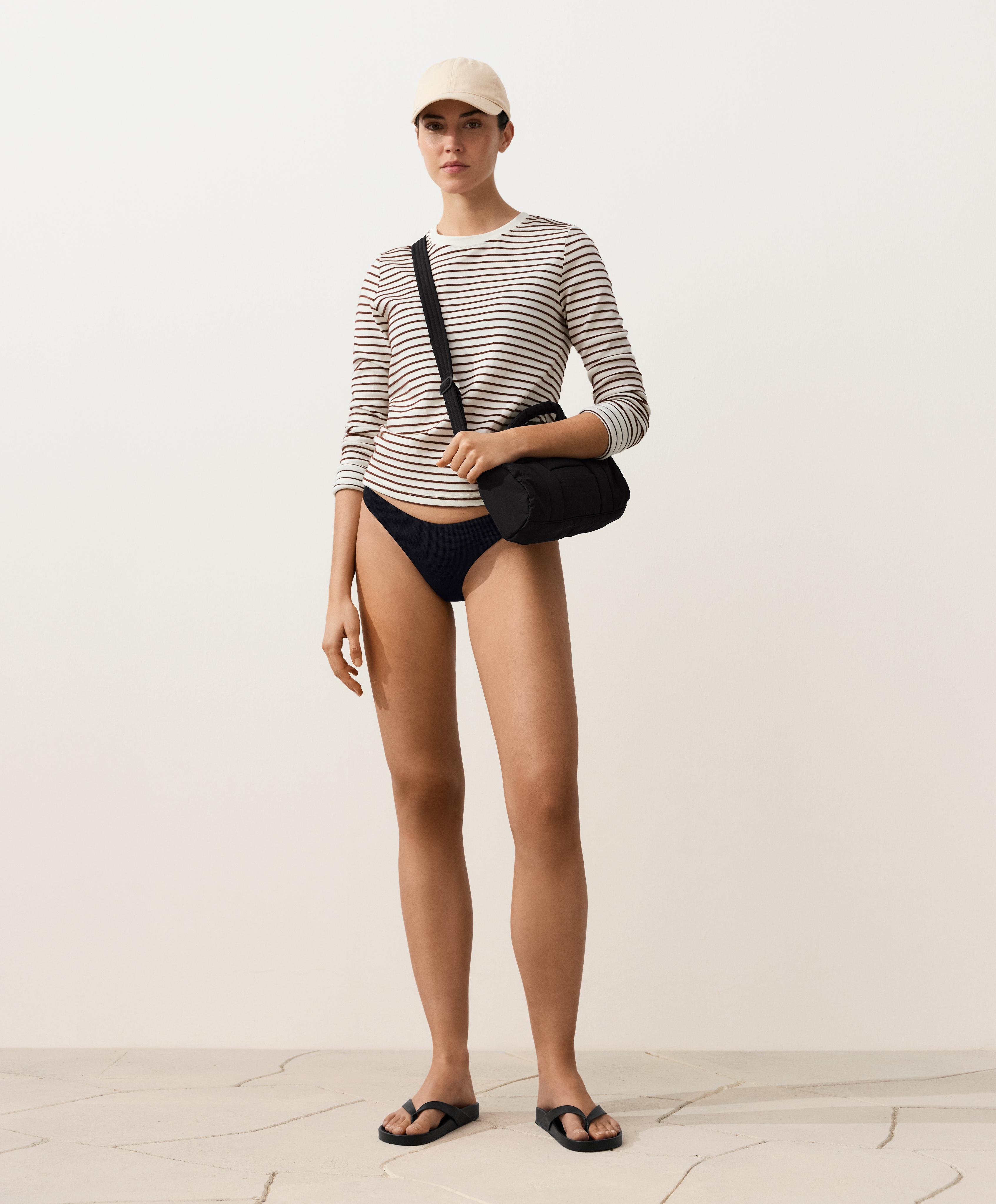 OYSHO Бикини-трусики из пике с U-образным вырезом, черный