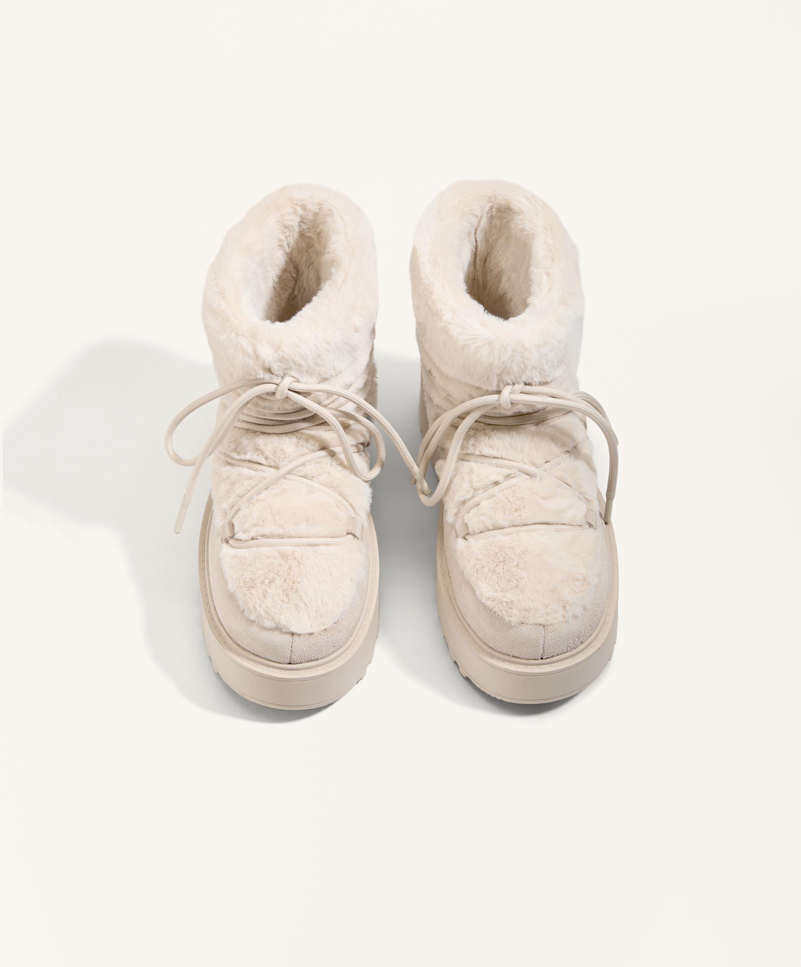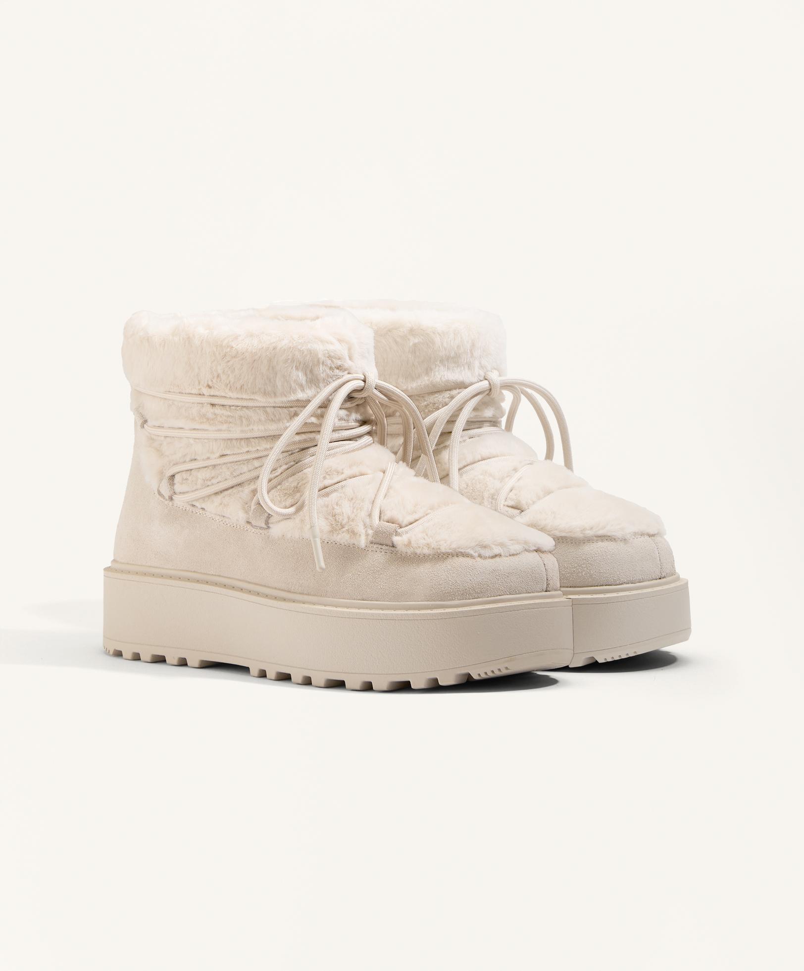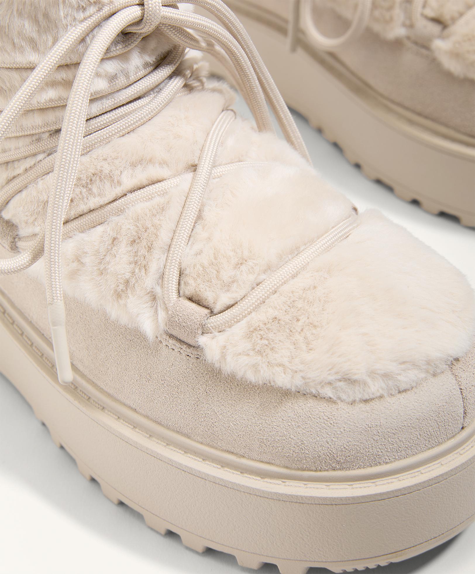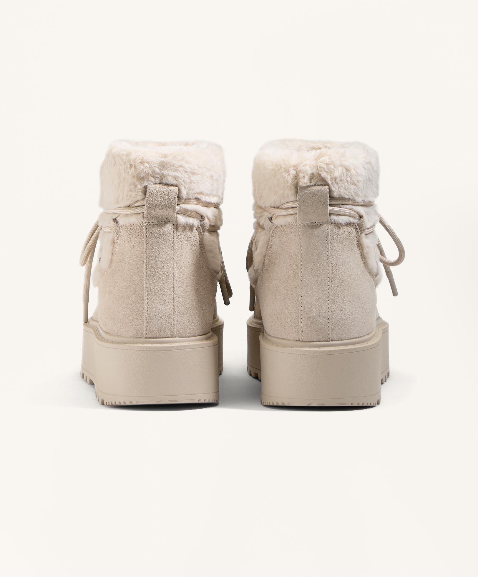 OYSHO Ботинки из искусственного меха и спилка на шнуровке, бежевый