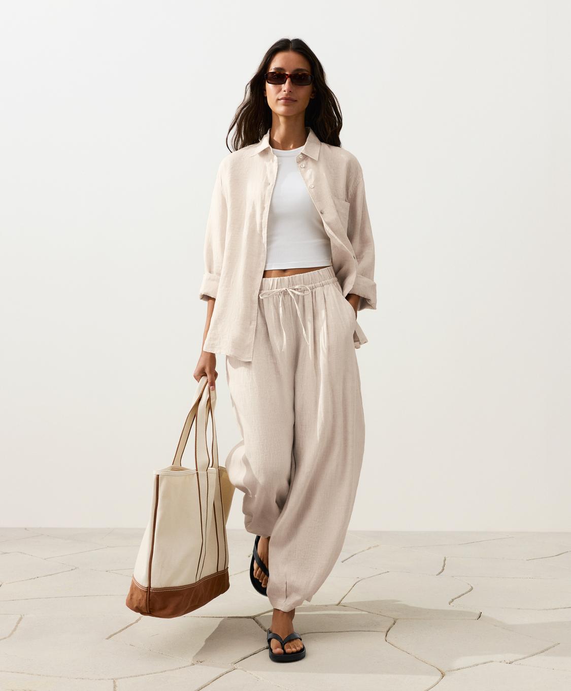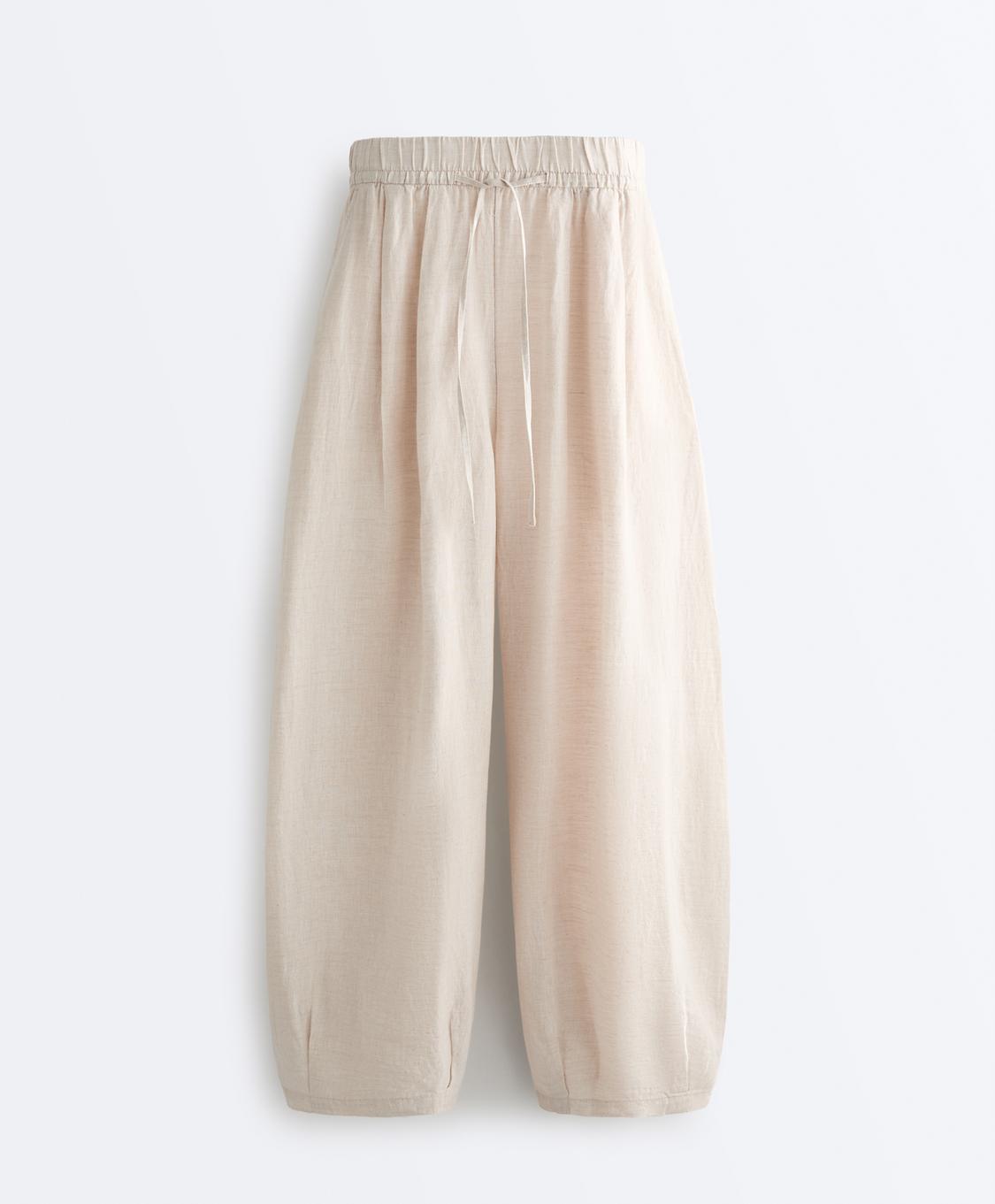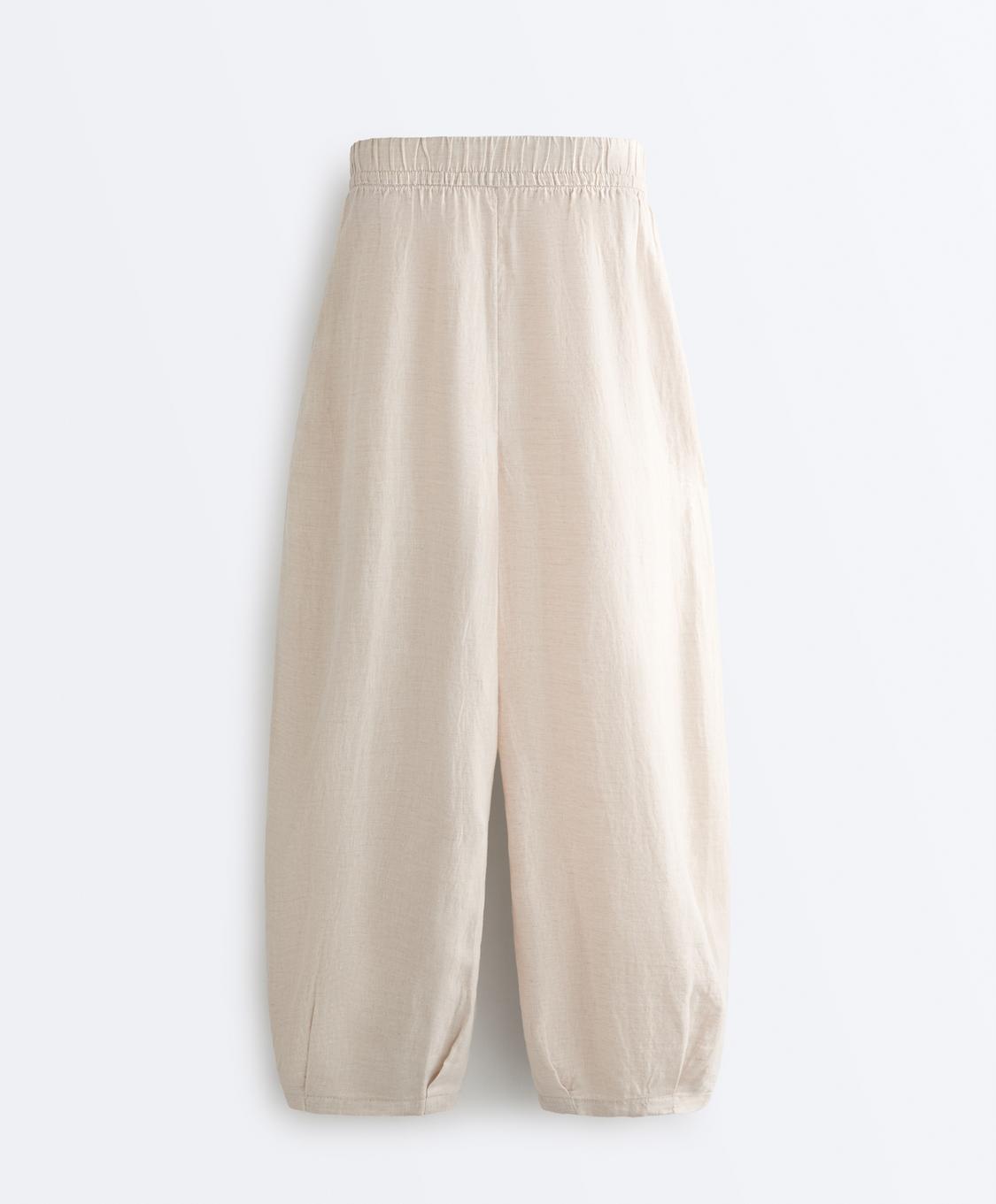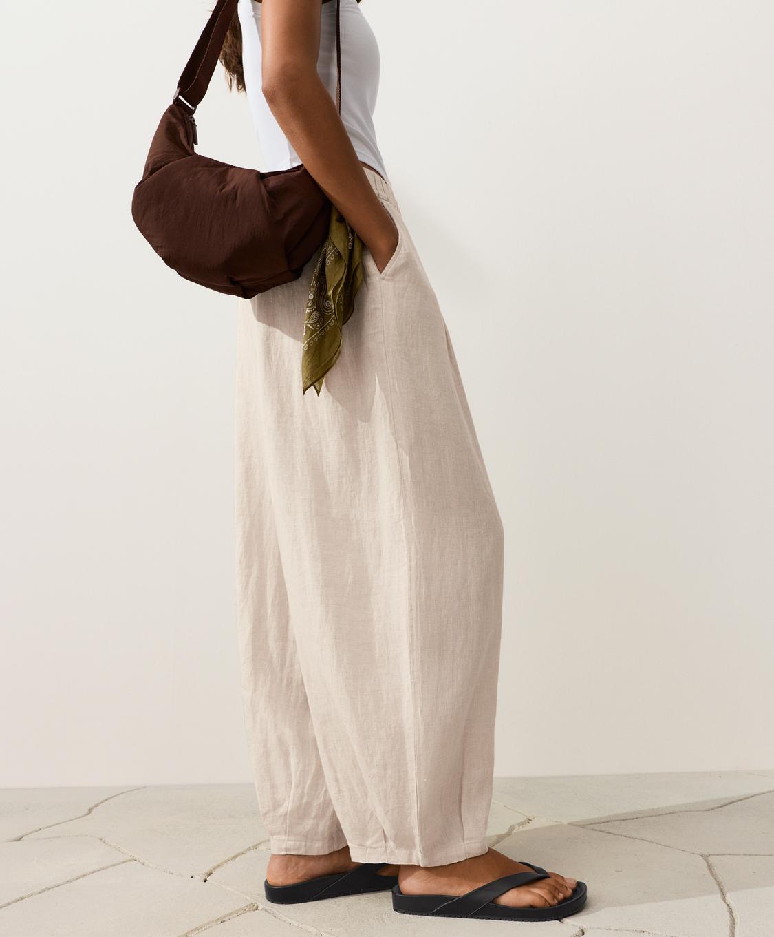 Oysho Брюки-баллоны из 100% льна, песочный меланж