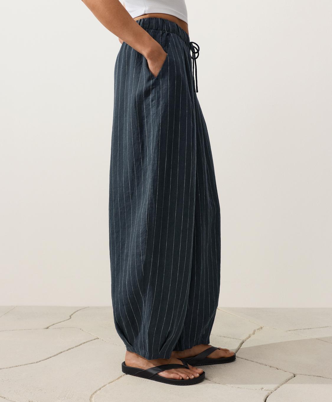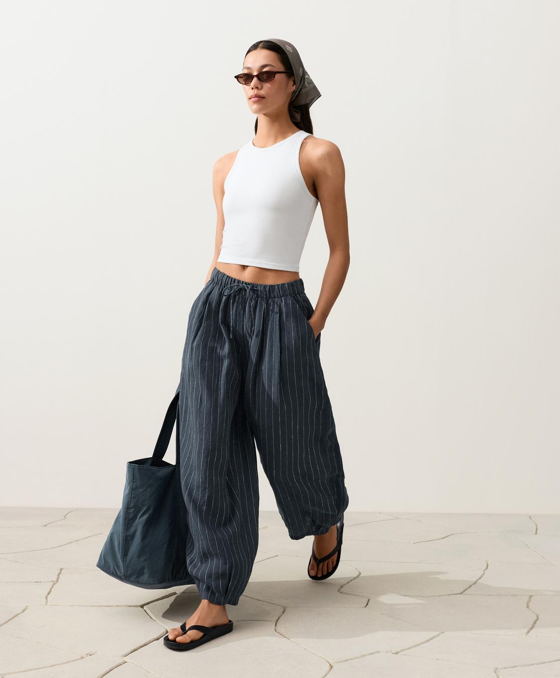 Oysho Брюки-баллоны из 100% льна, темно-синий