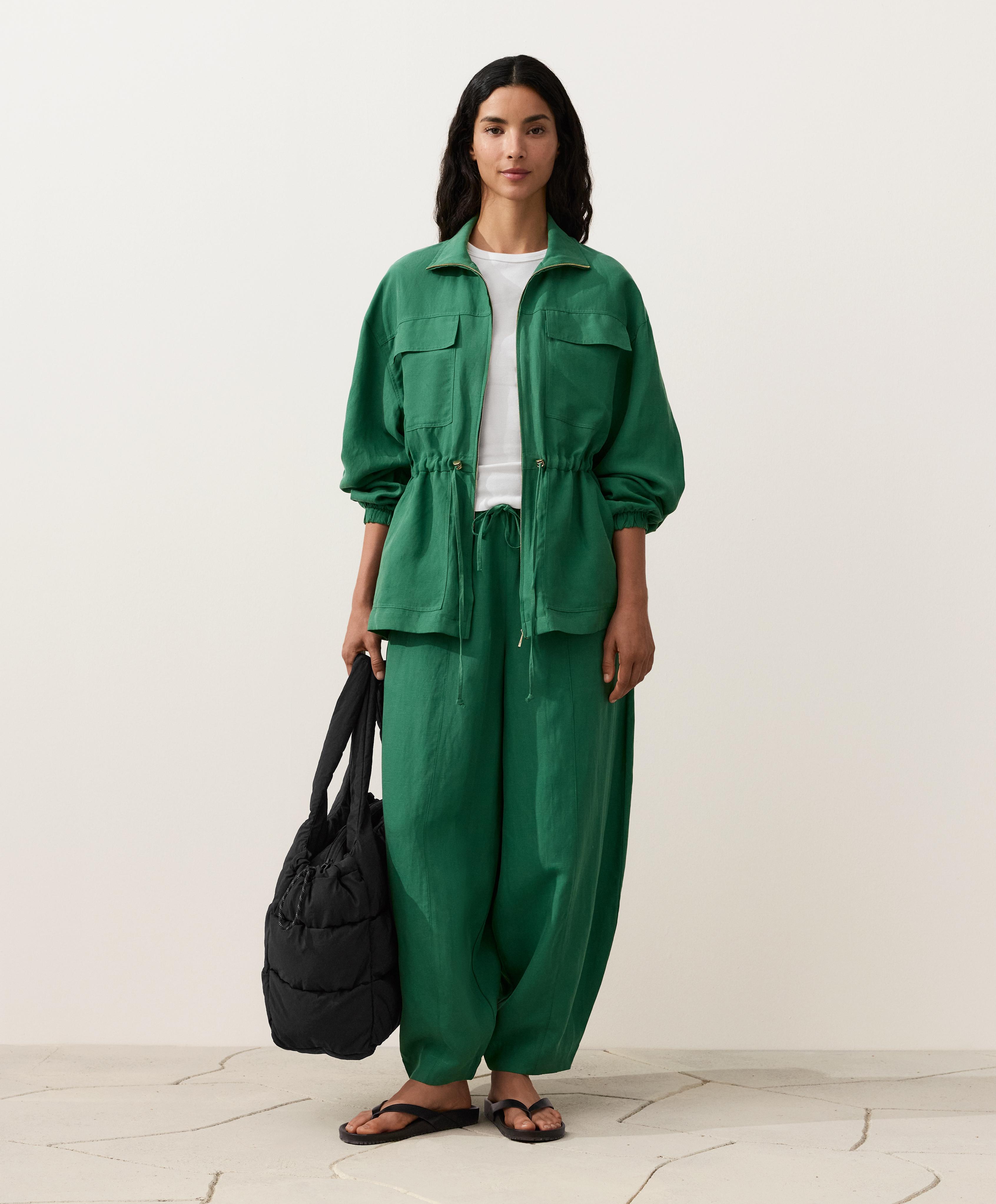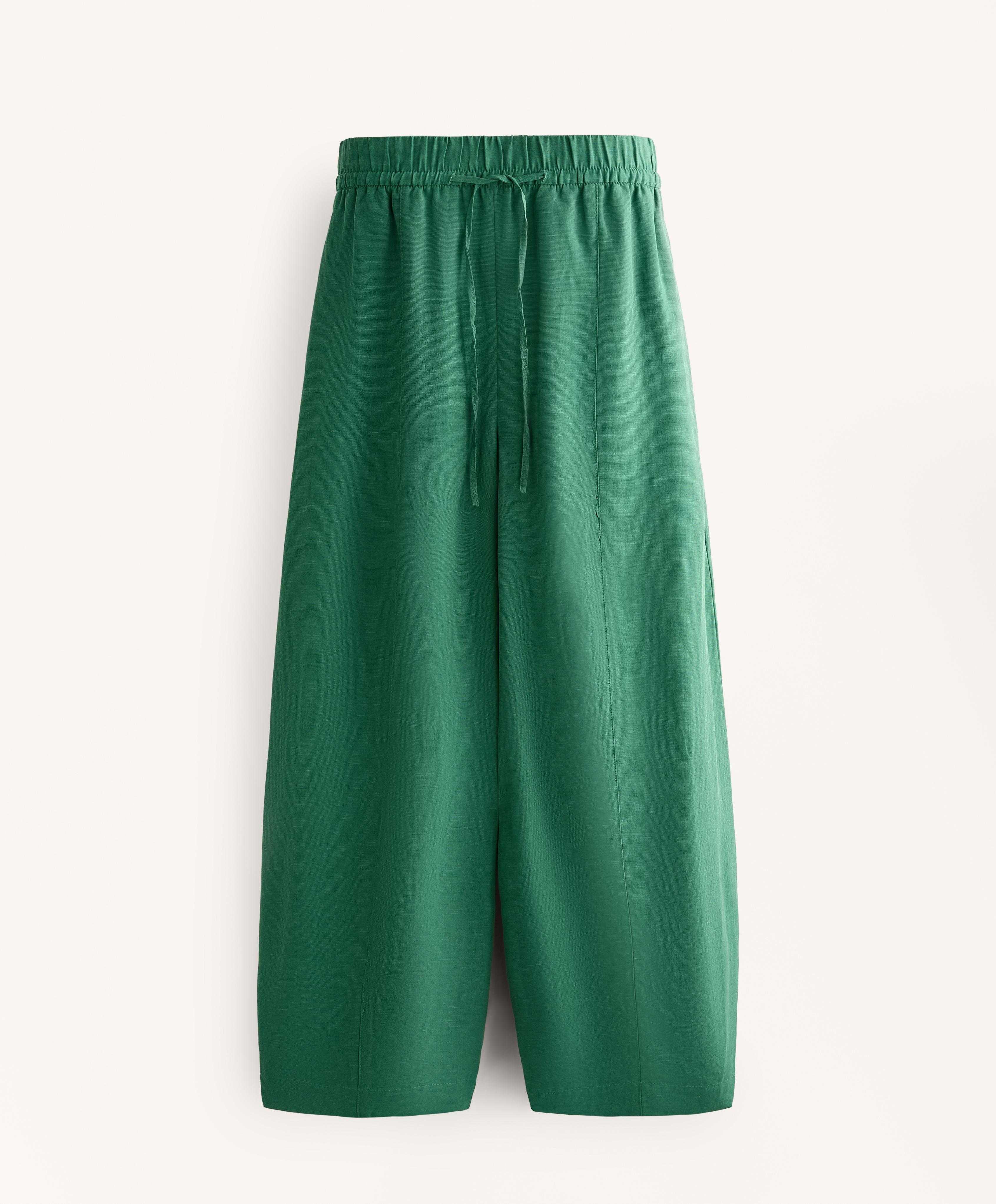 OYSHO Брюки-баллоны из смеси лиоцелла и 24% льна со швами, изумрудно-зеленый