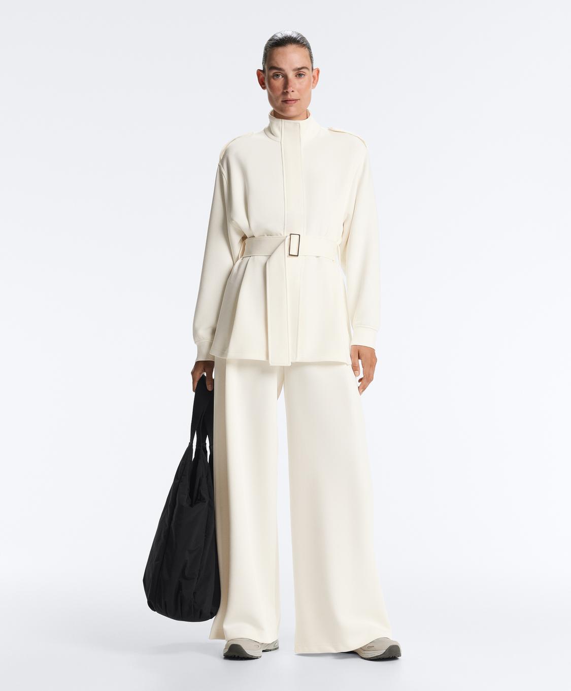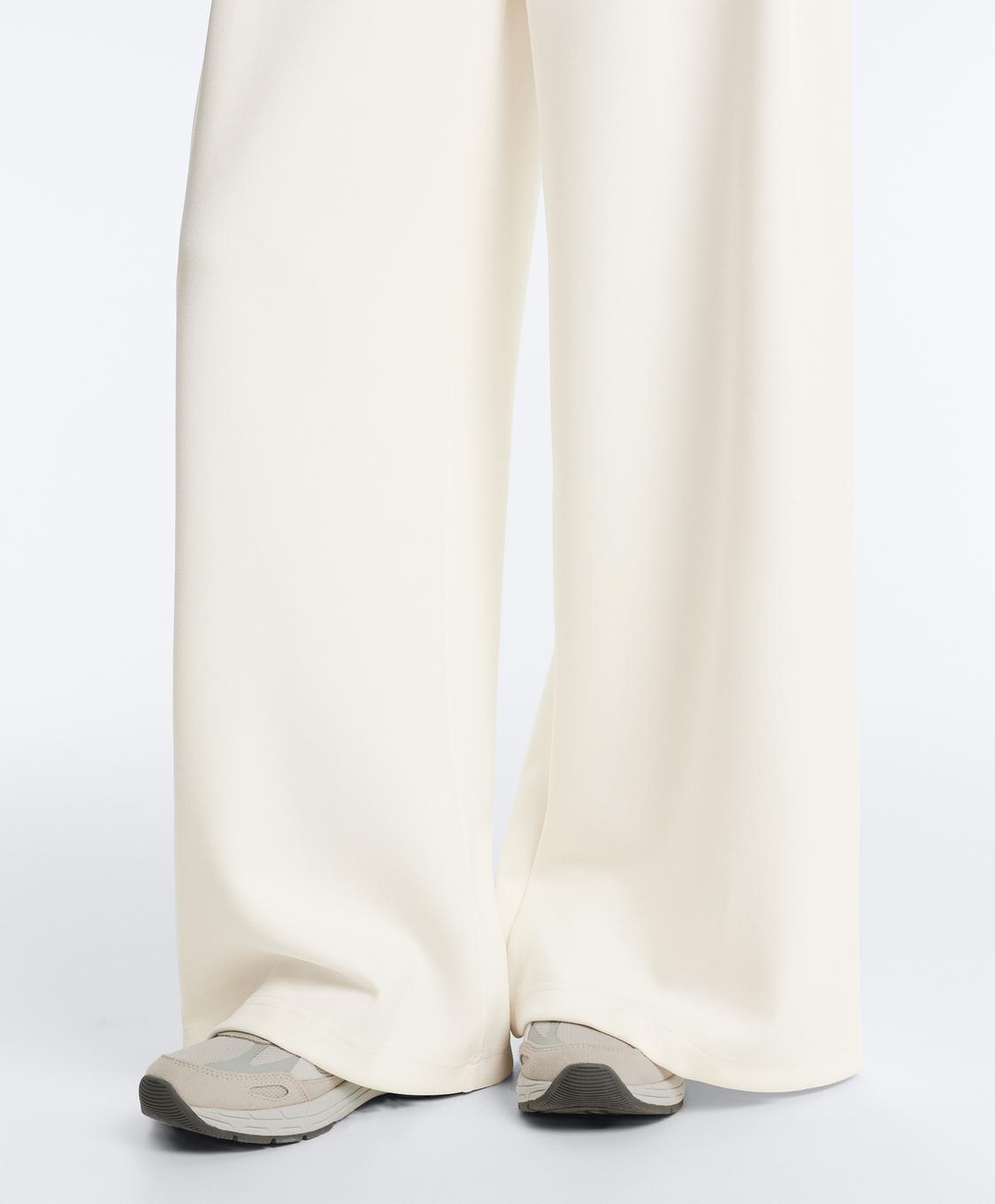 OYSHO Брюки из саржевой ткани с высокой посадкой и складками, экрю