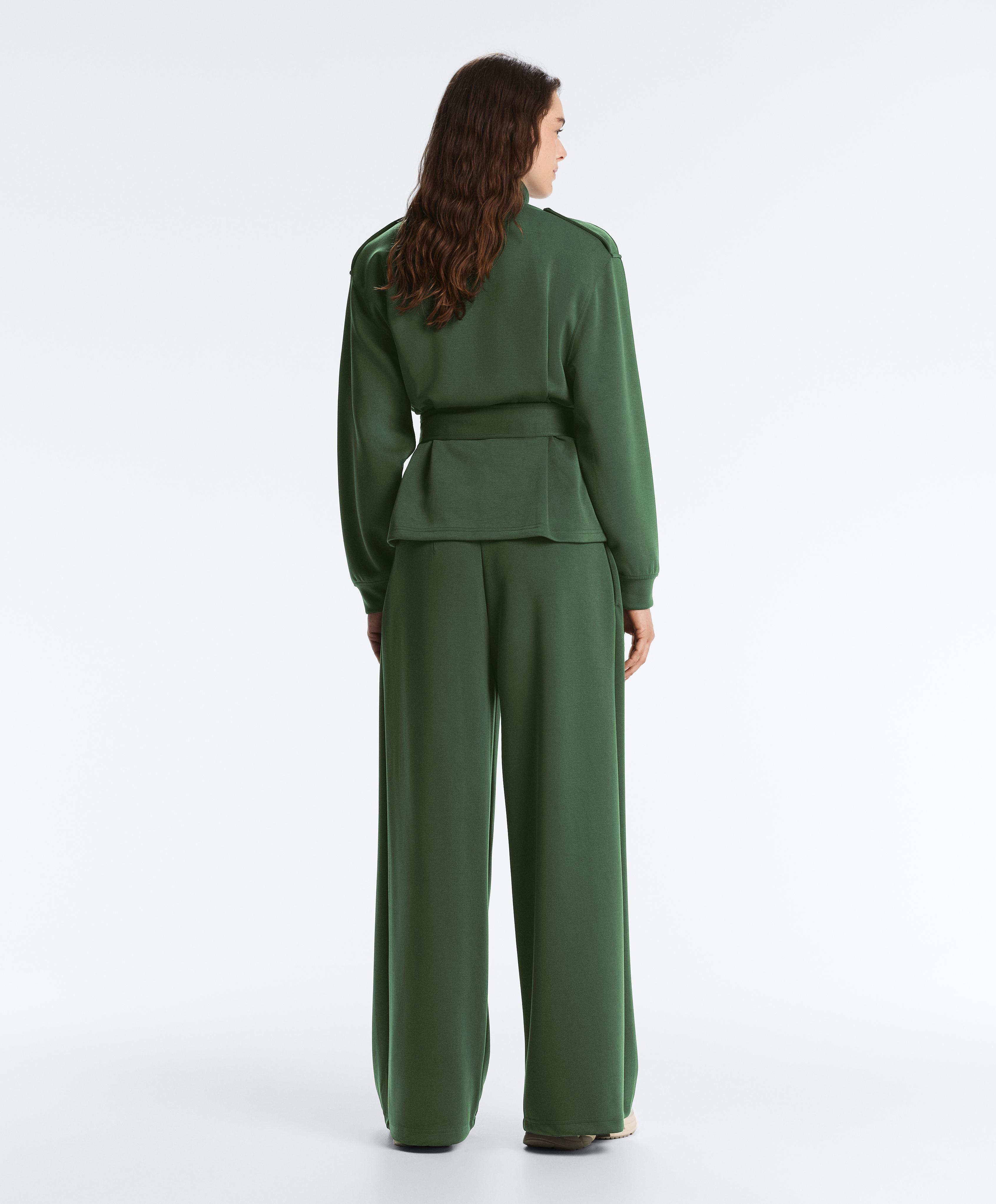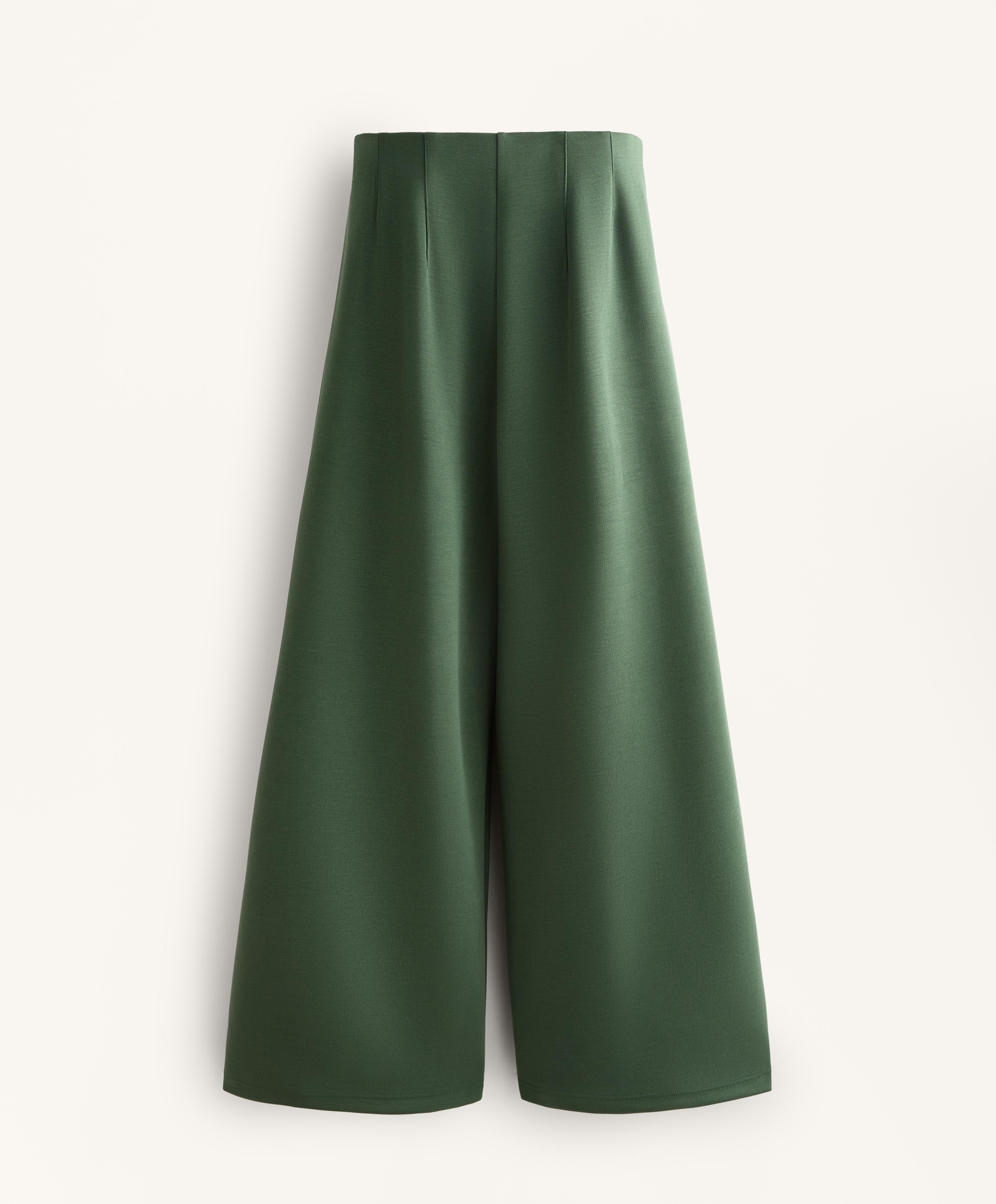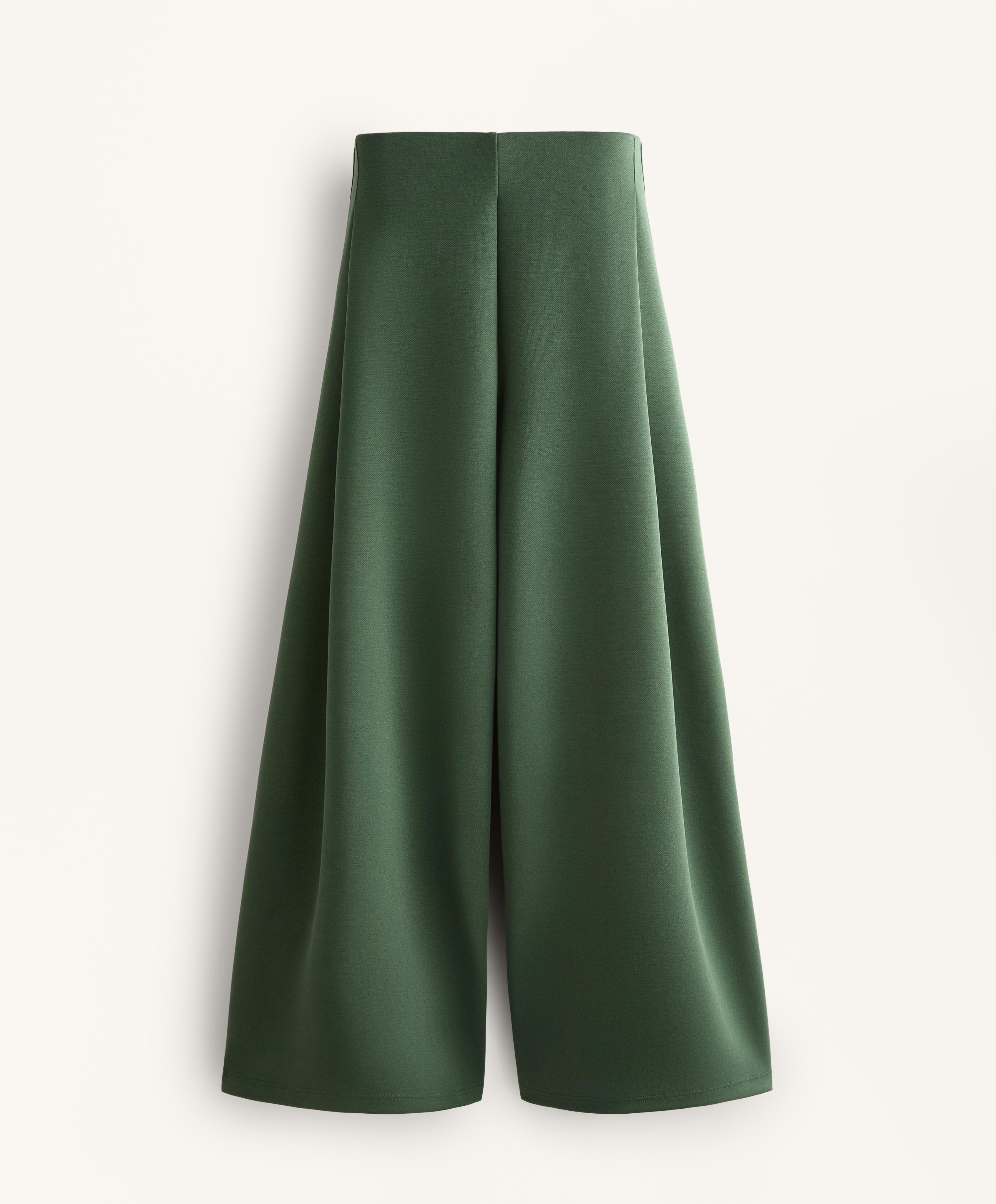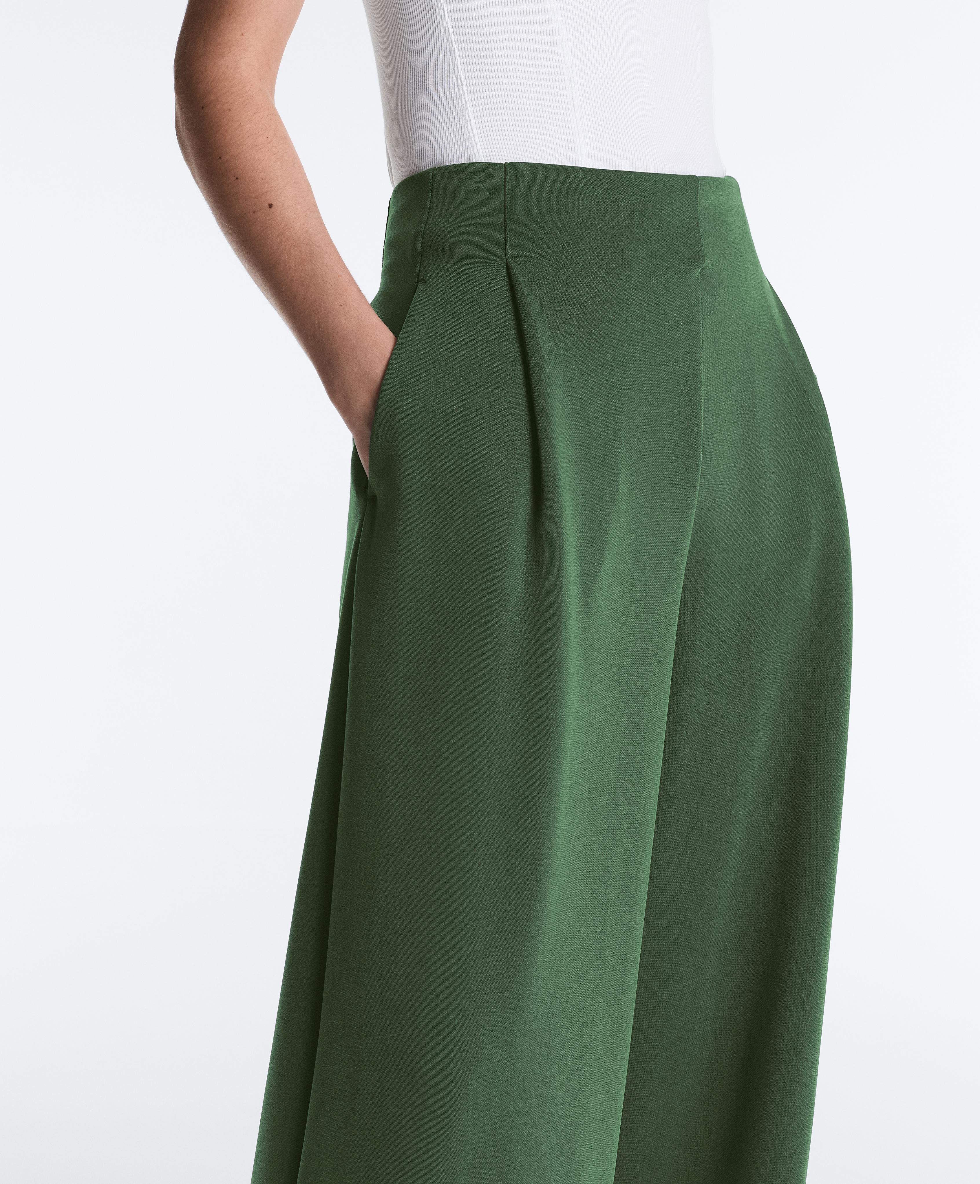 OYSHO Брюки из саржевой ткани с высокой посадкой и складками, зеленый