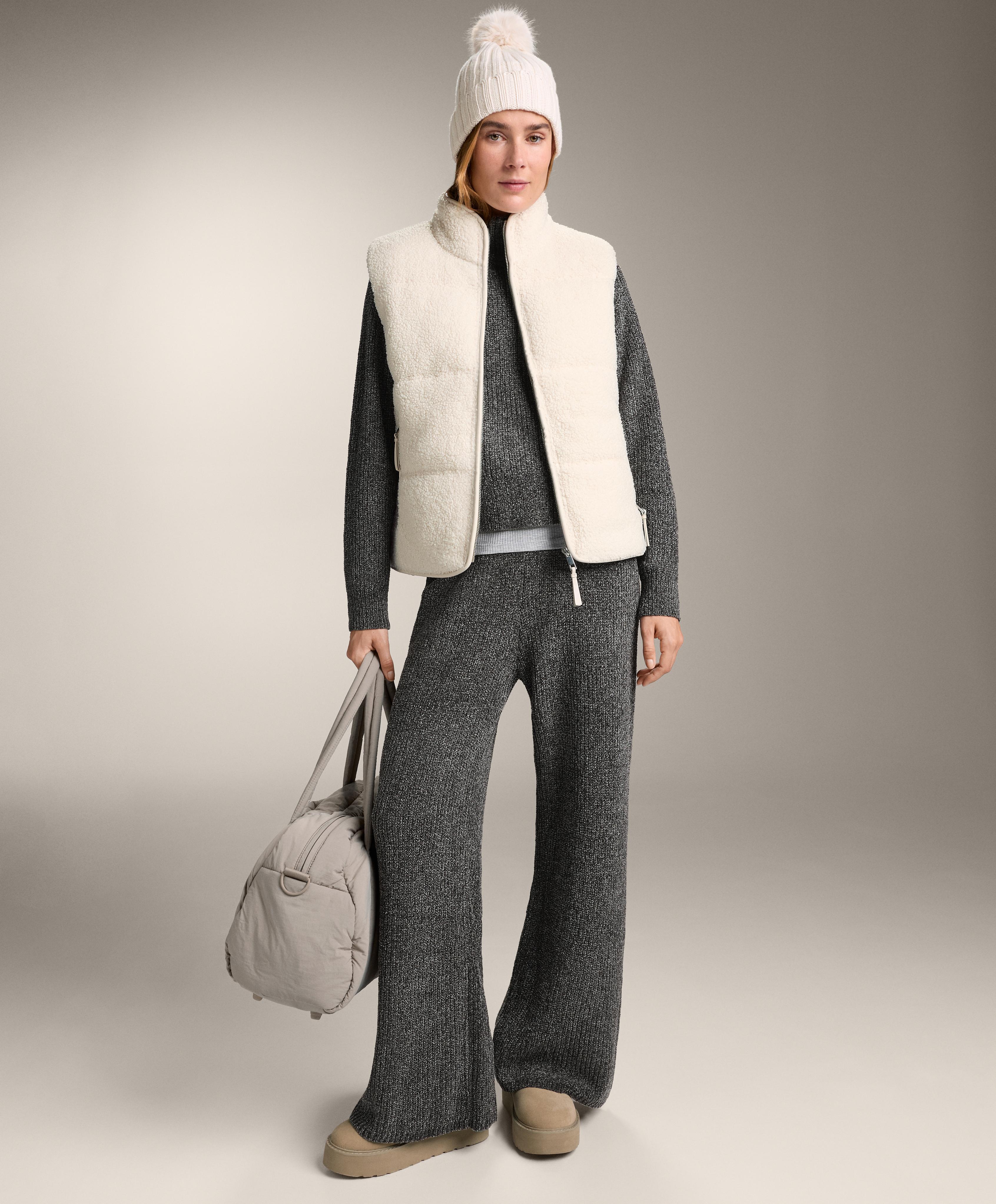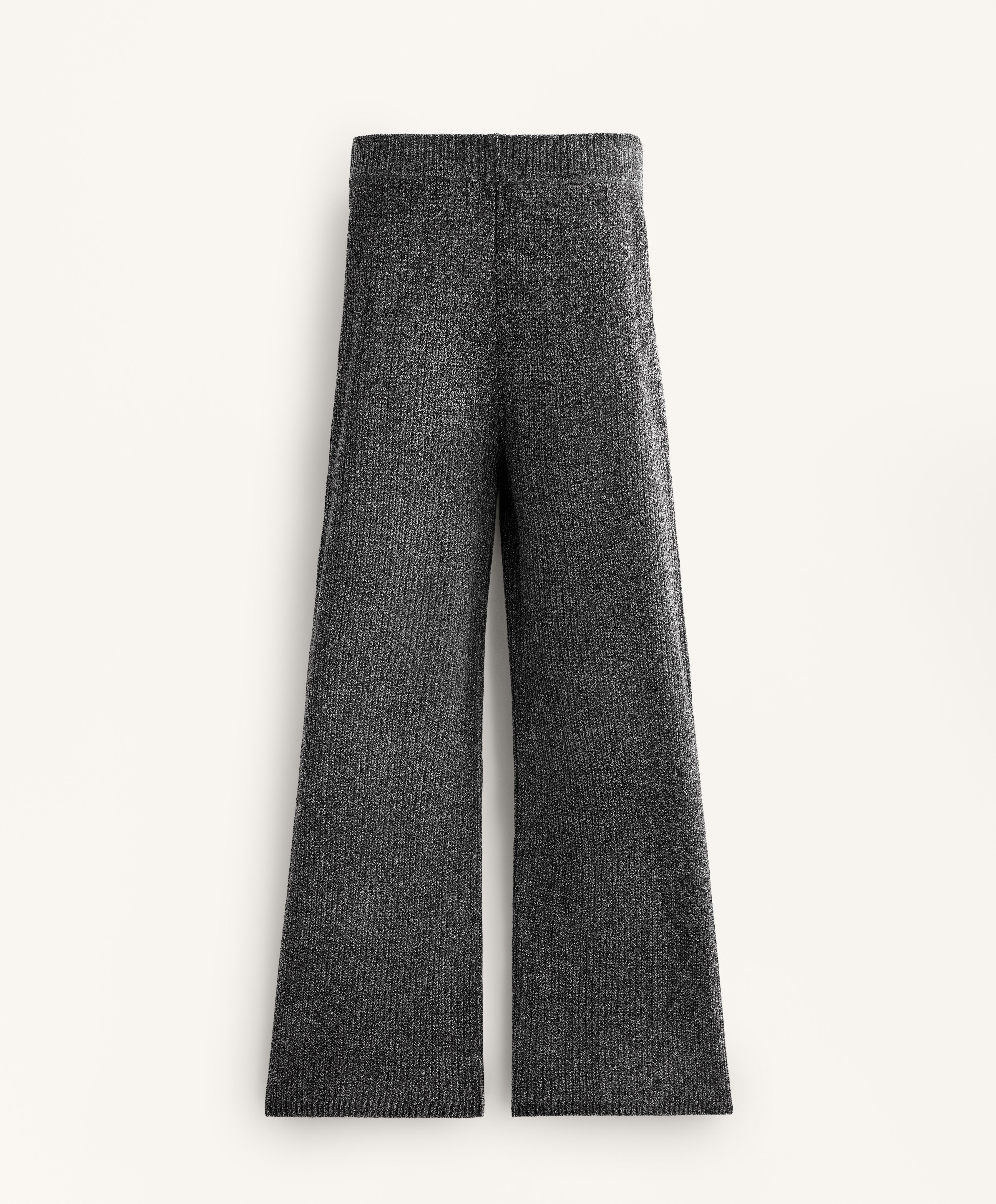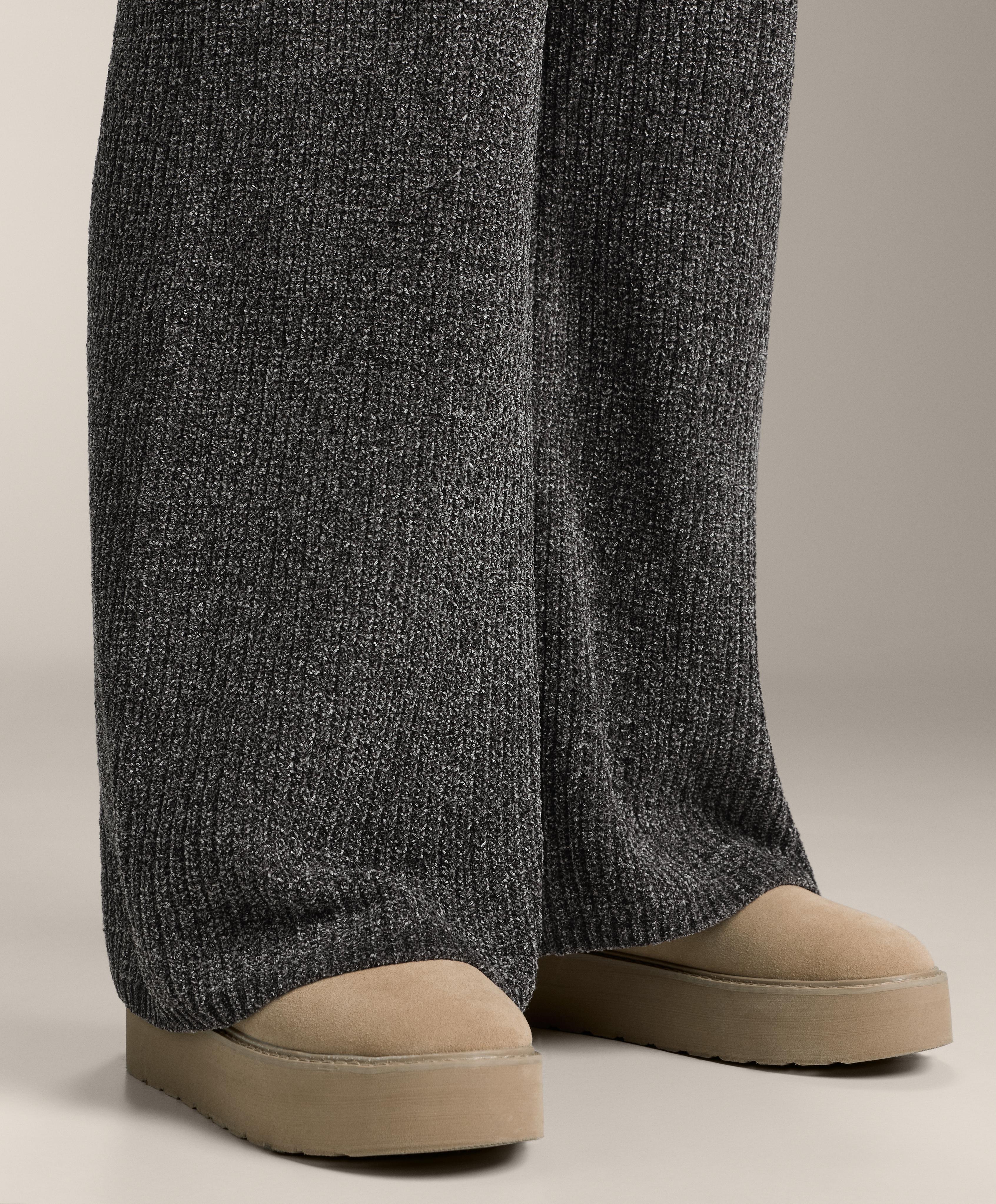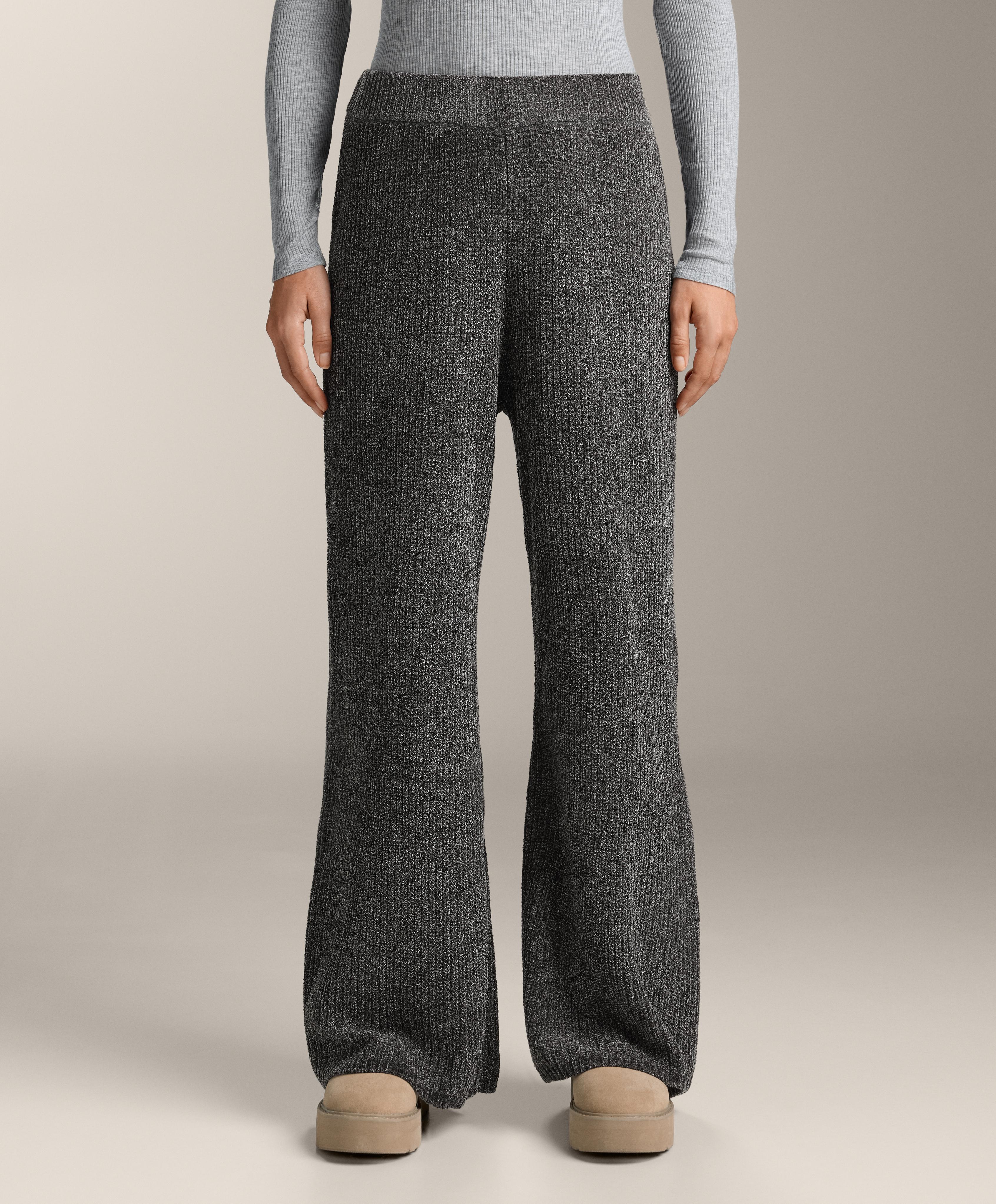 Длинные брюки клеш из вязаного трикотажа с регулируемым эластичным поясом.