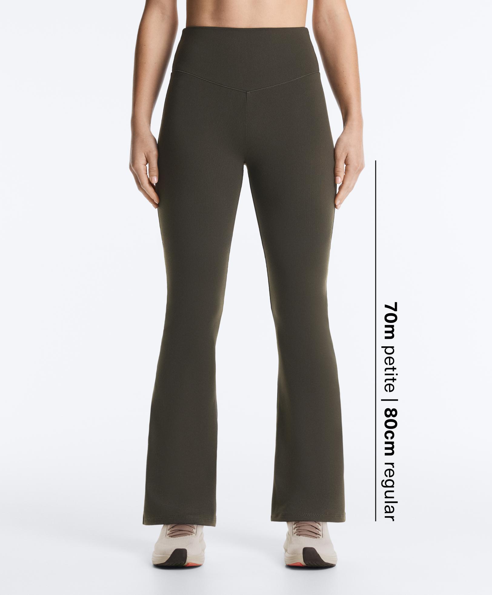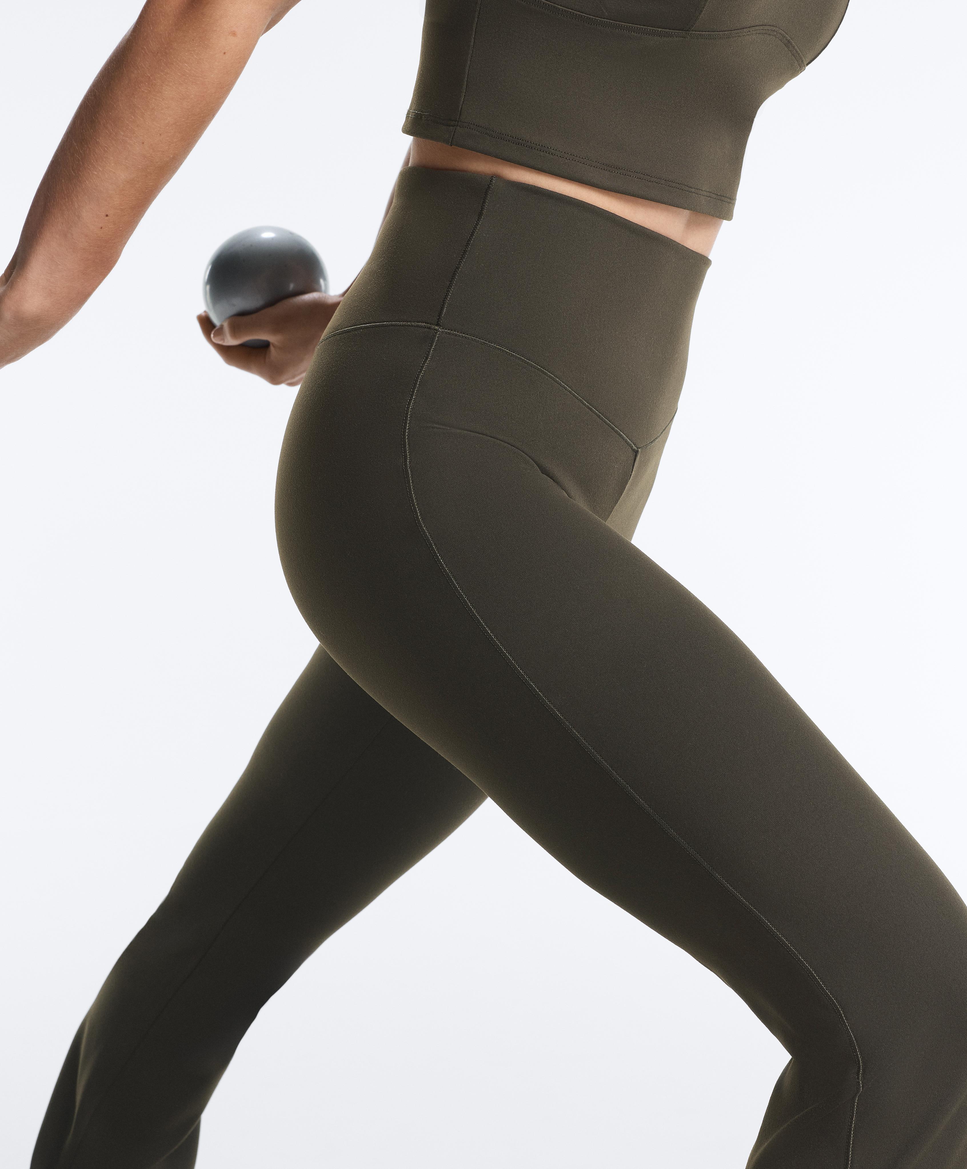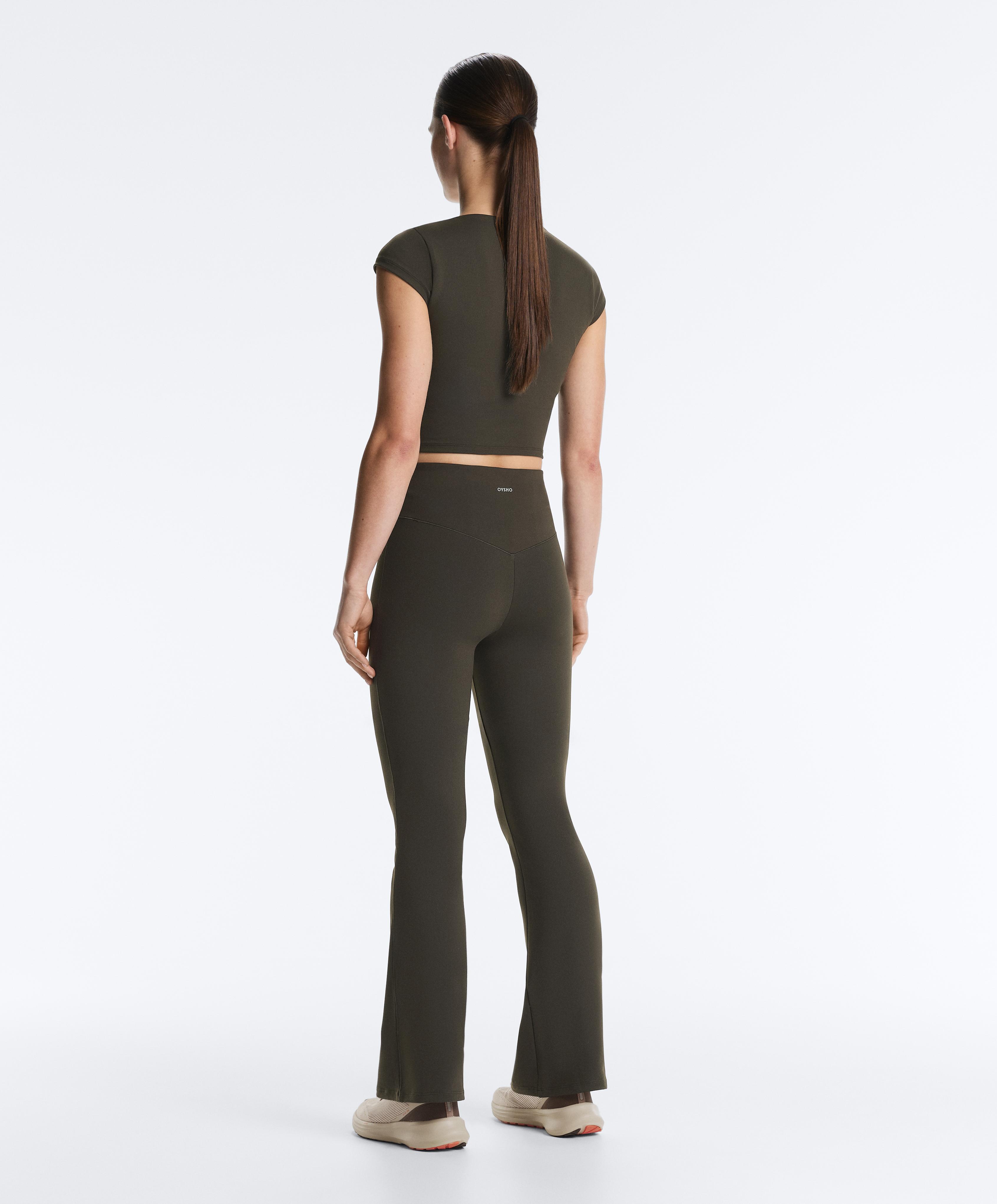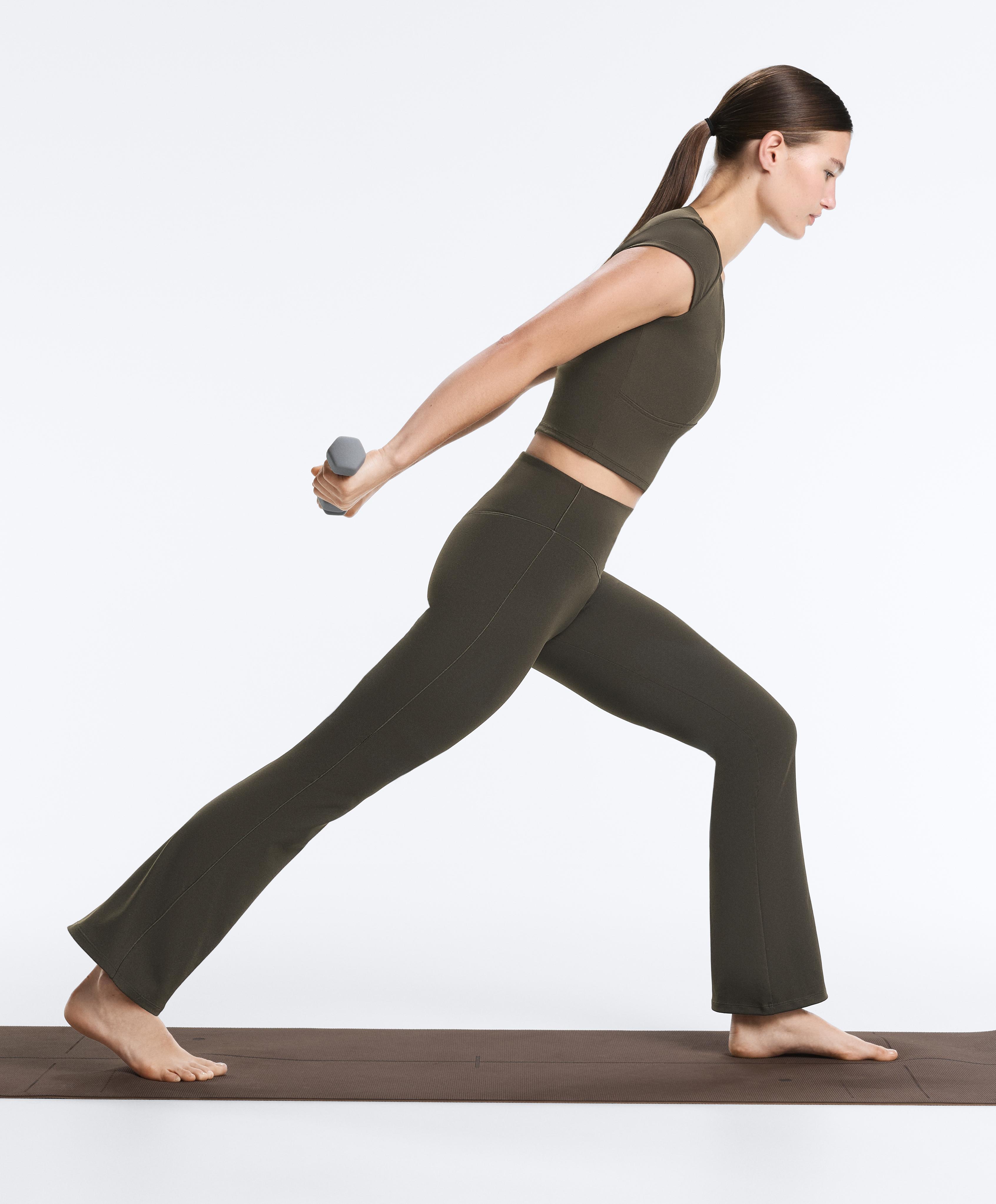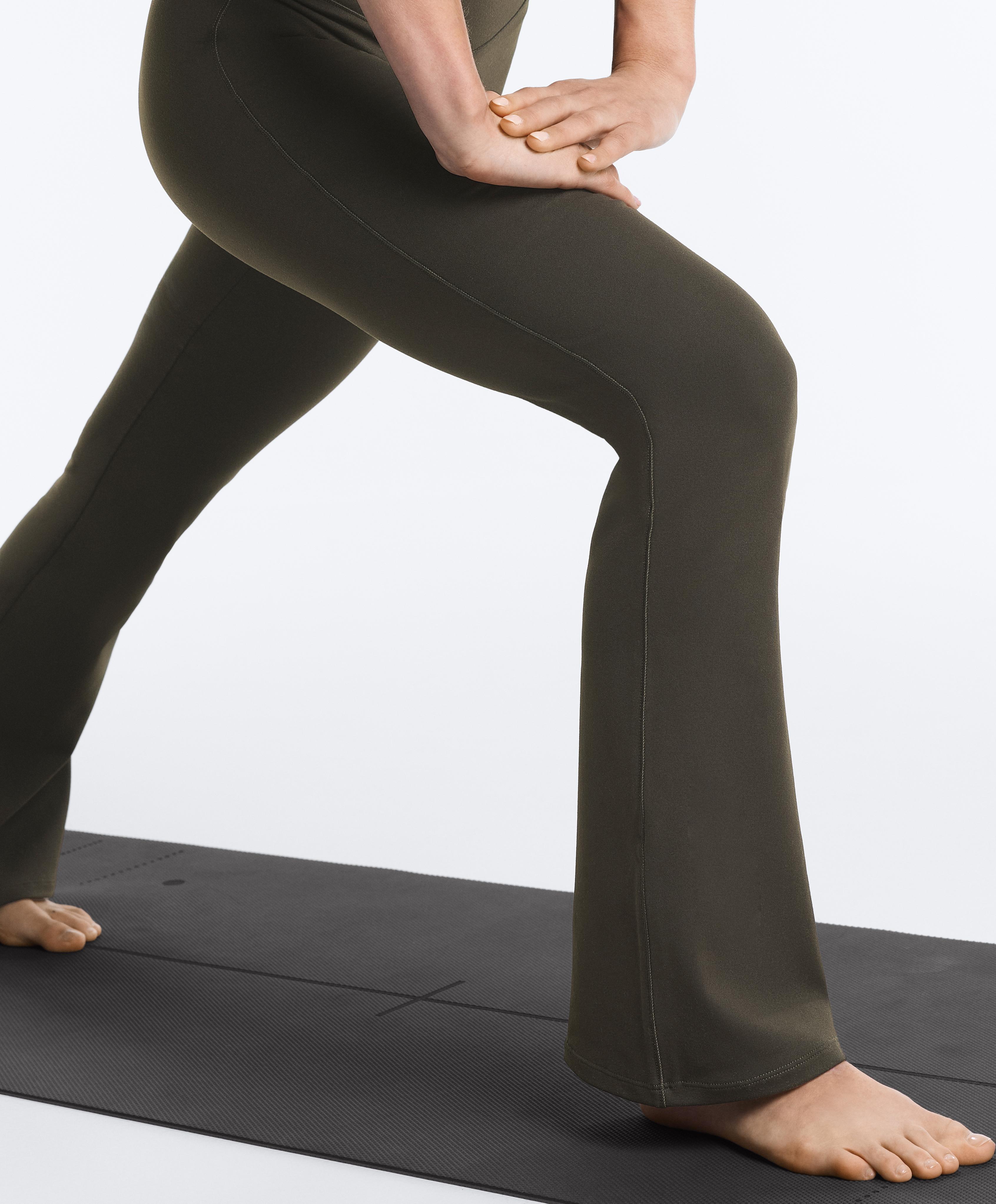 Брюки-клеш Evermove с высокой талией, средней поддержки и хлопковой текстурой. Эта модель имеет двойной пояс для большей поддержки и комфорта. Внутренний карман сзади на поясе. Дышащая, высокопрочная ткань.