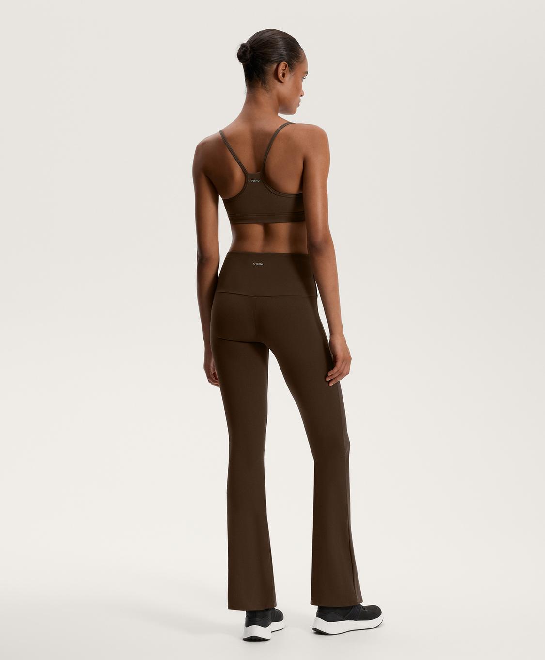 OYSHO Брюки клеш с высокой посадкой Flare Comfortlux High Rise, темно-коричневый