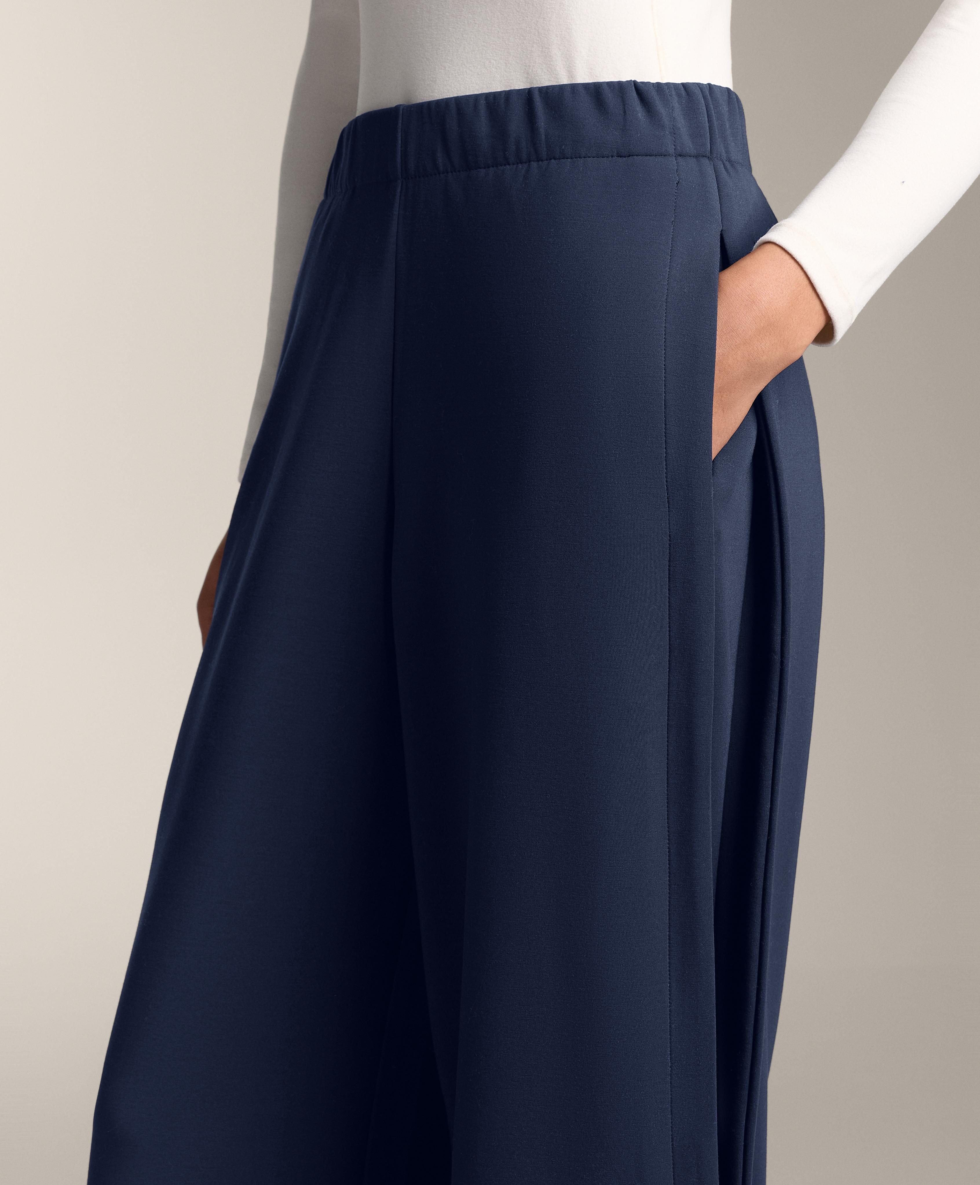 Длинные брюки-кокон с плиссировкой по бокам штанин. Регулируемый эластичный пояс и передние карманы. Дышащая ткань из модала, очень мягкая на ощупь. Внутренний слой с начесом.