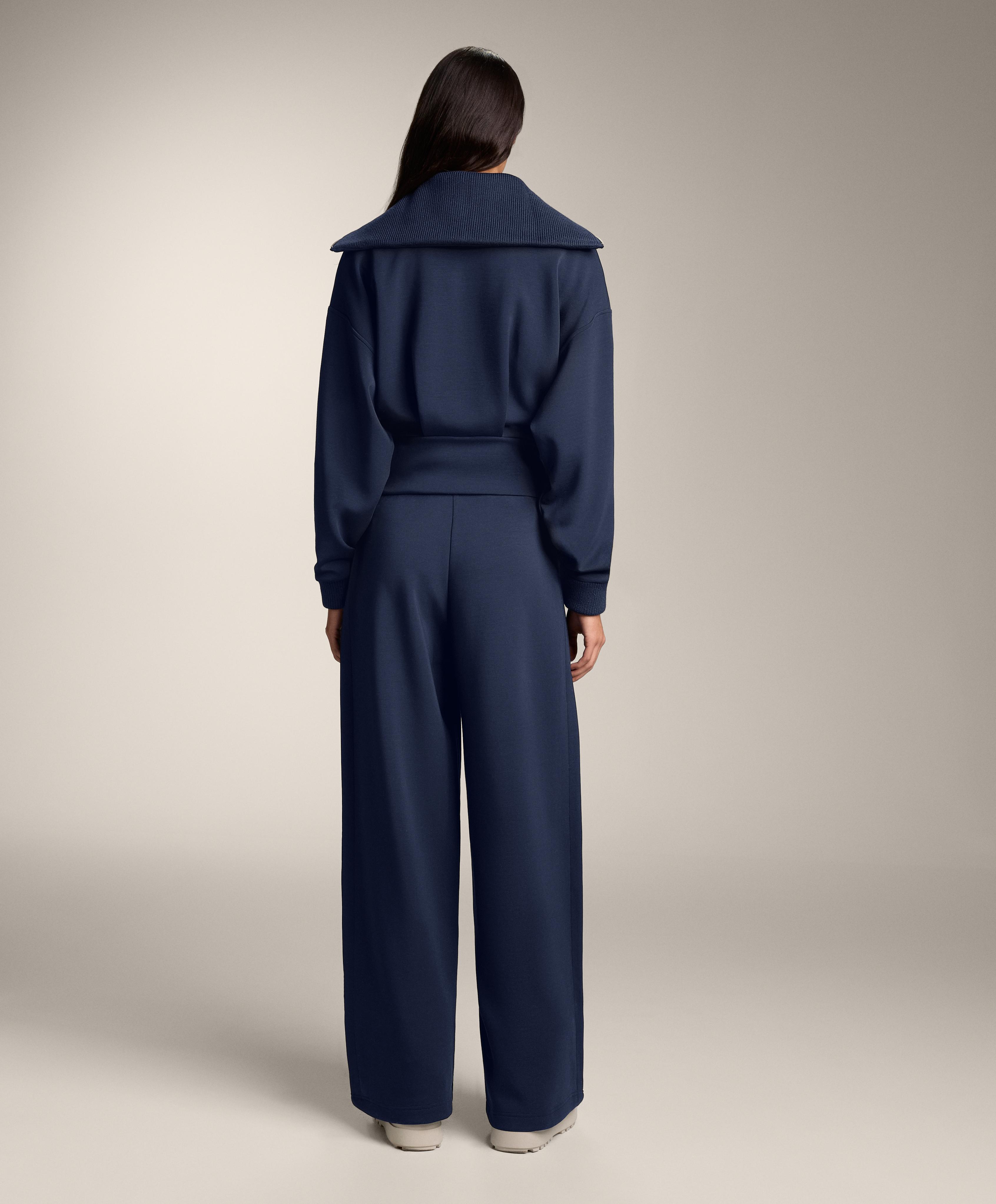 OYSHO Брюки-кокон с боковой складкой и начесом из модала, синий